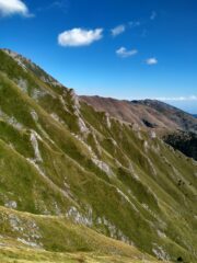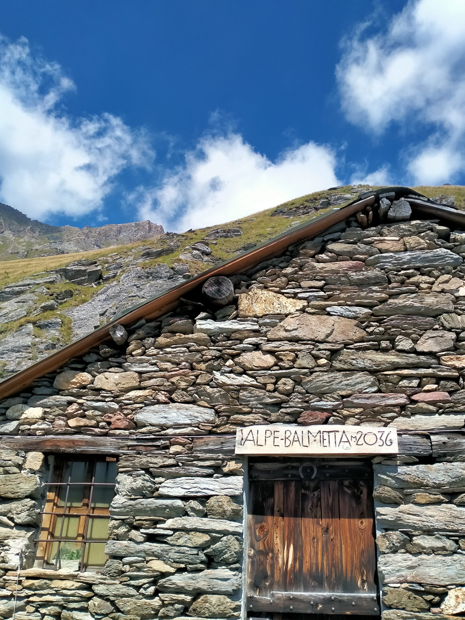Si prosegue ora una traccia lungo la cresta (non farsi trarre in inganno dall’ampia mulattiera semipianneggiante che entra nel vallone – è solo la pista di per la prese dell’acquedotto), per piegare poco sopra a sinistra a mezzacosta. Con un lungo diagonale in ascesa si esce così dal bosco e si raggiunge l’alpeggio di Balmetta (ricovero d’emergenza sempre aperto).