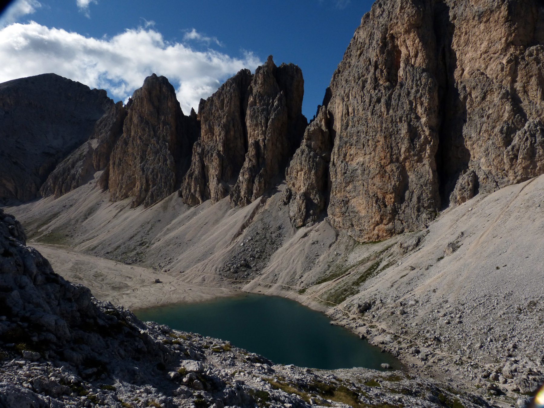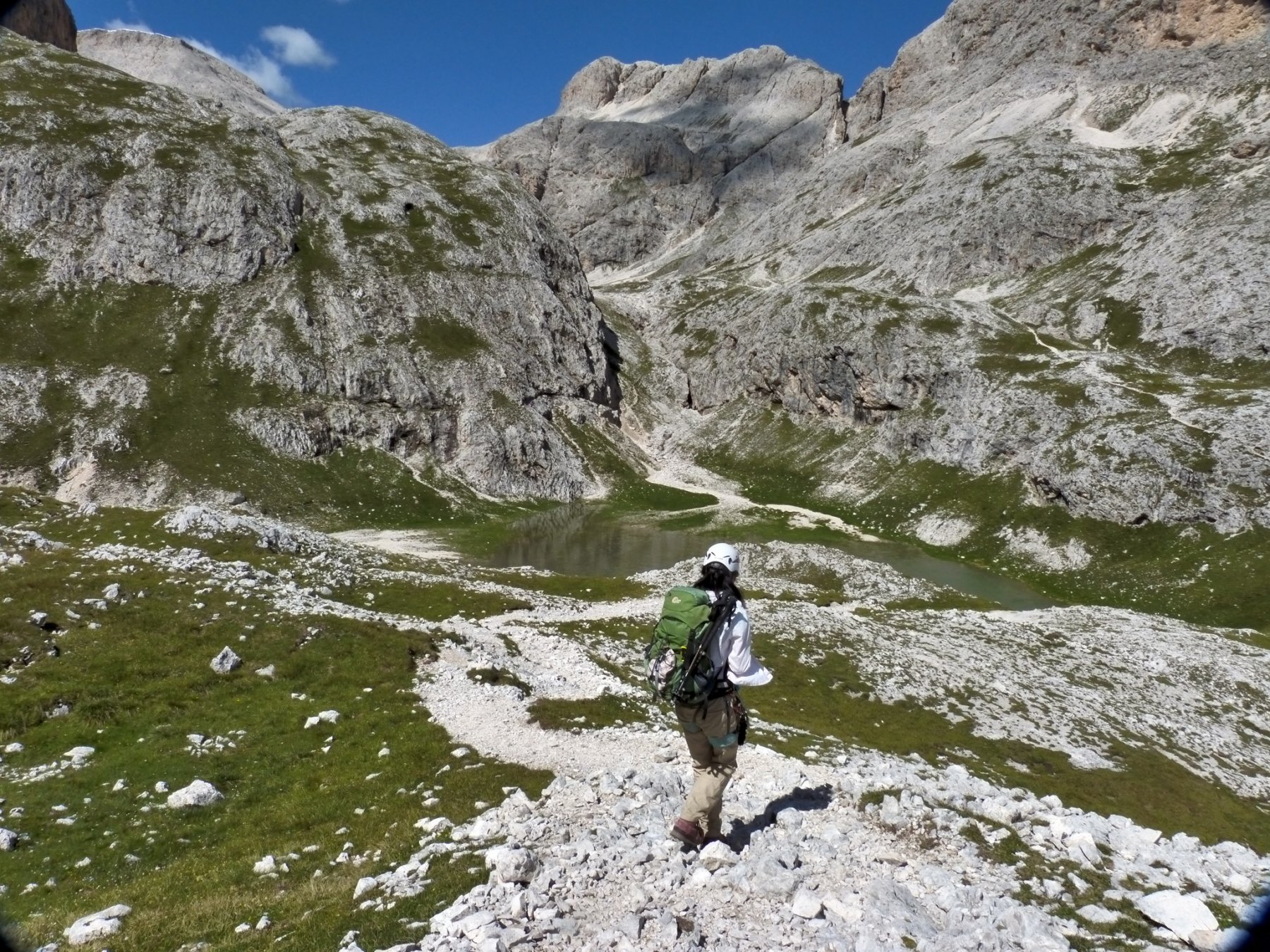 Da lì si prosegue sempre per il E583 fino al Pas de Laussa per sentiero con traccia evidente e qualche sfasciume, da lì dopo 3h circa di cammino si giunge al Rif.Antermoia.