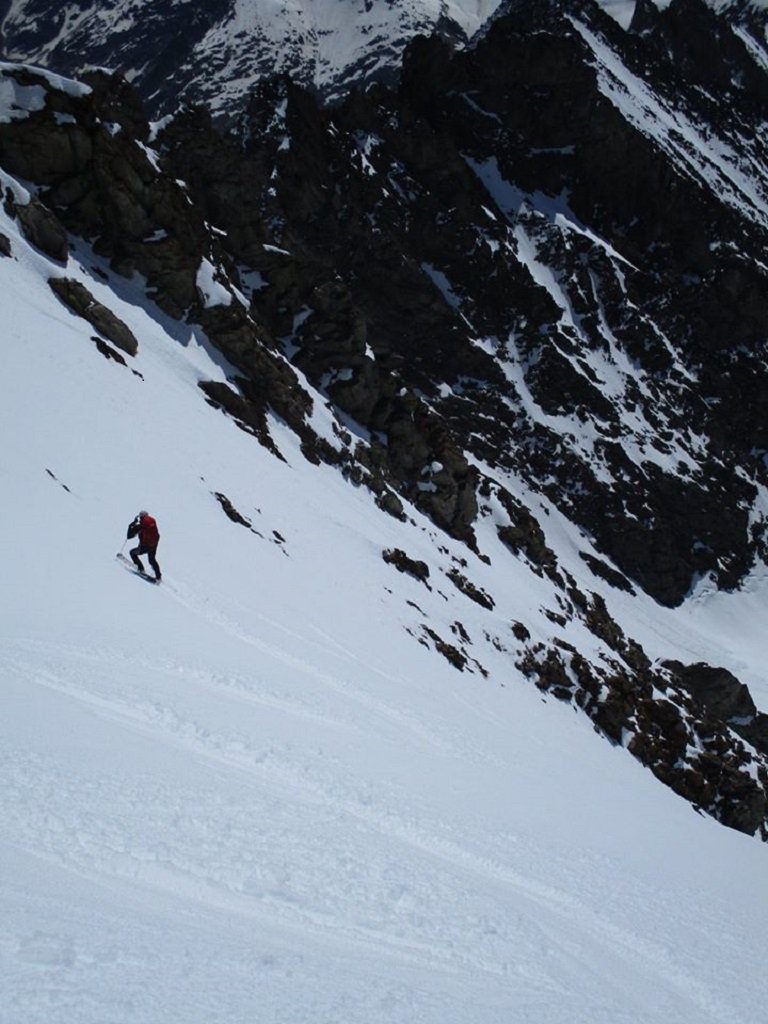 La parete-canale sud è alta circa 900 metri, tra i 3000 e i 3900 m. e ha pendenze crescenti che, negli ultimi 400 m. superano i 45 gradi.