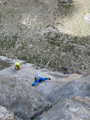 - L3: 6a+ Lunghezza su roccia molto bella, cannelures, che ci è parsa un filo sovragradata.