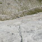 - L5: 6a+ Più impegnativo di L3, inizio su strapiombo poi traverso su cengia a destra, roccia non ottima fare attenzione alla ferrata sotto
