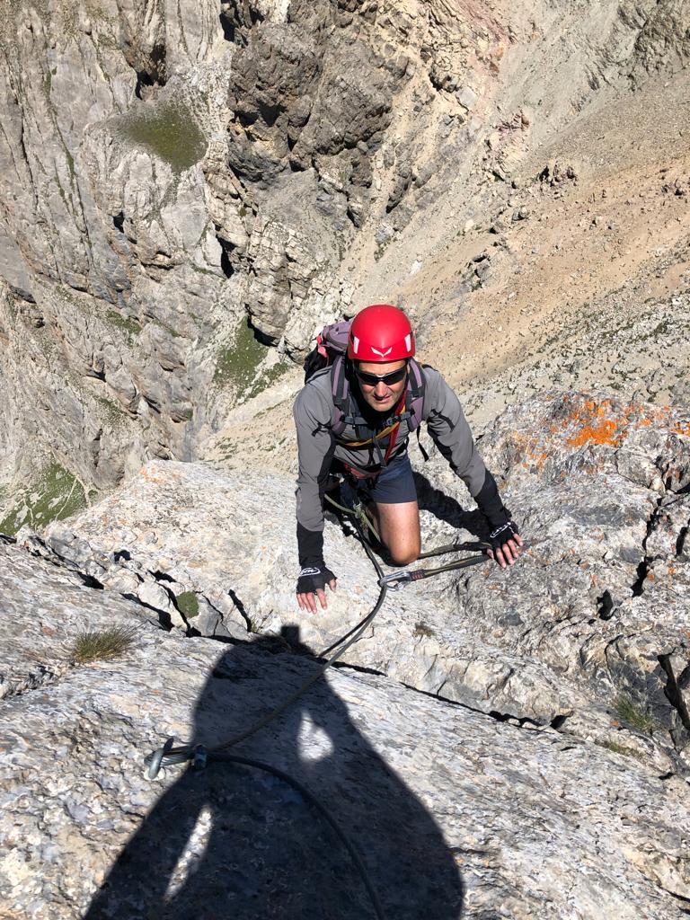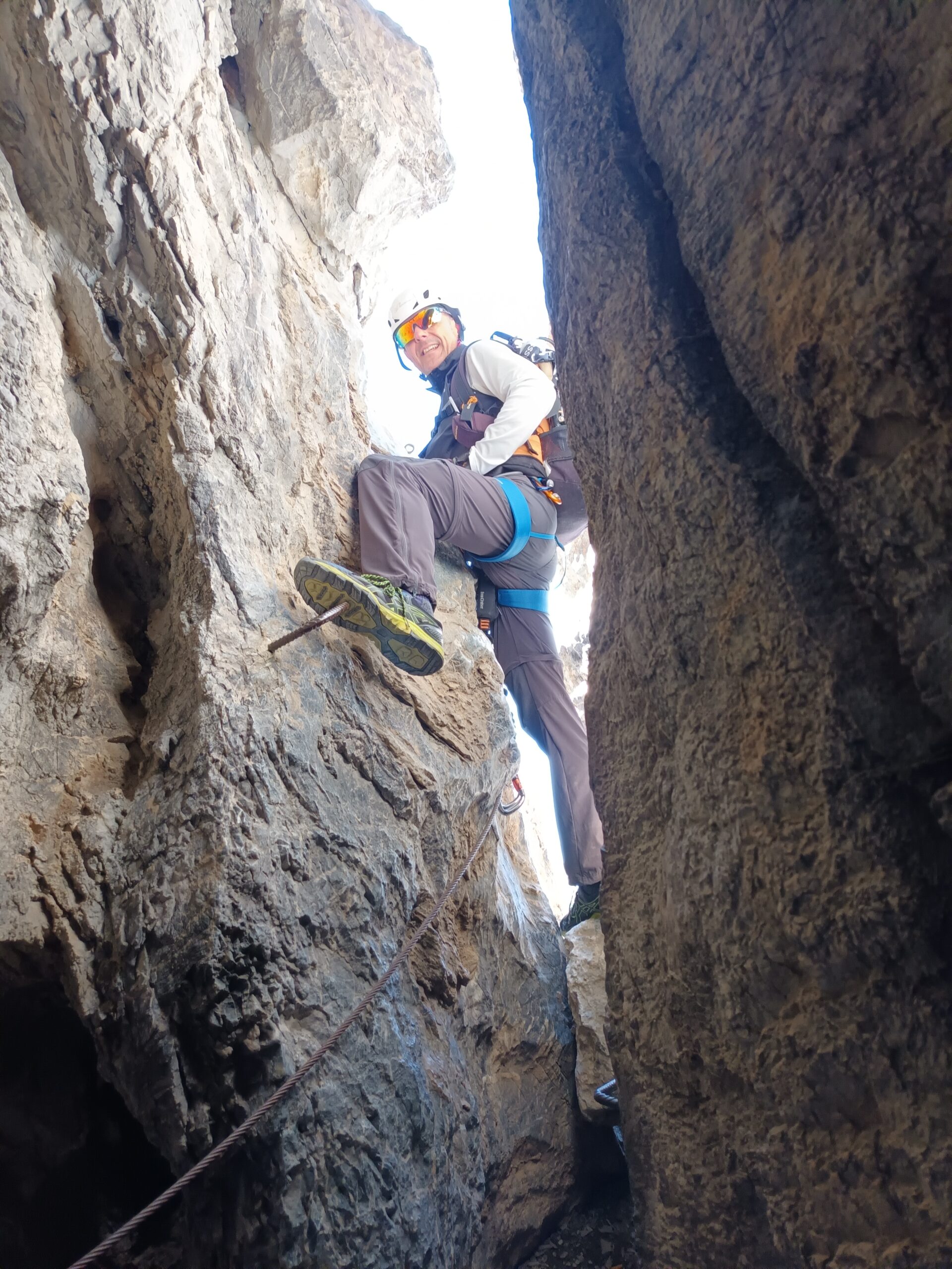 Giornata calda e molto soleggiata, senza nuvole e con panorami top. Ritmo veloce sia in salita che in discesa. La ferrata è molto spettacolare, con un paio di passaggi un po’ impegnativi e due grotte rocciose suggestive in cui, con lo zaino in spalla, si passa al limite. Panorama stupendo della vetta e discesa per la via escursionistica. Un grande giornata con l’amico Vincenzo.