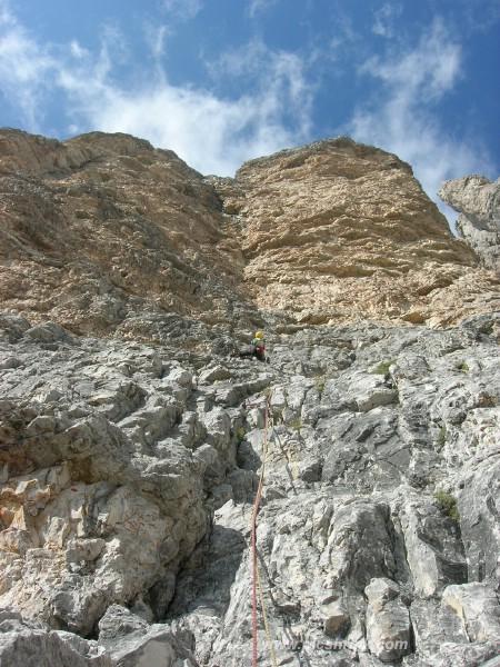 Poche cose da aggiungere se non provare un enorme rispetto ad immedesimarsi nelle gesta di quello straodinario alpinista ed atleta che è stato Emilio Comici.Itinerario di eleganza ed arditezza inverosimili per quei tempi…da sotto è una pala da brivido veramente inquietante..Primo giorno di vacanza con Mark..Era da ’90 che non venivamo alle Lavaredo con una grande avventura sulla Grande…imperdibili per uno scalatore-alpinista!Discesa non banale, soprattutto nel canale conclusivo a nord..Occhio alla gente che scende dalla normale della Grande