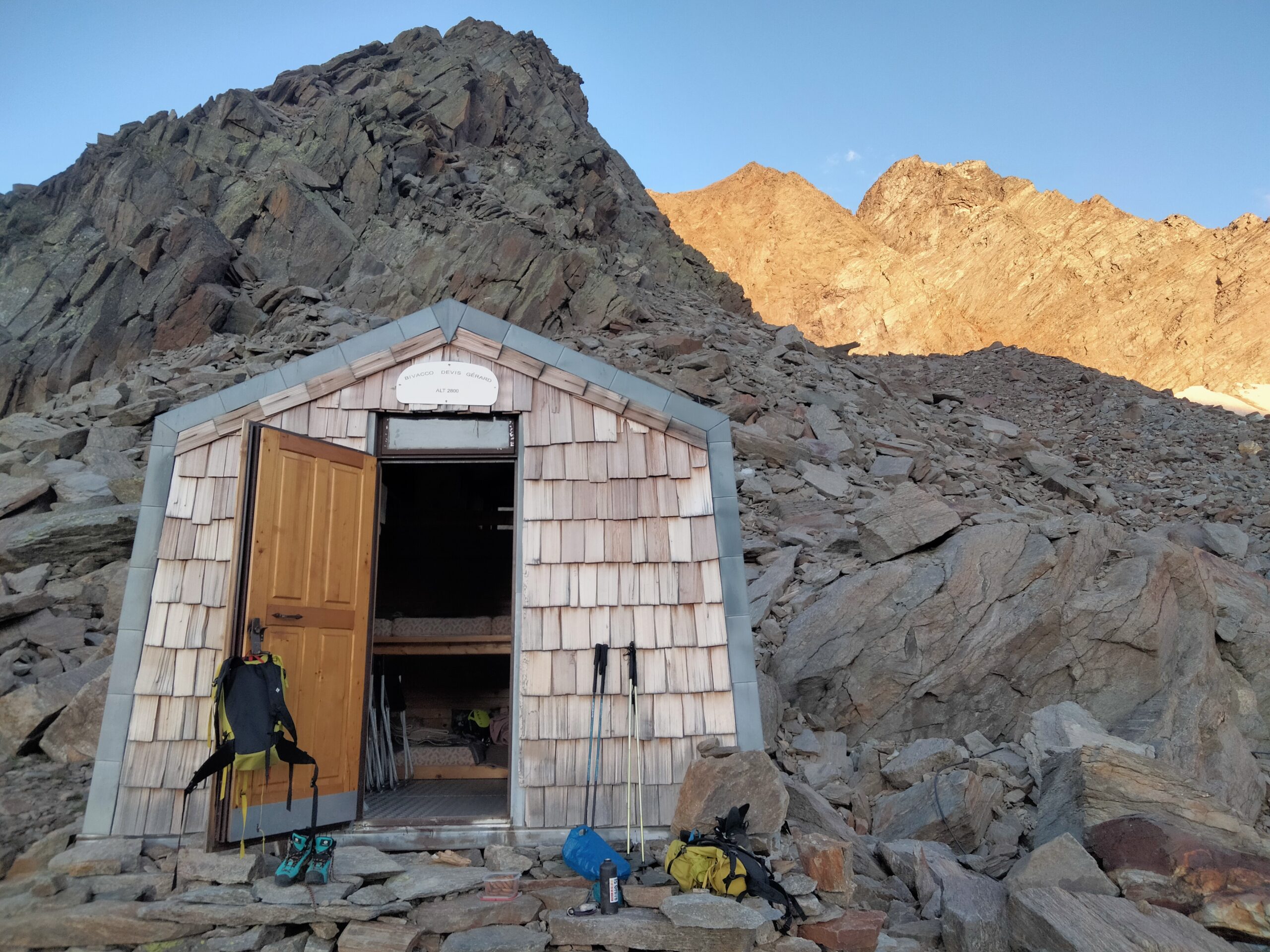 Il recente (e comodissimo) bivacco Devis Gerard permette di spezzare il lungo avvicinamento, comunque più breve da questo lato rispetto al versante Piemontese.