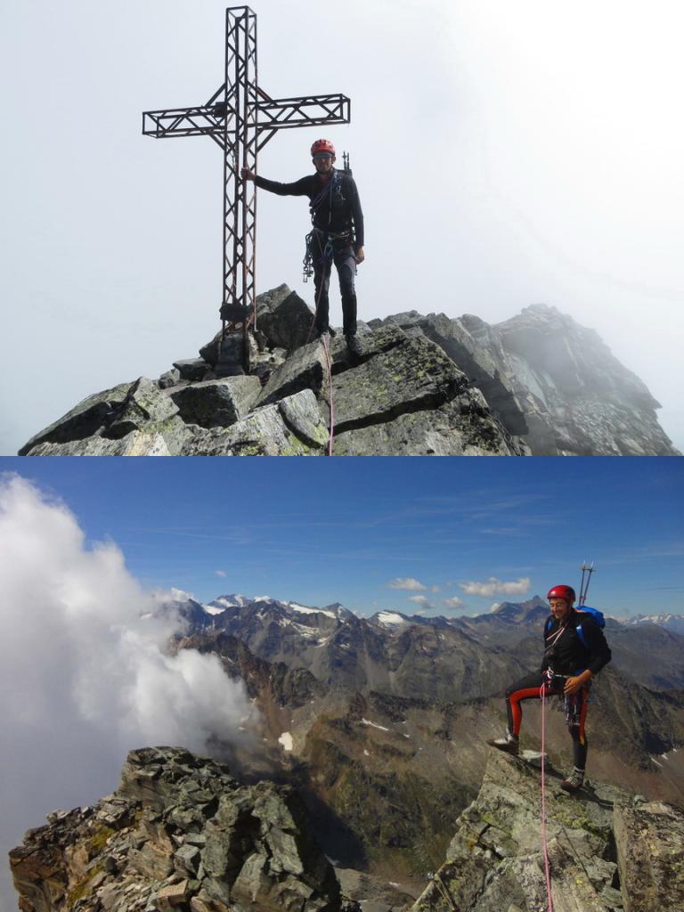 Per la discesa, bisogna scendere verso nord all’intaglio stando a dx del filo di cresta per poi attraversare a sx in corrispondenza di un ometto (qualche traverso delicato sul marcio) e risalire la punta nord; continuare sulla cresta nord, molto facile, fino alla spalla da cui si diparte la cresta Nord-Ovest, che conduce al bivacco. Svoltate a sx e seguitela, non fatevi ingannare da ometti che invitano a proseguire oltre lungo la cresta nord spartiacque, scendere di lì è assai più laborioso.