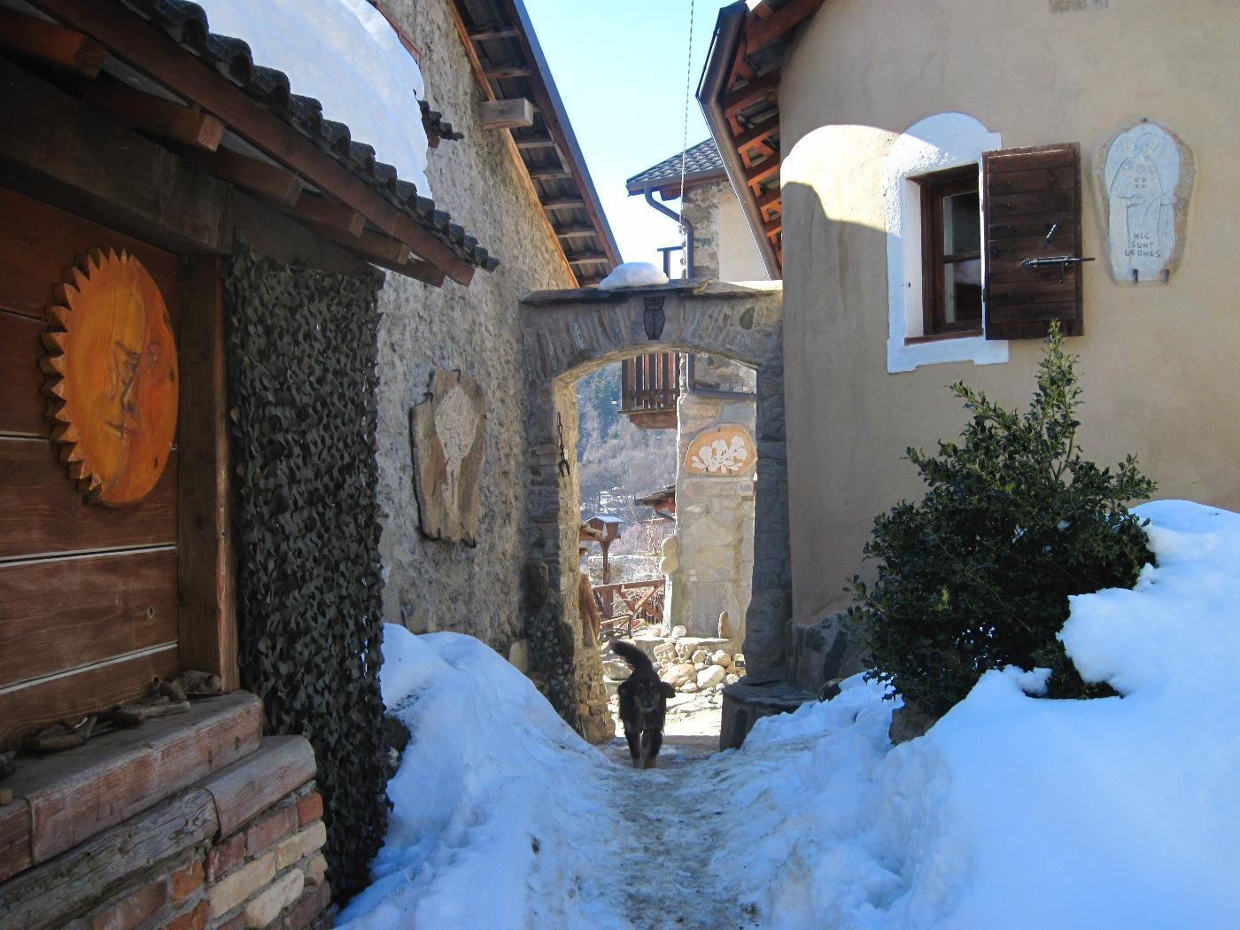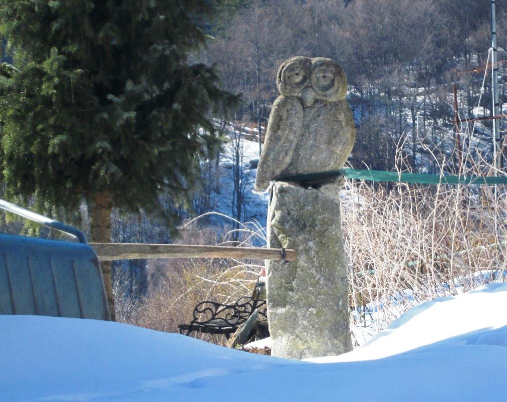 E’ un divertimento girare fra le case e vedere queste belle sculture, che spesso ricordano i vecchi lavori montani, o andare a caccia delle numerose civette che ci guardano severe.