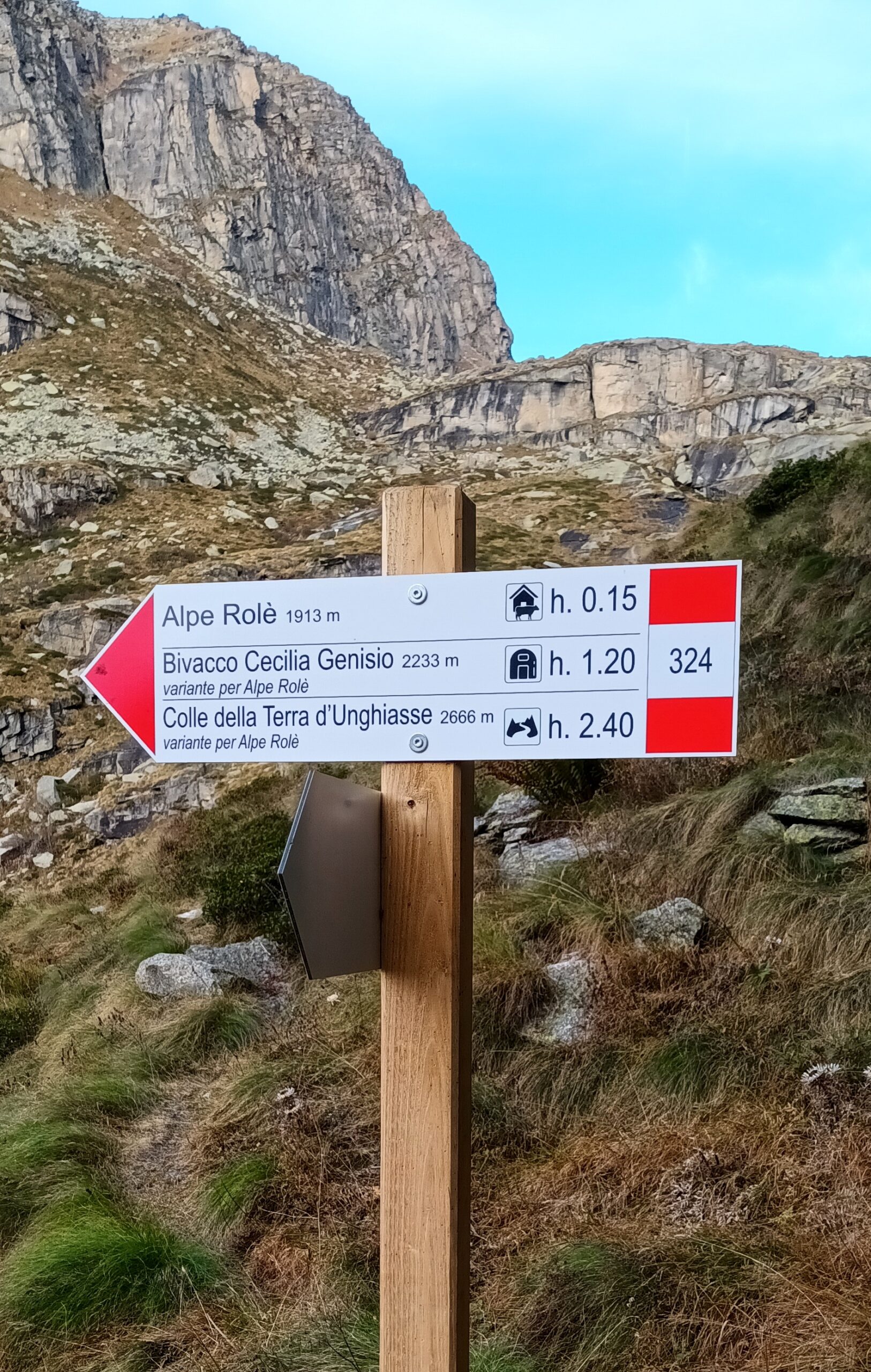 Giro ad anello in luoghi stupendi. Sono partito da Vonzo, qundi Chiappili, Vallone della Vassola e Alpe Balmot. Superata quest’ultima si trova un cartello che indica il sentiero classico ma anche la possibilità di seguire la nuova variante che si dirige scendendo all’Alpe Rolè. Il sentiero è ben segnalato da bolli b/r, e superato l’alpeggio si prosegue su traccia poco evidente ma ben segnalata, la quale porta ad un passaggio davvero particolare, che si effettua all’interno di alcune rocce. Si prosegue fino ad intercettare il classico sentiero per il Bivacco Genisio, ma lì io ho deciso di abbreviare il percorso e sono salito direttamente al colle della Terra di Arrè. Disceso al Pian Di Lee mi sono poi diretto al Ciavanis passando da Pian Quarchietto senza passare da Testarebbo.