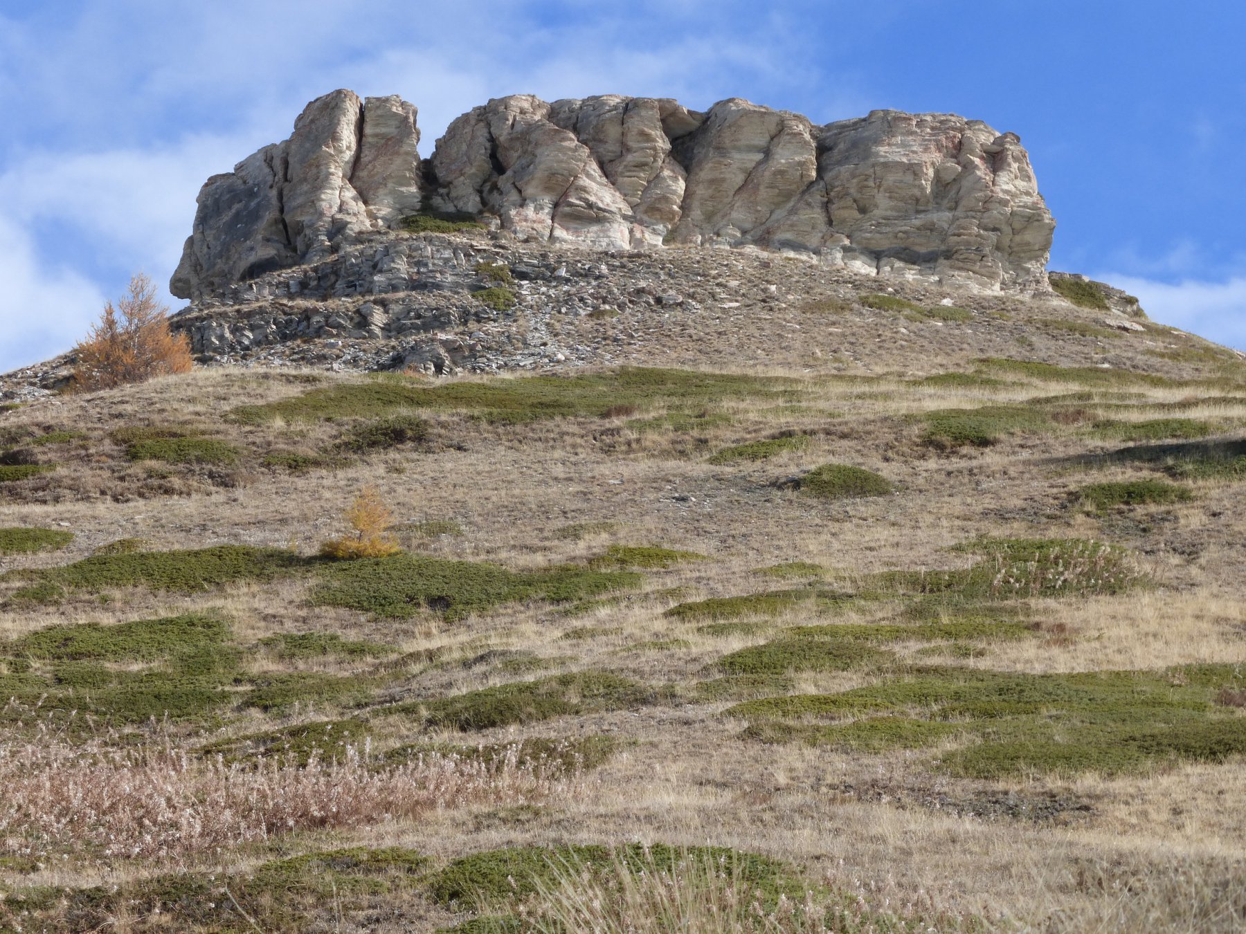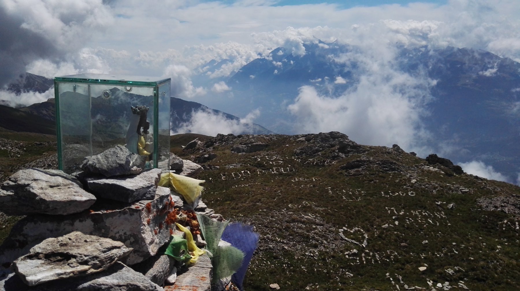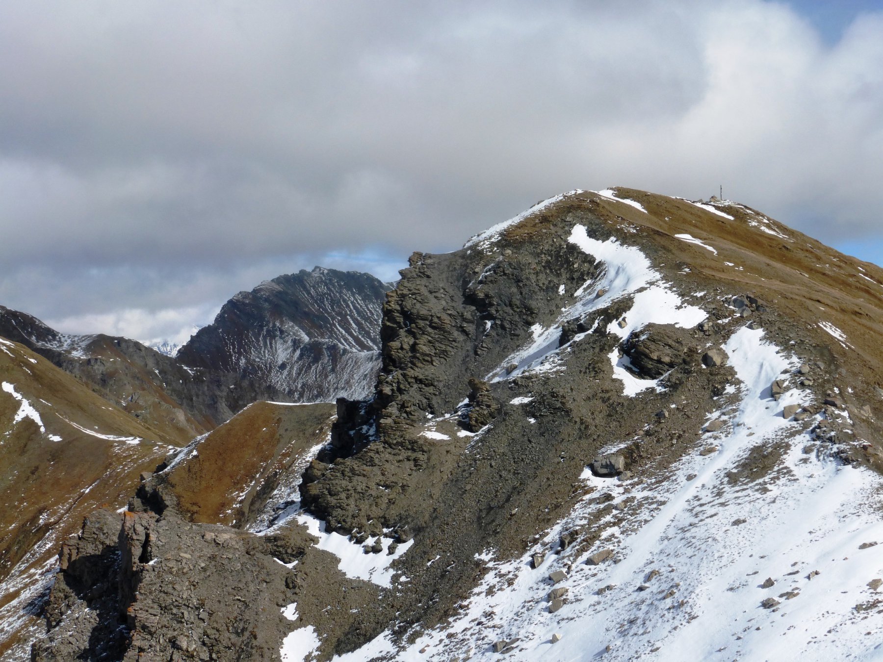 Poco sopra (palina) si sale verso la punta Oilletta (quota 2616) poi per cresta erboso-detritica (traccia) si compie un grande semicerchio con alcuni saliscendi e si giunge alla croce di vetta di cima Leysser (m 2771).