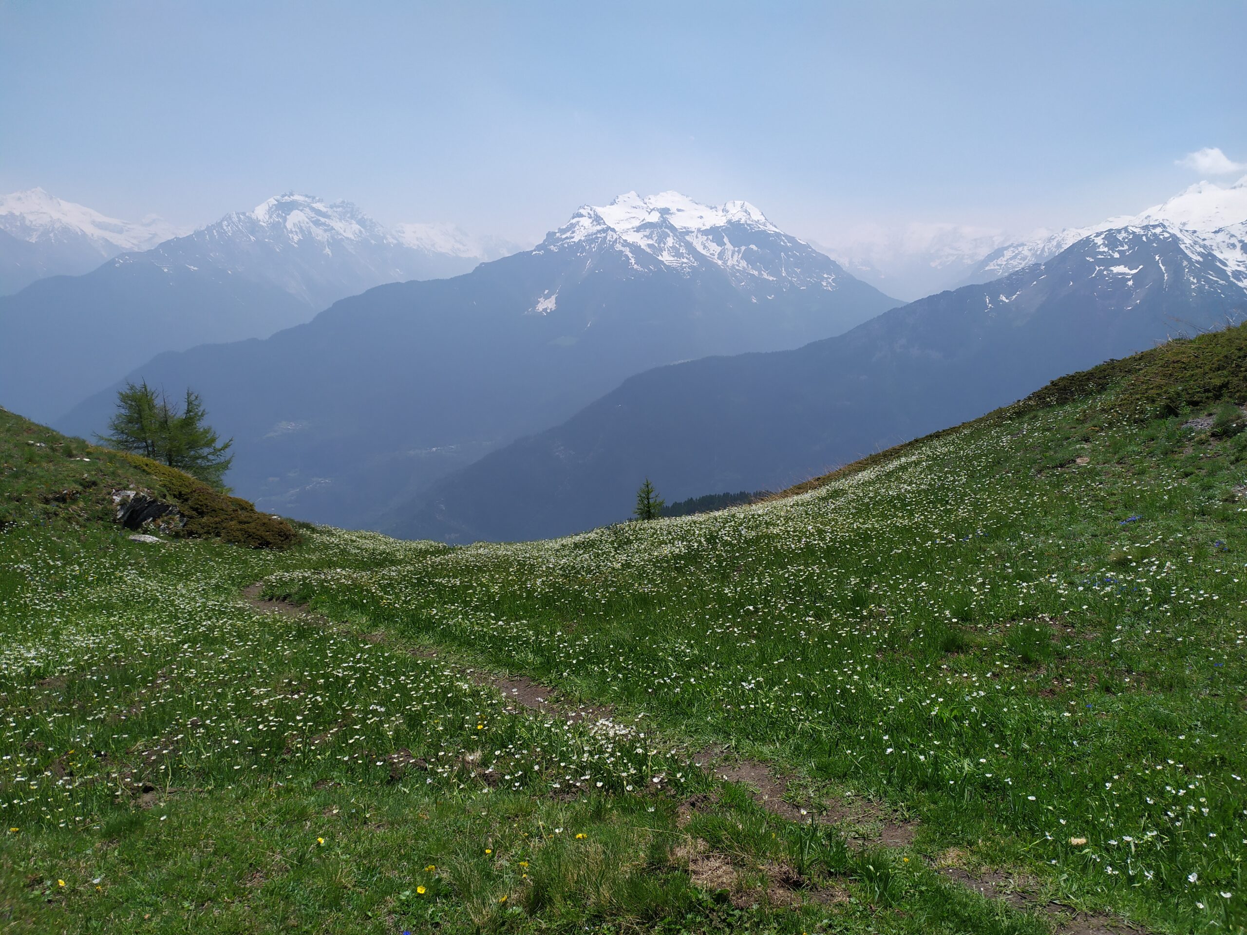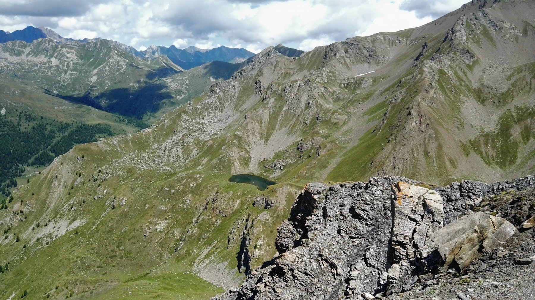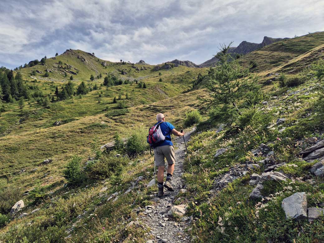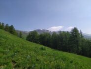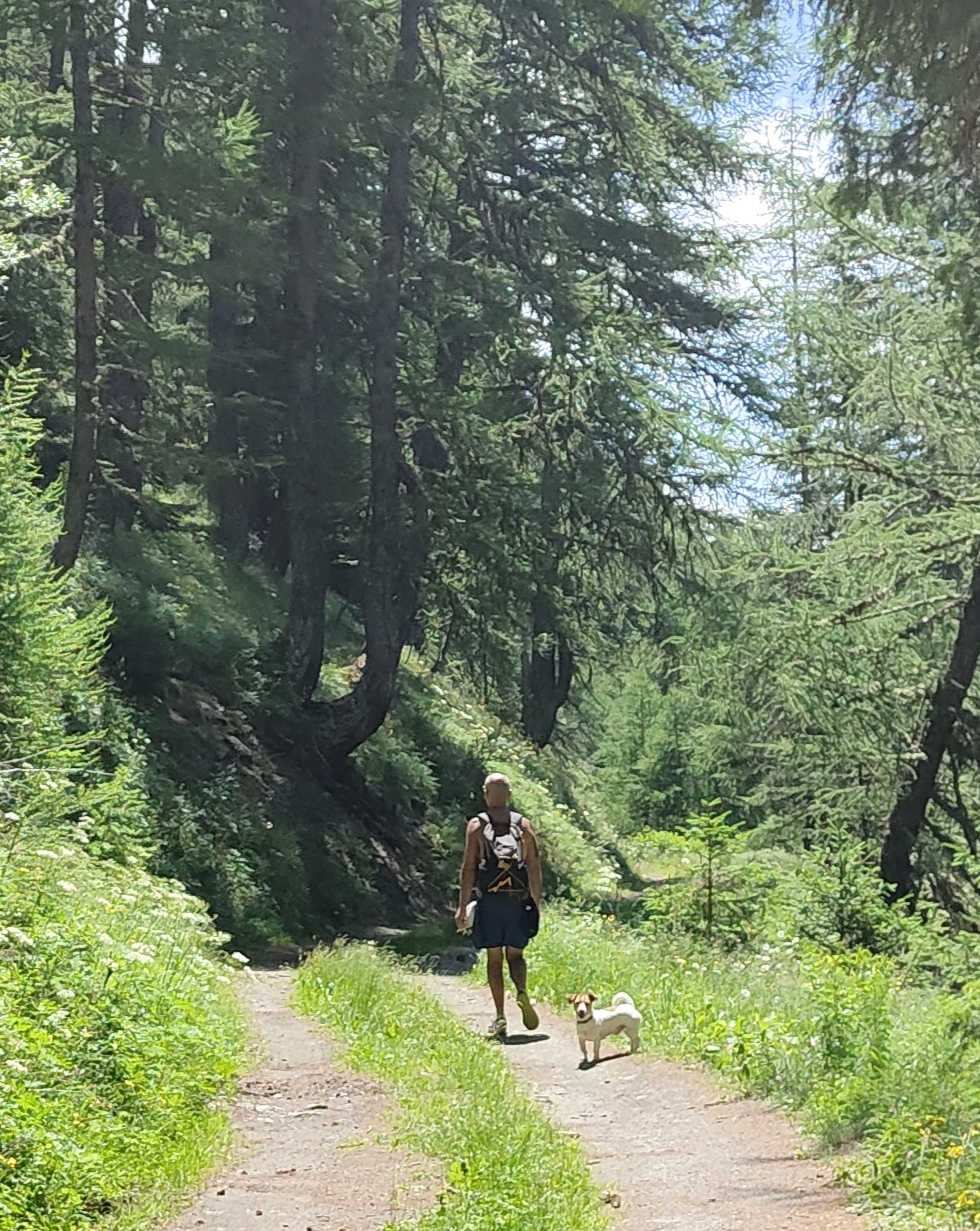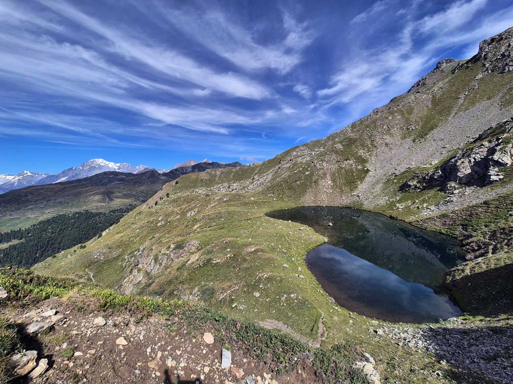 Dal lago un buon sentiero scende nel vallone di Leysser, entra nel bosco e poi diventa uno sterrato che porta al col de Joux, al laghetto e quindi a Vens.