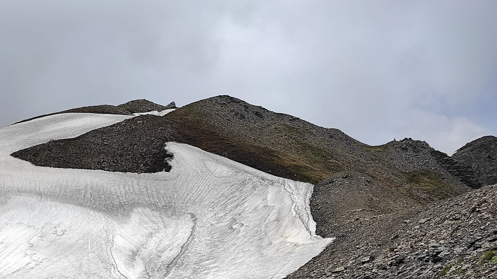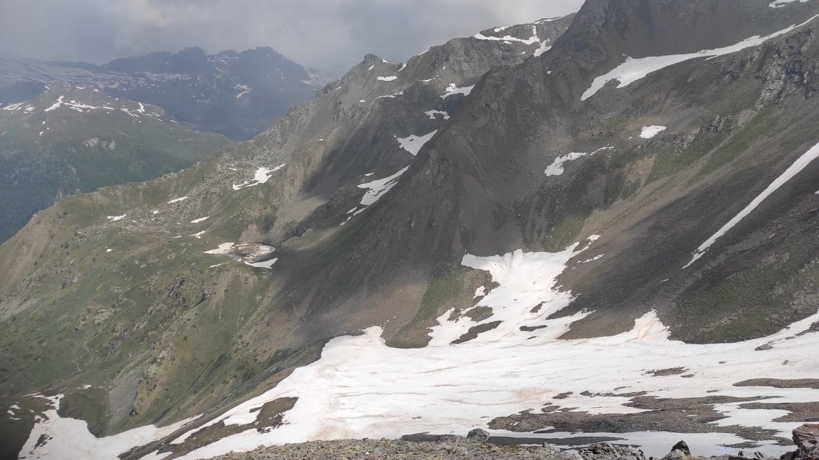 Percorso fino all’Oilletta un nevaio aggirabile……per la Punta Leysser ancora presente alcuni nevai che non danno alcun fastidio…..non fatto giro ad anello……..Lago Leysser ancora ghiacciato ……