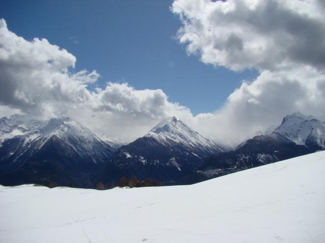 Per fortuna che il bellissimo e ampio panorama (Rosa Gran Combin Bianco Rutor Grivole Granpa e l’Emilius) godibile dalla Leysser l’avevamo già potuto ammirare in salite estive.