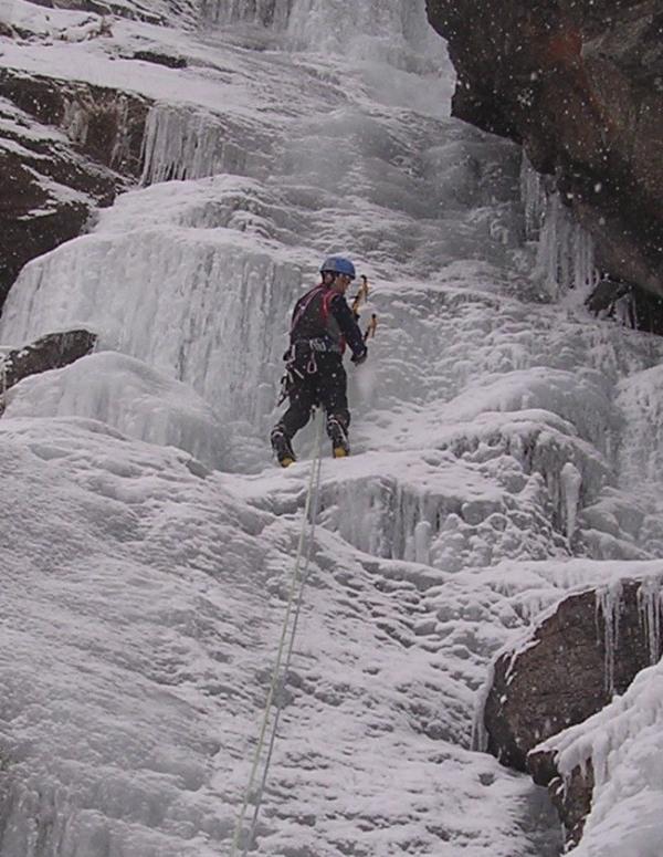 La relazione si riferisce alla nostra salita ed il ghiaccio era veramente poco e delicato. Tuttavia con qualche nevicata in più (ma attenzione!) e un pò meno di freddo le condizioni potrebbero migliorare. All’uscita siamo stati bersagliati da blocchi di ghiaccio provenienti dall’alto, ma uno strapiombo ci ha impedito di vederne l’origine. E’ la prima salita con tutta probabilità, poichè la cascata necessita di condizioni molto particolari.