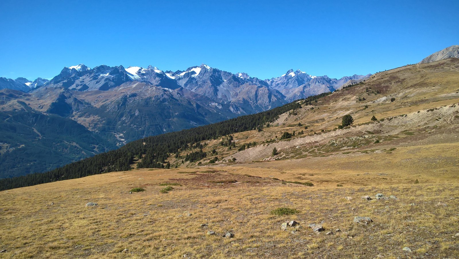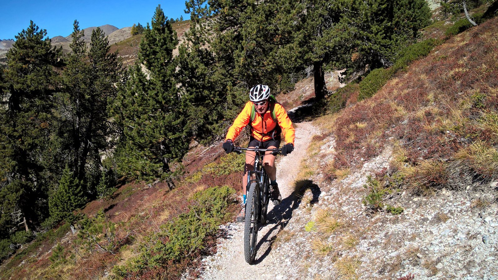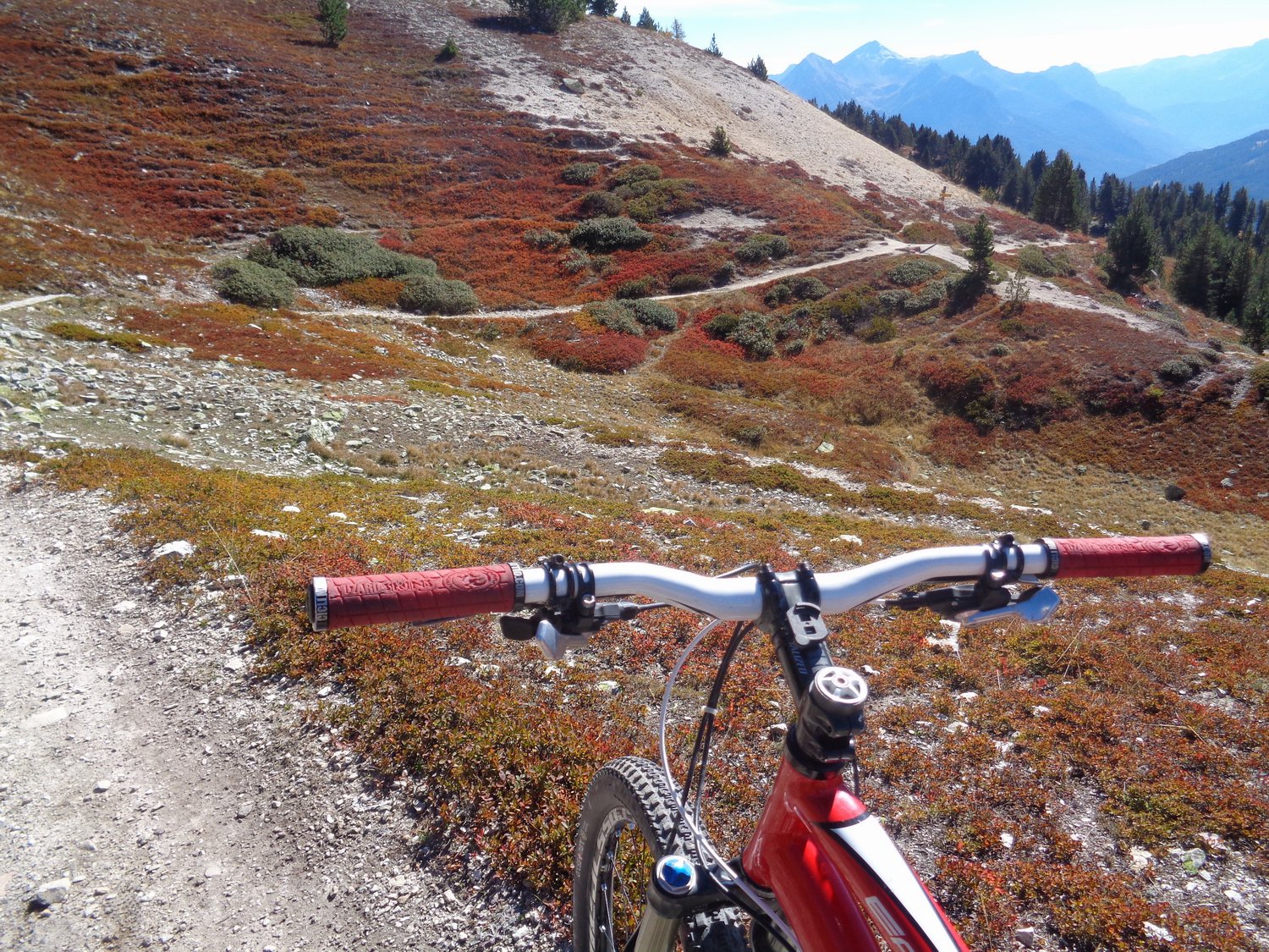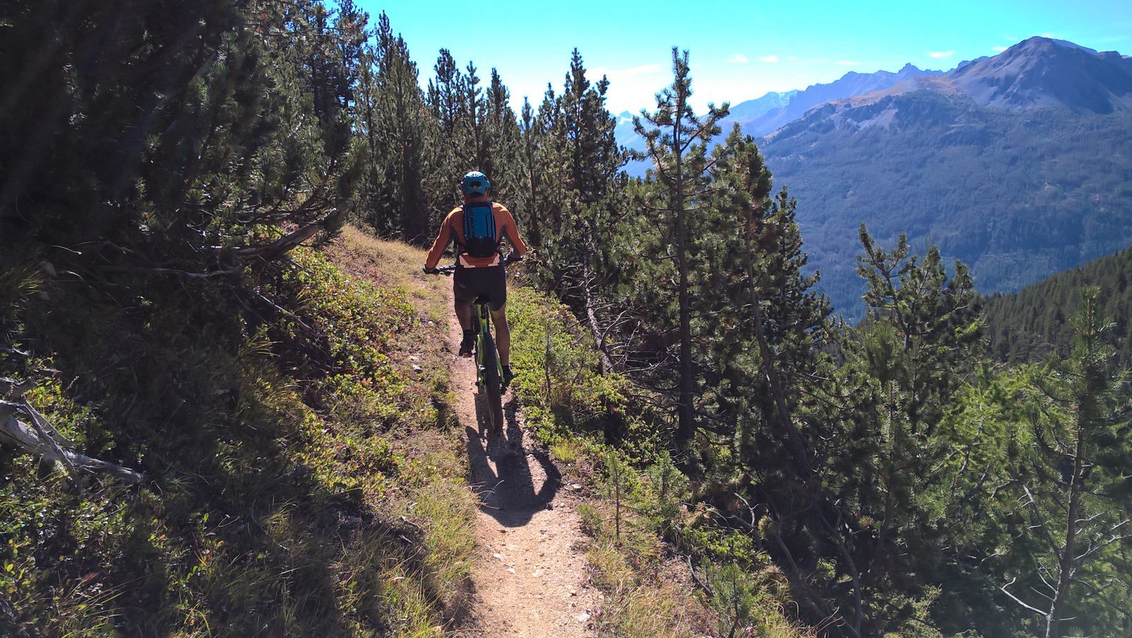 Si risale quindi per 1,5 Km alla Croix de Toulose 1906 m. Dopo aver ammirato il panorama a picco su Briançon, si scende lungo il bellissimo ed evidente sentiero a sinistra (staccionata in legno). Poco prima di arrivare al forte poco sopra Briançon, si lascia il sentiero principale e si segue a sinistra una traccia con indicazioni “VTT” (rosse su fondo bianco).