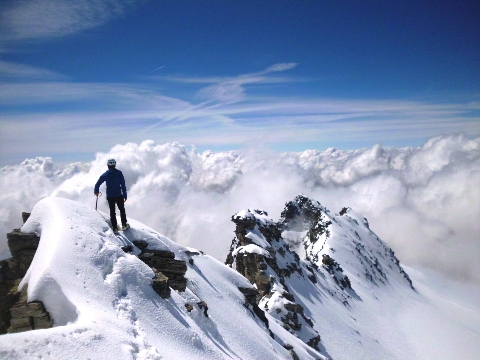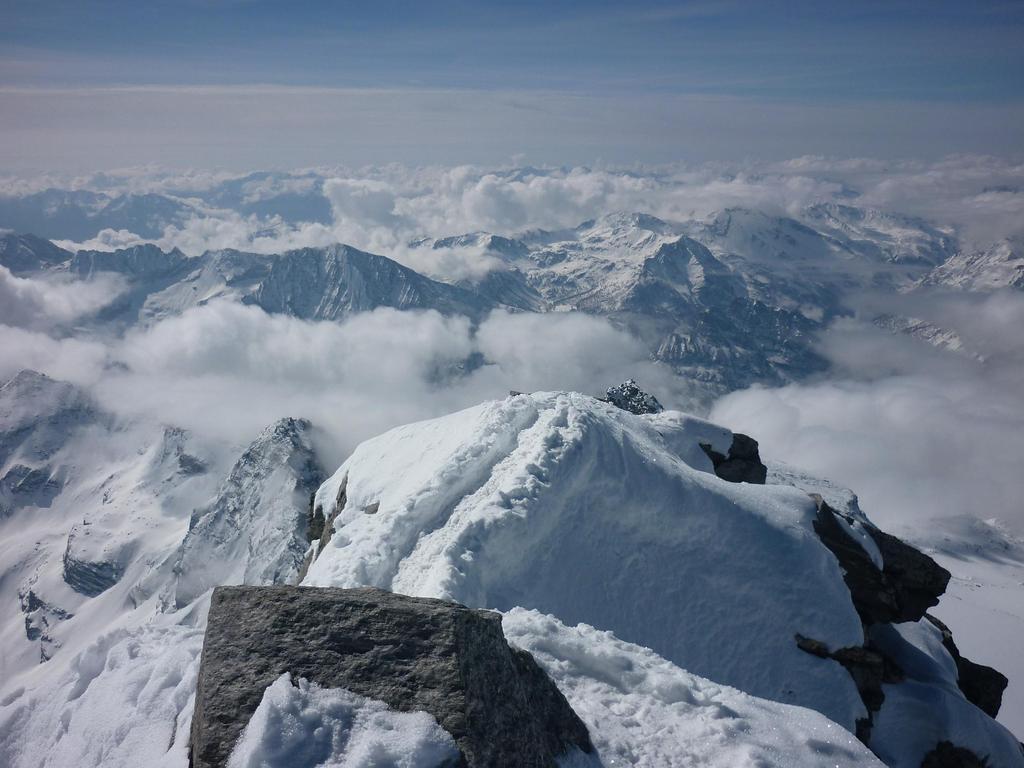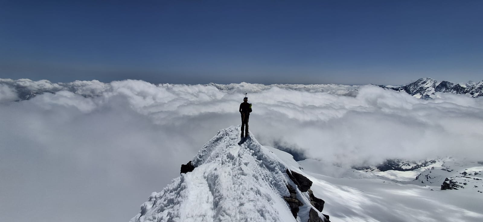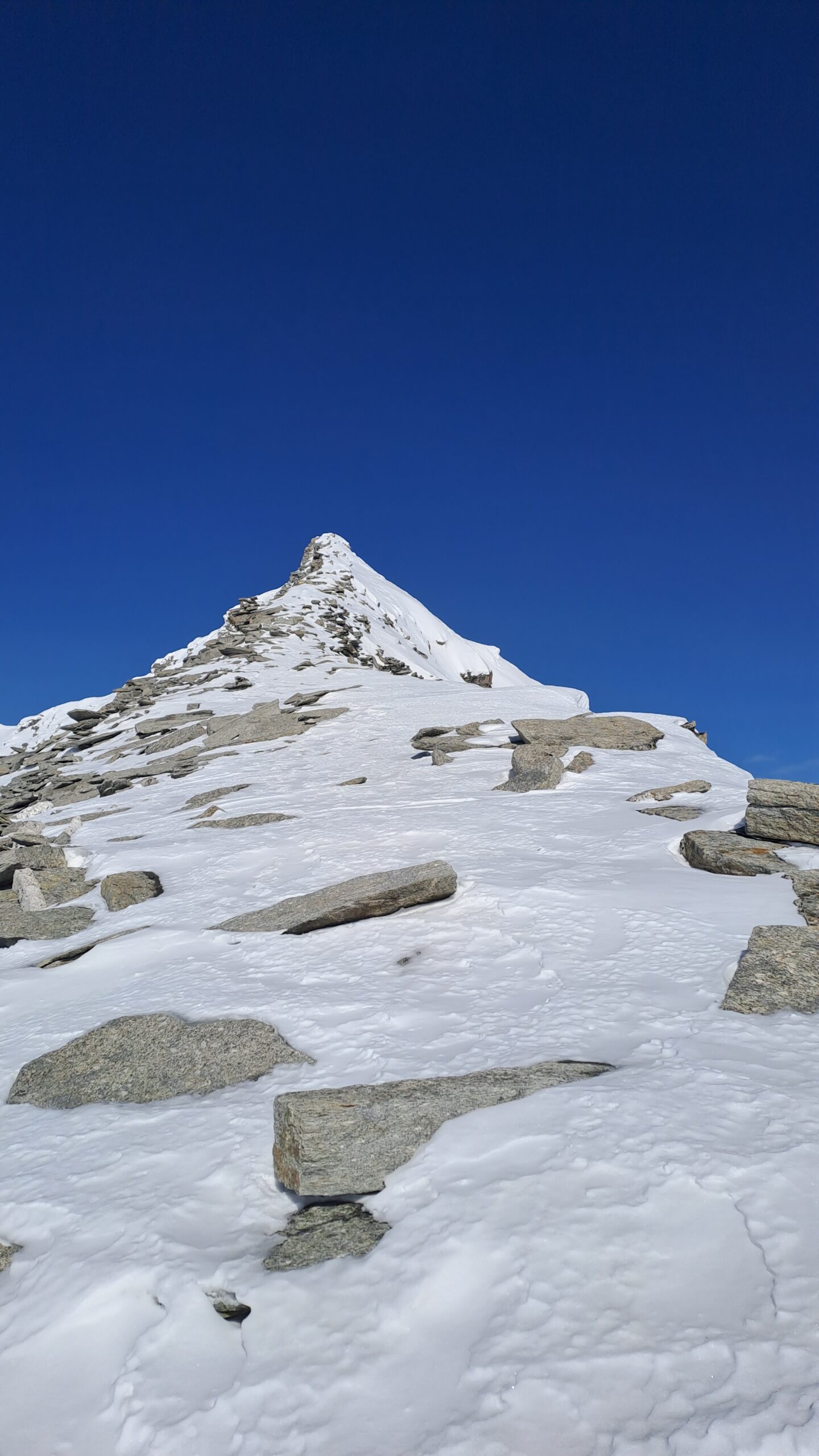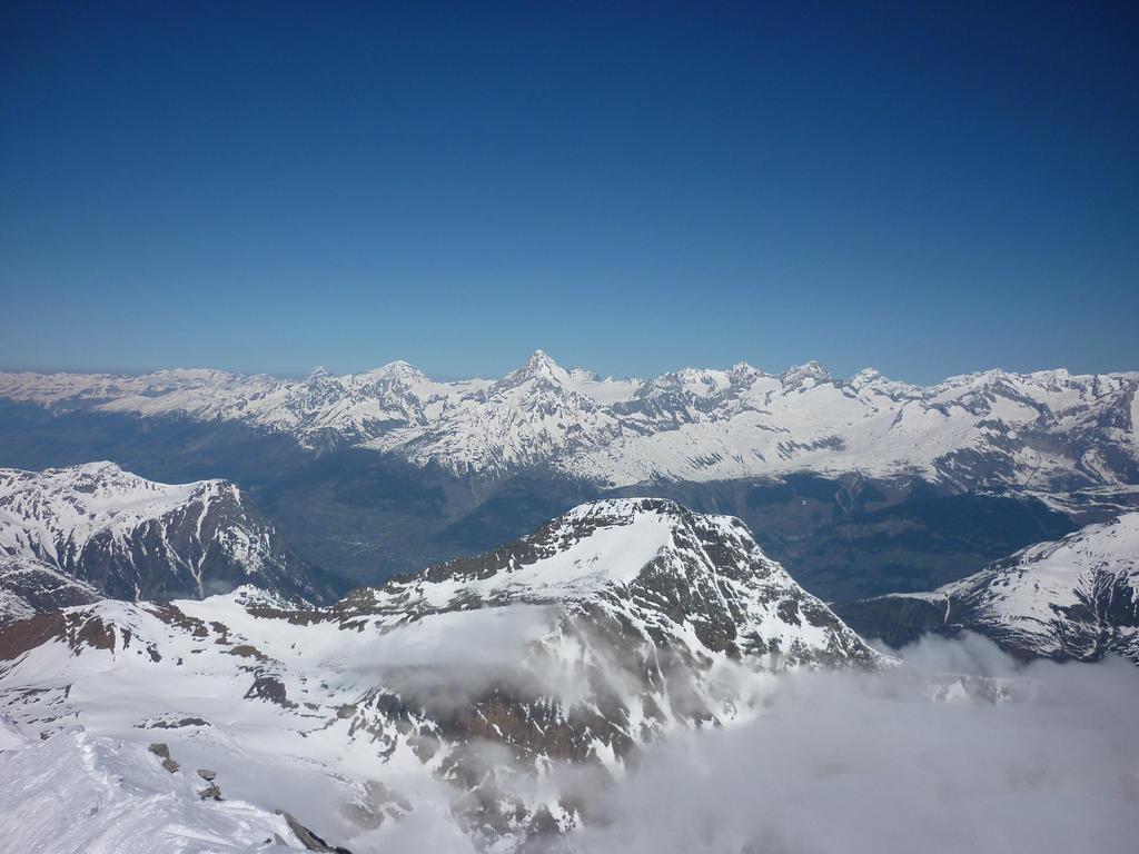 Dalla vetta con percorso a ritroso si ritorna al Colle del Breithorn (100 m di dislivello positivo).