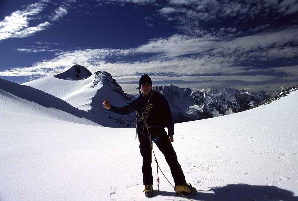 Una bella salita alla montagna più elevata delle Alpi Lepontine, fatta con l’ausilio di una giornata splendida e trovando la neve ed il ghiacciaio in buone condizioni. Abbiamo pernottato all’Ospizio del Sempione e siamo partiti presto, dato che l’ascensione è lunga, e ha richiesto ben 6,30 ore…! Un itinerario piuttosto lungo che si svolge nel primo tratto su sentiero, una ripida morena, una scarpata rocciosa e un ghiacciaio facile e con pochi crepacci e una bella cresta rocciosa a blocchi e gradoni con passi d I e II (che a mio avviso è il tratto più interessante e piacevole dell’intera salita). Un’ascensione lunga e abbastanza faticosa, ma ne è valsa decisamente la pena di essere venuti quassù, sia per la bellezza del paesaggio, della montagna salita che per il vastissimo e spettacolare panorama ammirato dalla cima, che abbracciava buona parte delle Alpi Pennine, il Massiccio del Monte Rosa, il Gruppo dei Mischabel e l’Oberland Bernese. Non abbiamo incontrato nessuno, ma va considerato che eravamo fuori stagione e pochi si muovono in questo periodo. La cresta rocciosa finale era asciutta e senza neve o vetrato, per cui l’arrampicata e la salita alla vetta è stata piacevole e divertente. Anche secondo la mia opinione è un itinerario valutabile F+ se lo si trova in buone condizioni, il grado PD è giustificato se si trova la cresta finale innevata o verglassata. E’ una montagna che merita di essere salita almeno una volta…però vi consiglio di andarci quando siete in forma e ben allenati…onde evitare di ritornare alle macchine con piedi e gambe…massacrati dalla fatica fatta ! Infatti anche noi tra salita e discesa siamo arrivati al Sempione che era quasi buio e…decisamente stanchi. Ma anche soddisfatti per la salita fatta ! Ottimo il trattamento ricevuto nel confortevole e ben tenuto Ospizio del Sempione, che è meno caro di tanti altri rifugi svizzeri da me visitati in passato.