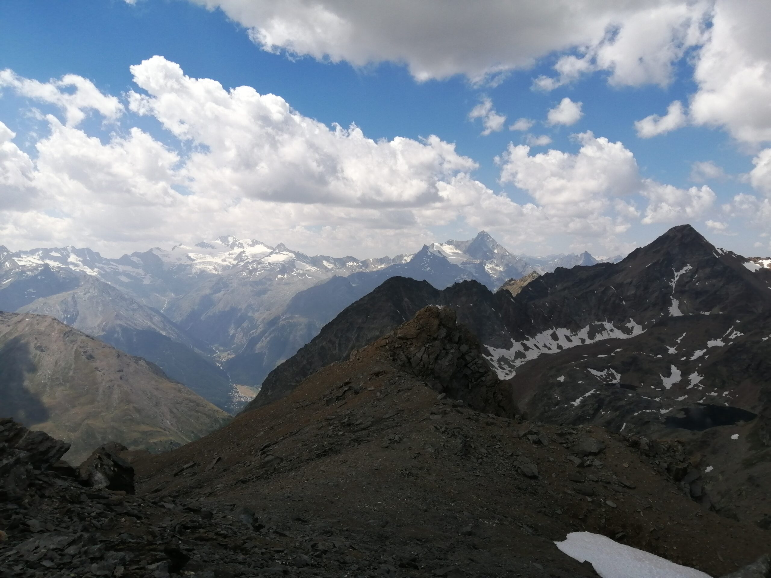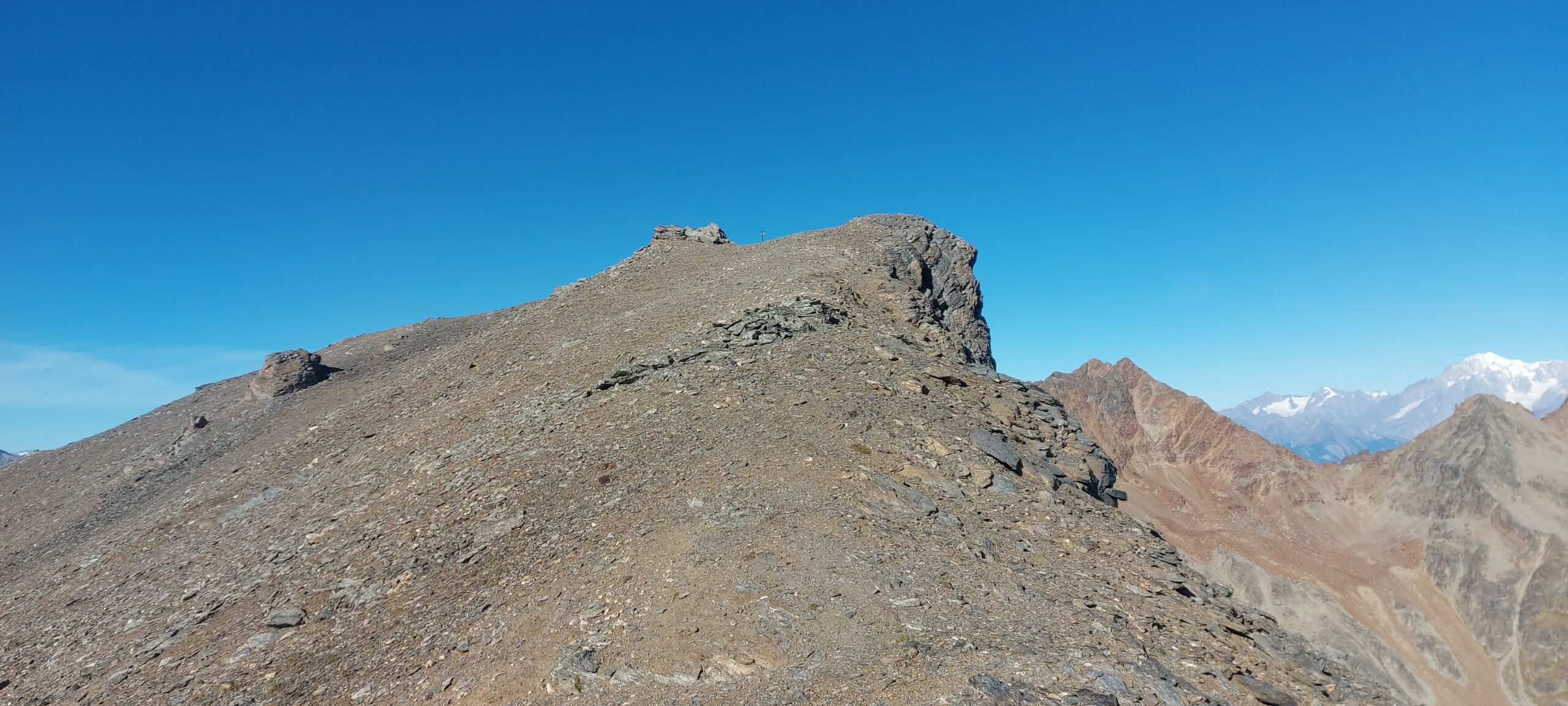 Se seguirete invece il sentiero giusto vi andrete ad infilare in un canalone che sembra non possa ospitare un sentiero; invece c’è ed è anche ottimamente segnato. Il sentiero non agevolissimo, è il n.3 e porta fino in cima al Colle di Leppe da cui si vede (parallelo al vallone di Laures) il Vallone di Saint Marcel che rappresenta un’altra via di salita (recensione presente su Gulliver). Dal colle in un’altra mezz’ora di salita si arriva sulla ampia vetta della Punta di Leppe, panoramicissima. In un paio di punti occorre mettere le mani, ma niente di che.