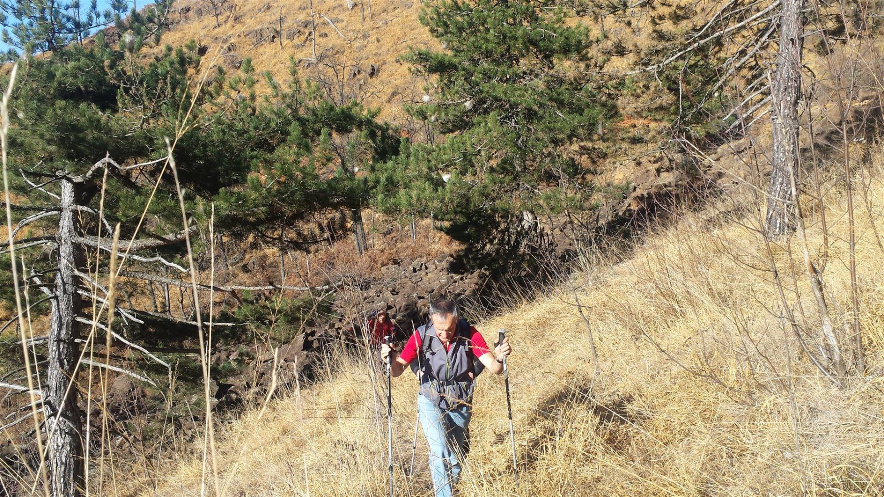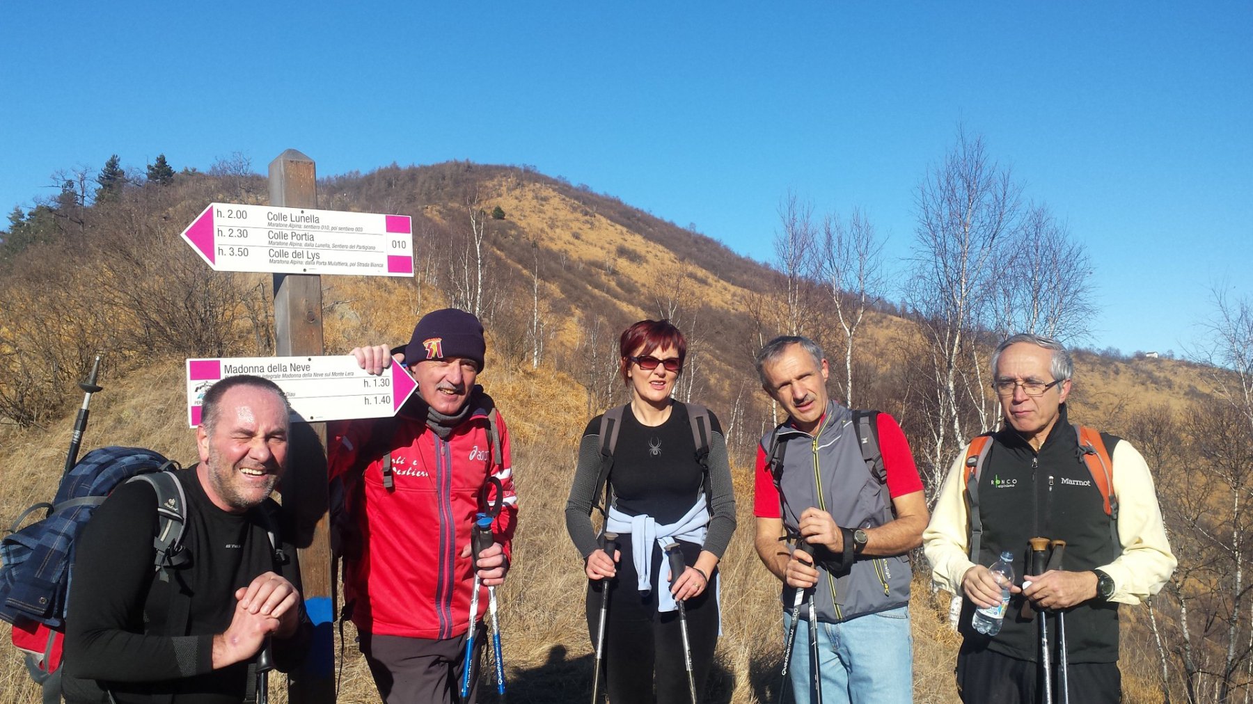 Al ritorno scesi alla Madonna della neve (alcuni residui di neve gelata per le peste) da cui, tornando 20 metri sulla via di andata, nei pressi di un bidone, scende a sx un sentiero a mezza costa che porta comodamente al Colle. Poi come per l’andata.