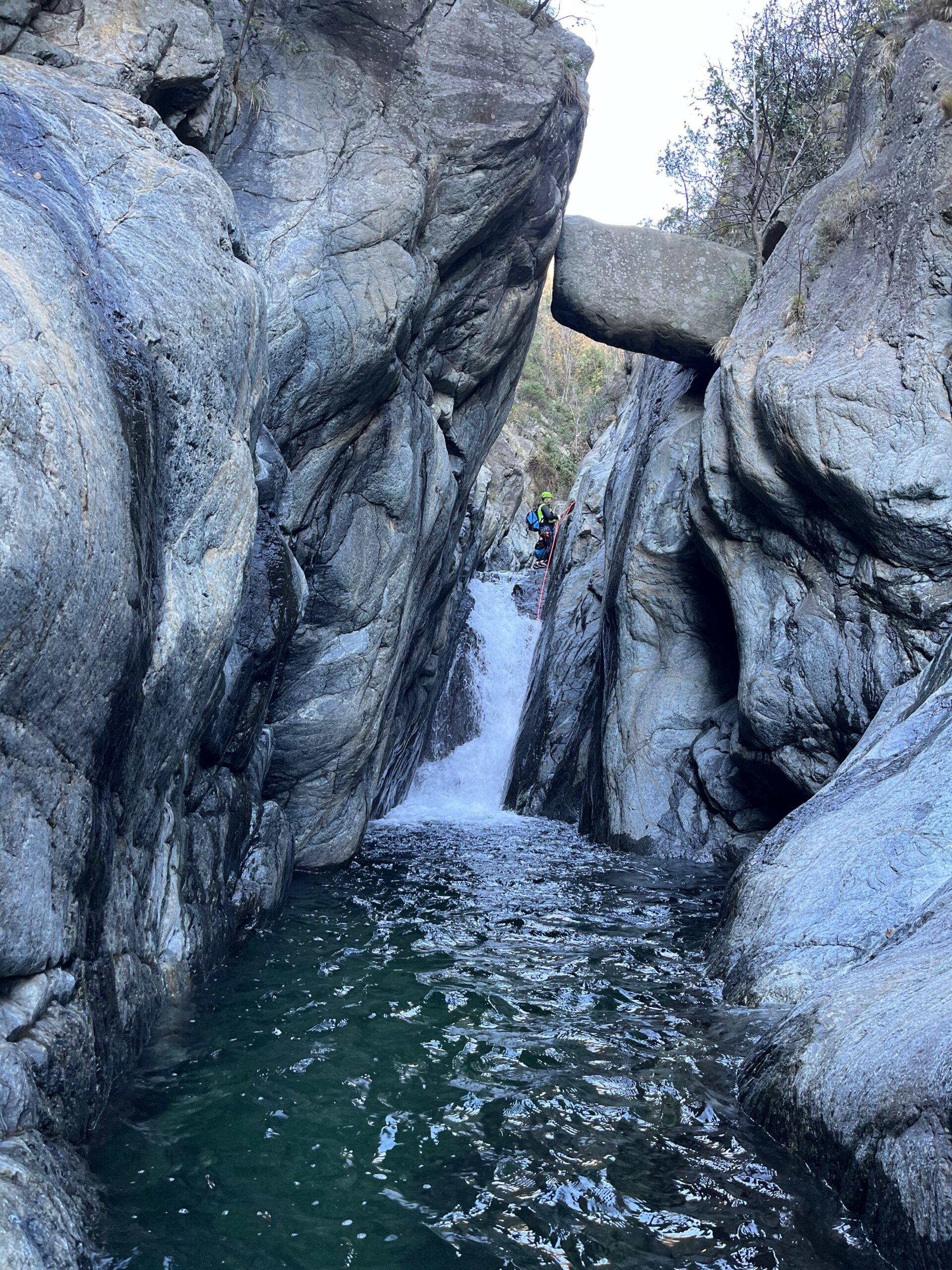 Interessante itinerario si sviluppa nel Parco del Beigua,9 calate max 12m.molti salti.Ideale per neofiti,scavato nelle serpentiniti verdi-azzurre.