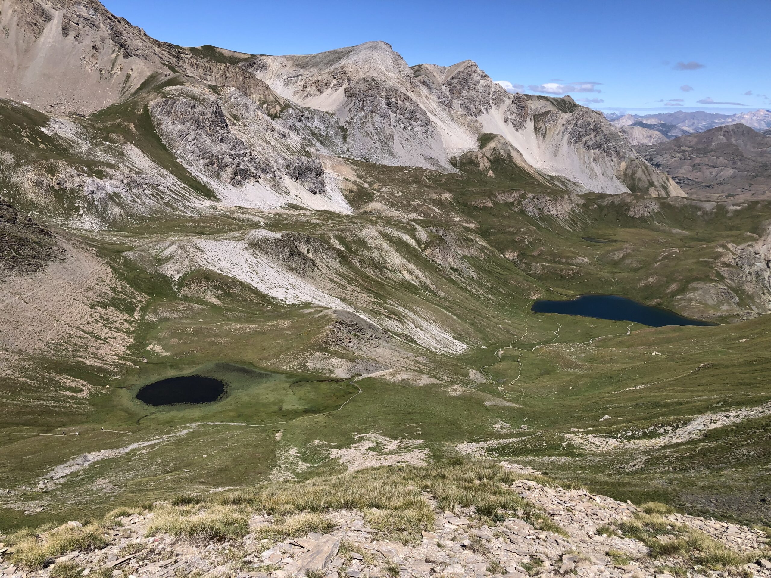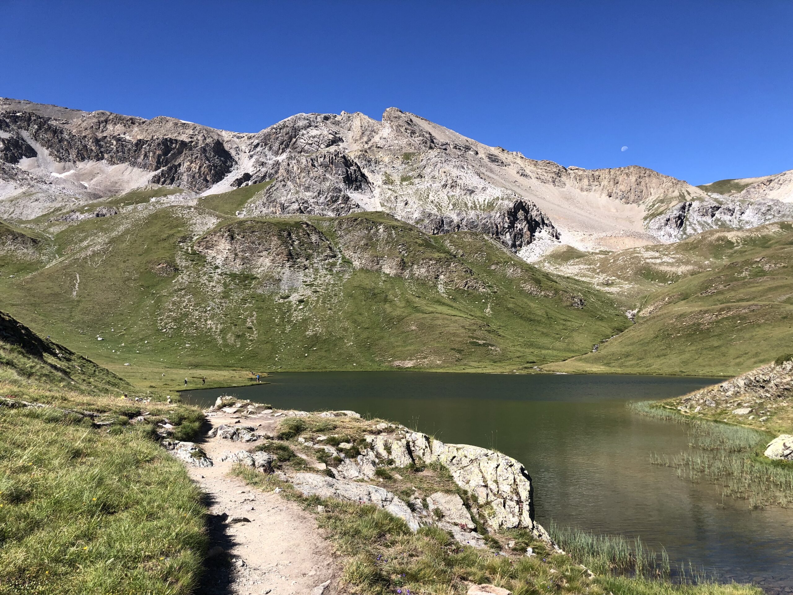 Costeggiata la sponda sinistra del lago, si risale una scarpata che in breve conduce al Col des Marsailles 2601 m. Dal colle c’è la possibilità si salire alla cima del Pic du Vallon Crouzet 2728 m senza particolari difficoltà.