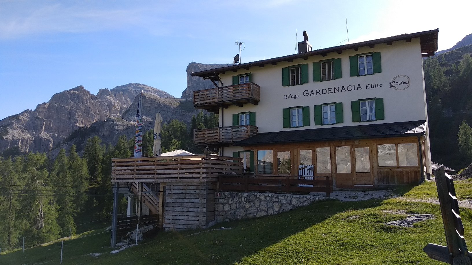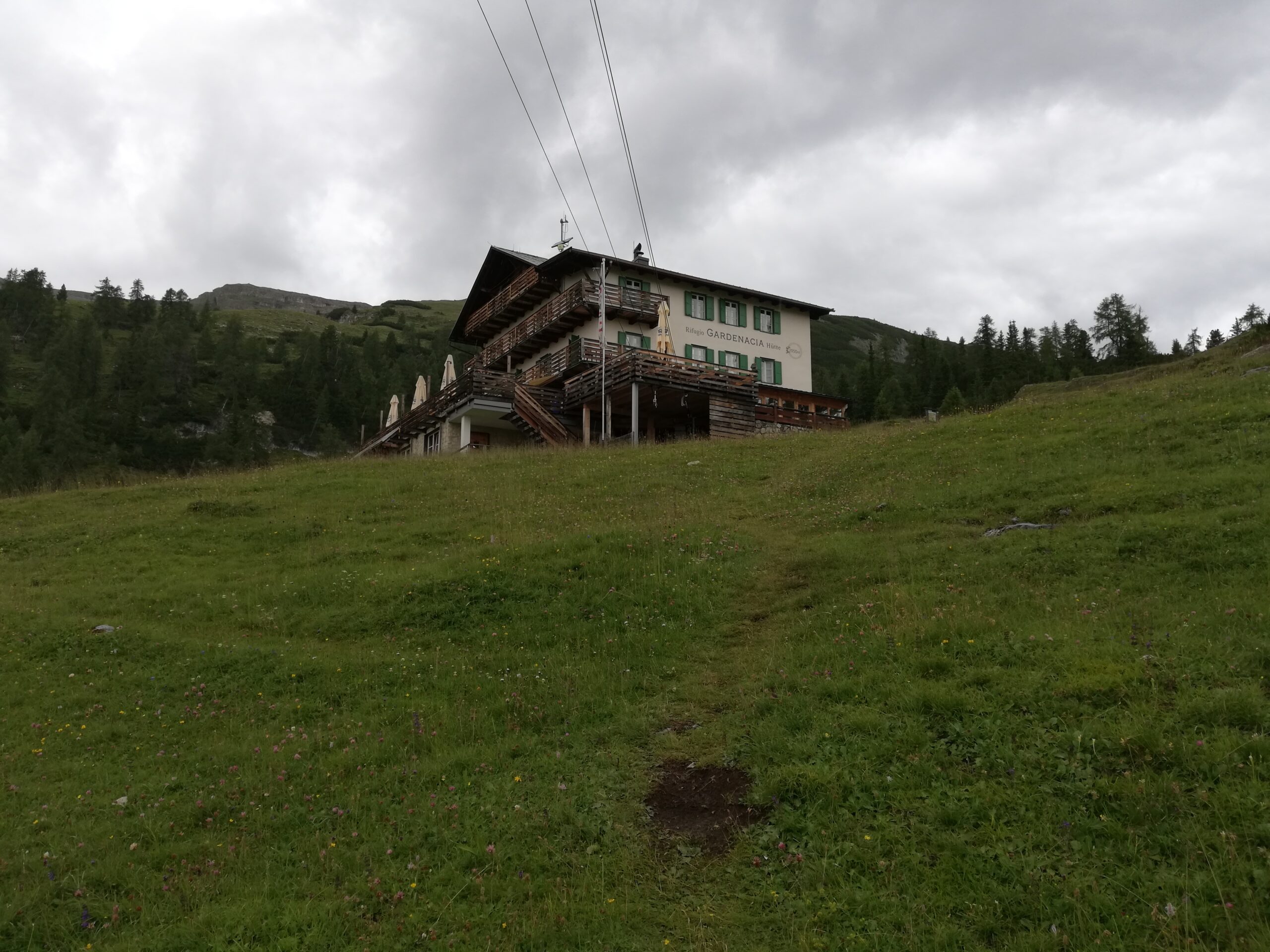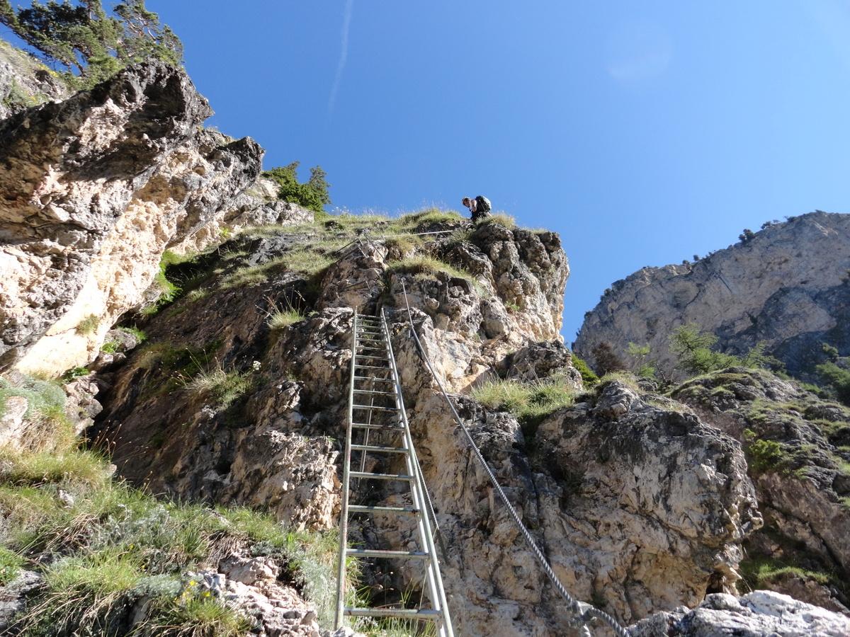 Roccia solida nella quale sono stati abbozzati (scavati) alcuni appoggi supplementari per i piedi. Si sale generalmente in traverso fino ad una zona verdeggiate su poca pendenza e priva di esposizione. Segue un ultimo risalto nuovamente più verticale e su roccia prima di raggiungere il sentiero a poca distanza dal rifugio Gardenaccia. La discesa avviene lungo il sentiero escursionistico del rifugio.