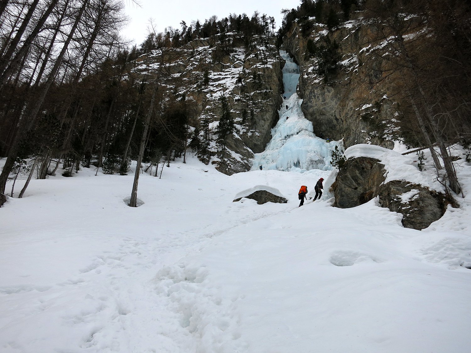 Dal Park degli impianti attraversare il torrente e seguire brevemente la pista da fondo verso monte fin sotto l'evidente colata.