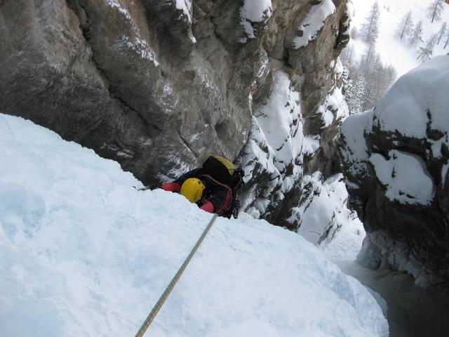 La cascata è solo da qualche giorno fattibile, presenta al 5 tiro ancora qualche buco dove scorre l’acqua. Nel complesso si sale bene su tutti i tiri. Oggi grande frequentazione, partiti da Torino abbiamo attaccato alle 11 ed eravamo penso la 7-8 cordata. Molto freddo in valle -13°, il freddo di questi giorni migliorerà sicuramente le condizioni. Le altre cascate sono tutte in condizione.