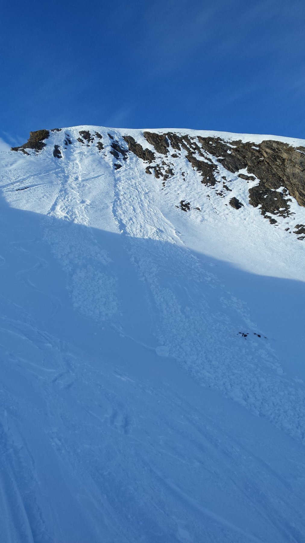 Il canale NE è stato sceso con gli sci e il canale sud ha tracce di salita a piedi.