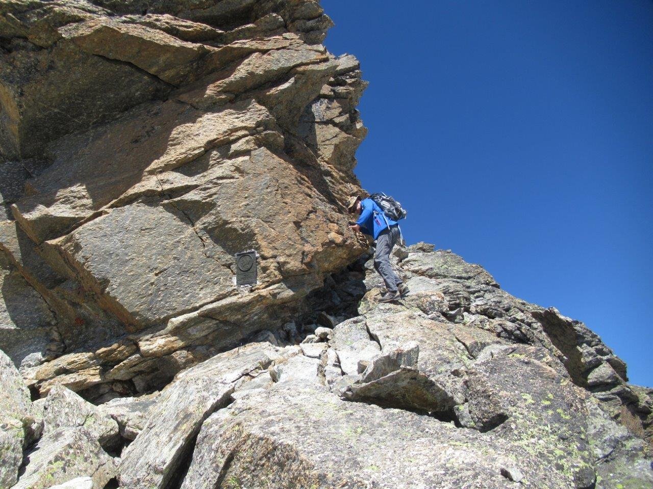 Qui è importante individuare lo speroncino roccioso con targa ricordo dedicata a S.Murialdo. Si tratta di un breve passaggio obbligato ed esposto per accedere alla parte superiore dell’itinerario.