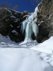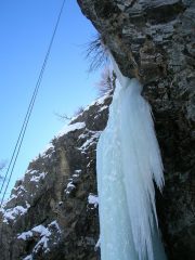 una puntata in valleille merita sempre ,con il socio di sempre x queste occasioni ,siam soli alle 7-15’del mattino al park.ci incamminiam e ribattiam la traccia che dapprima segue pista di fondo e poi il sentiero x il bivacco antoldi, con 10 cm di neve di tutta la sett.arriviam alla base della colata e con la sola compagnia degli stambecchi saliam questa cascata che ne e risultata di gran soddisfazione e impegno x tutta la salita ,direi che il ghiaccio era buono ma duro e poi le vecchie scalinature oramai ricoperte davano piu verginita alla salita . la candela sara pure il tiro piu bello ma sempre molto impegnativo , nota e moltooo a (piombo) la prima doppia di fianco la candela .sulle altre linee cera gente che e arrivata piu tardi probabilmente quelli di una 2 giorni di ghiaccio,5 auto francesi, 1 GB,1 italiana,
