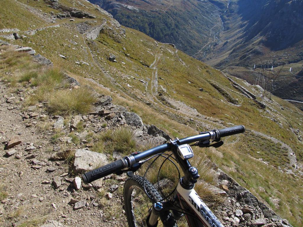Un lungo mezzacosta porta alla base di un costone erboso, che si risale con innumerevoli serpentine quasi totalmente pedalabili, unica difficoltà i tornanti molto stretti che talvolta obbligano ad appoggiare il piede a terra.