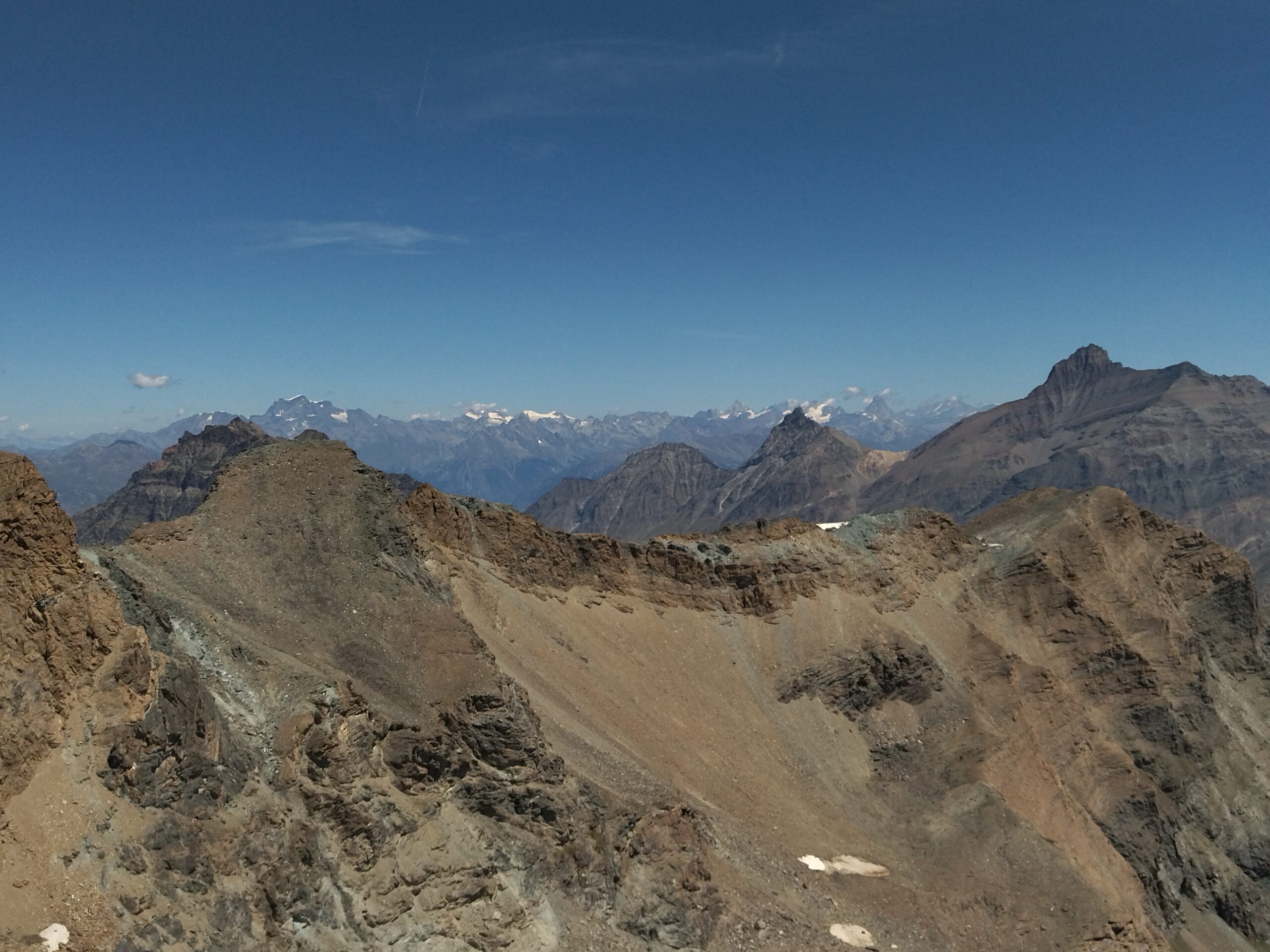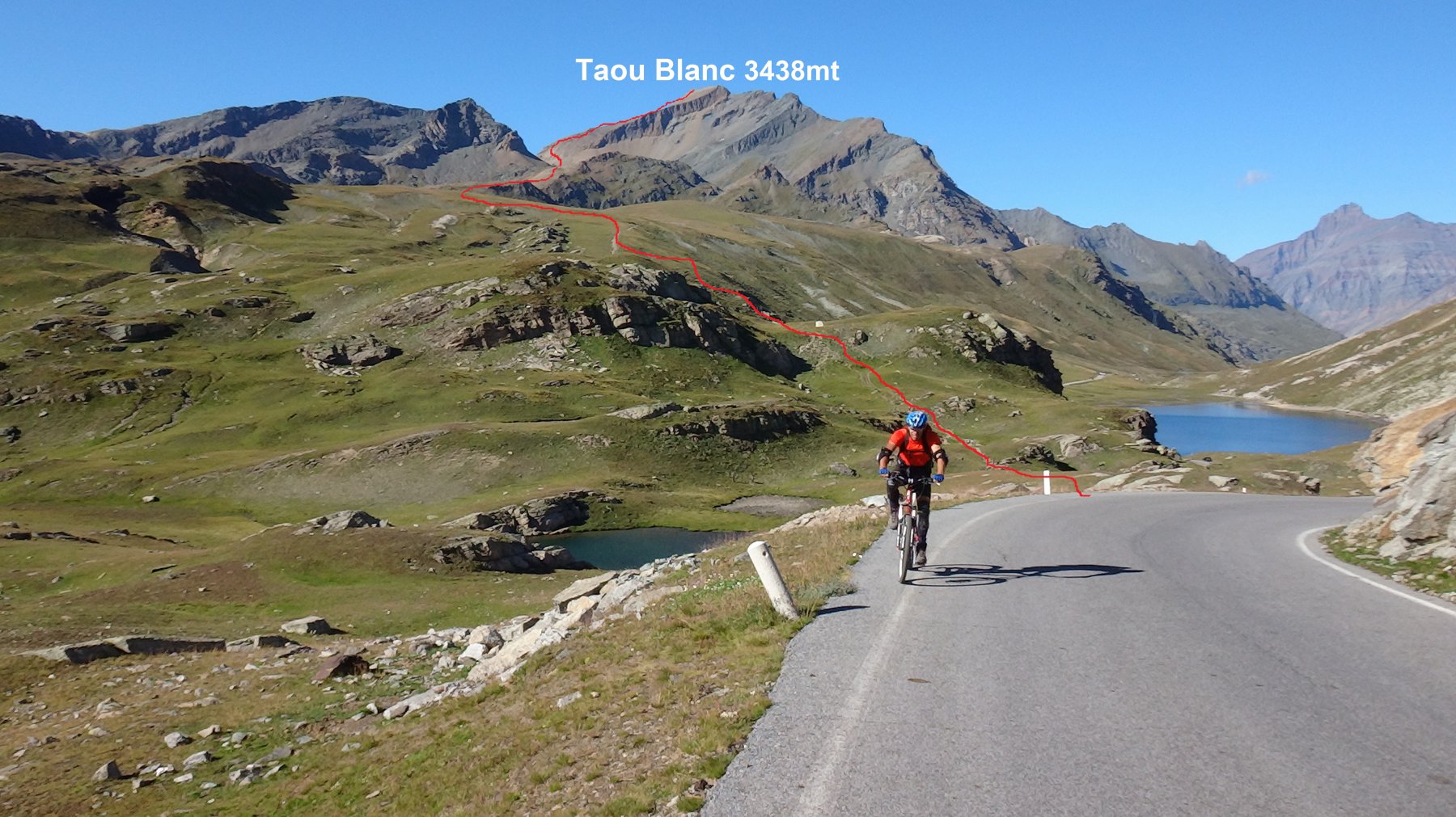 Ora per chi volesse proseguire fino alla Cima del Taou Blanc 3438 , sarà tutto portage fino in vetta con brevi tratti a spalla; poco oltre il colle si supera un diedro/canale di circa 20 m (I°) che ci porta ai pendii finali dapprima dolci e poi via via sempre più ripidi. Una facile arrampicata finale permette di guadagnare la cima.
