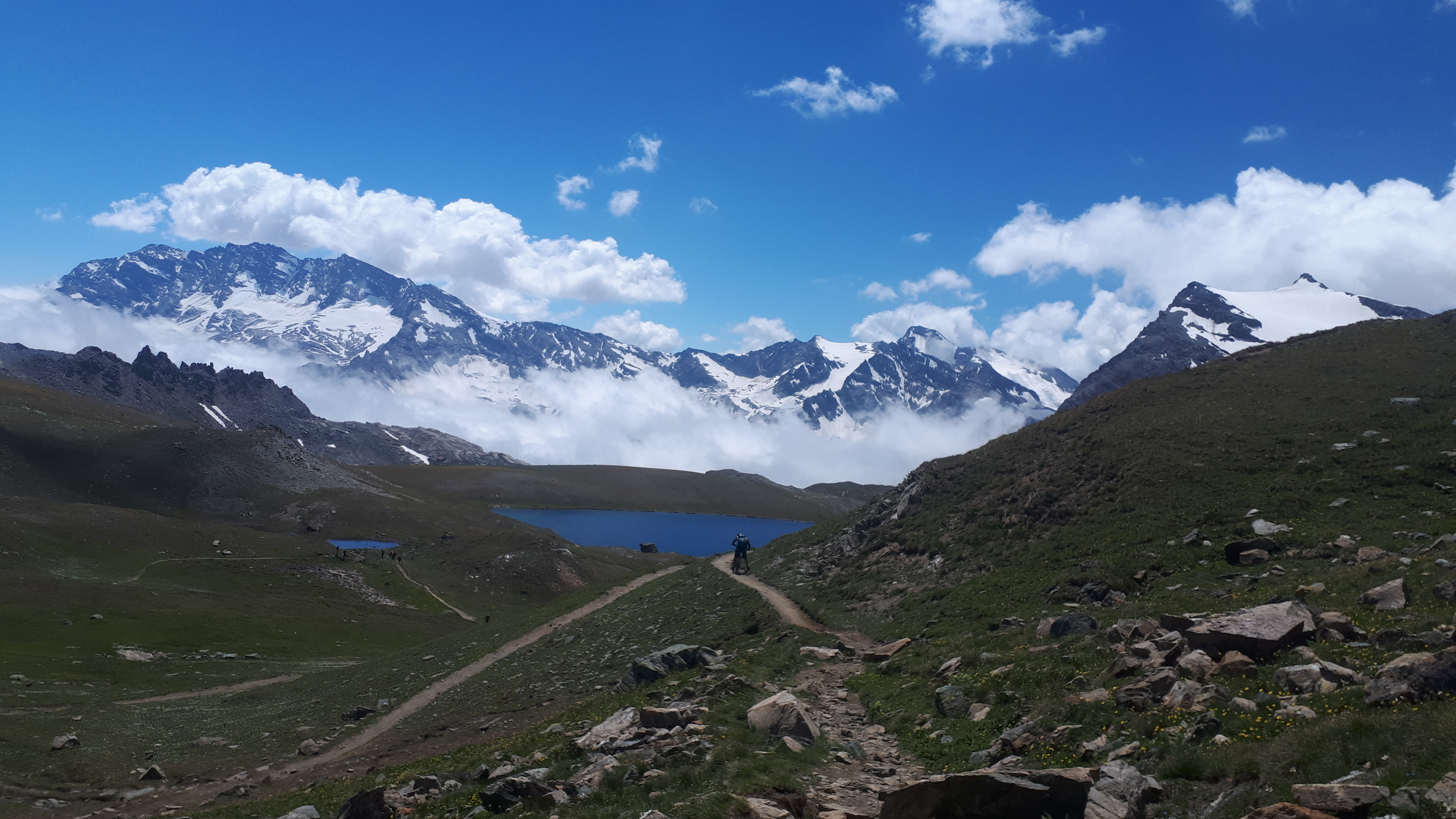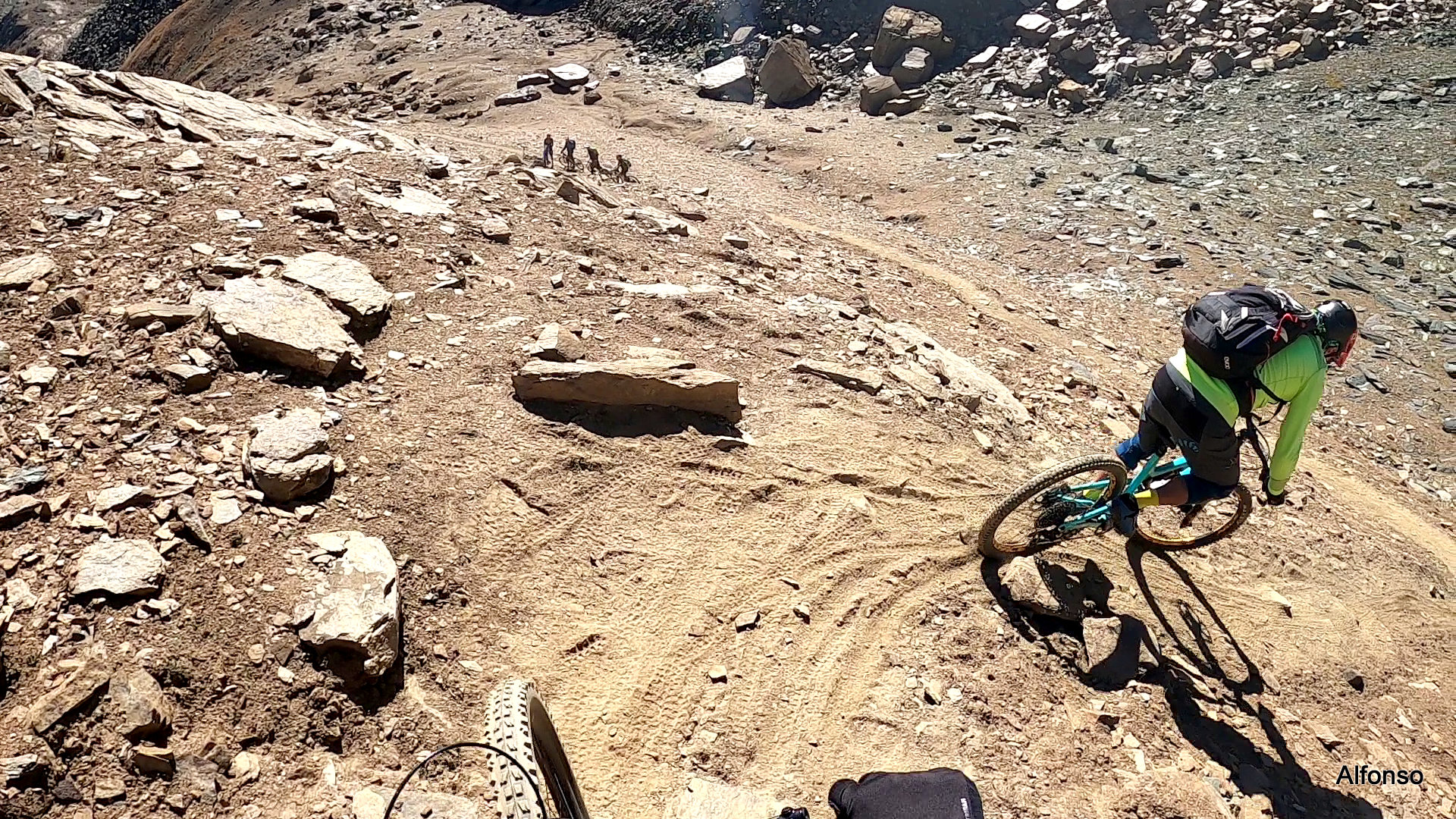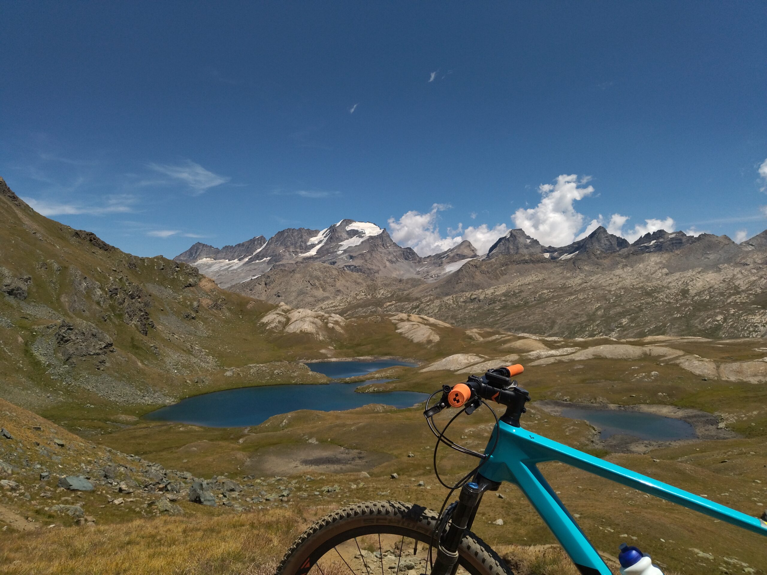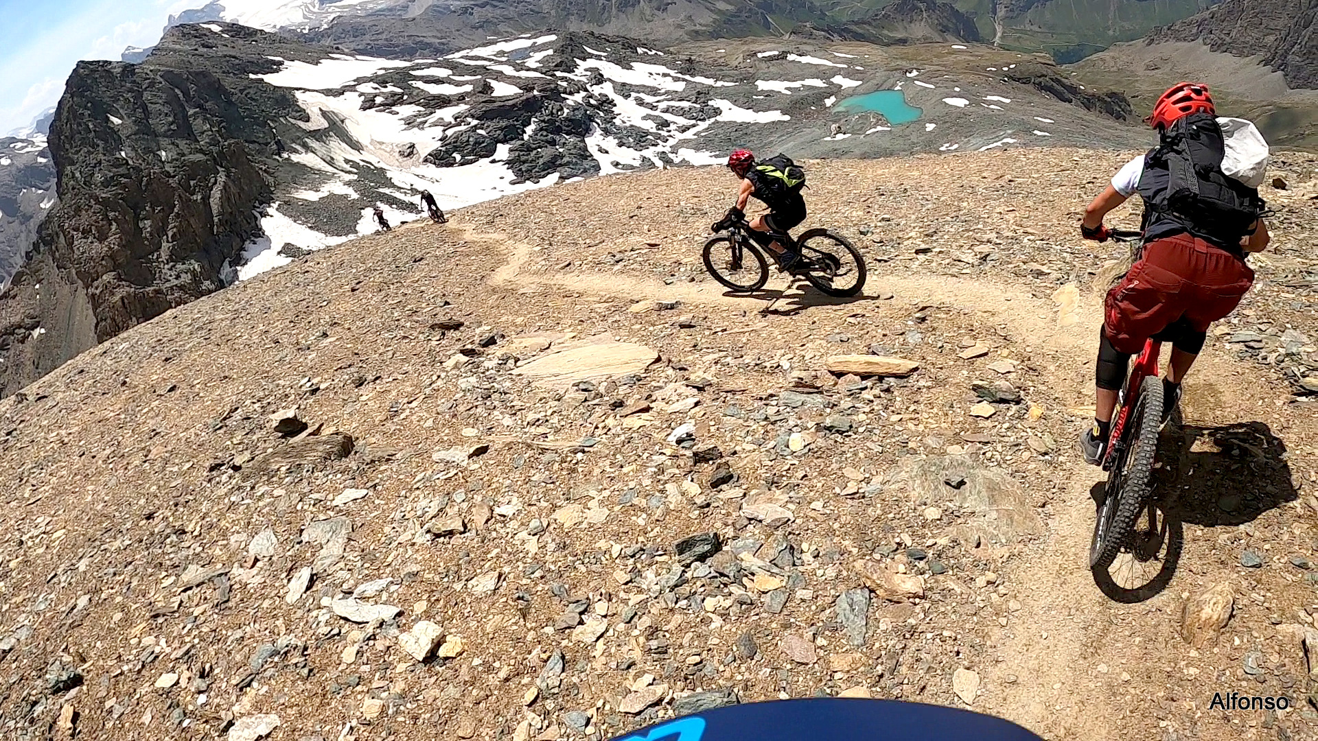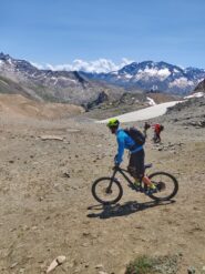 Si ritorna ai Piani del Nivolet lungo il percorso di salita, il sentiero è ciclabile al 95%, solo un tratto piuttosto ripido sotto il colle richiede molta attenzione (e una full) per il resto si tratta di una discesa molto dolce e panoramica, molto divertenti gli stretti tornantini. Di tanto in tanto brevi passaggi sono da fare a piedi a causa di qualche pietra di troppo, ma è davvero poca cosa. Ai Piani del Nivolet breve risalita per il colle, dal quale se si è stanchi conviene tornare giù su asfalto fino a Ceresole.