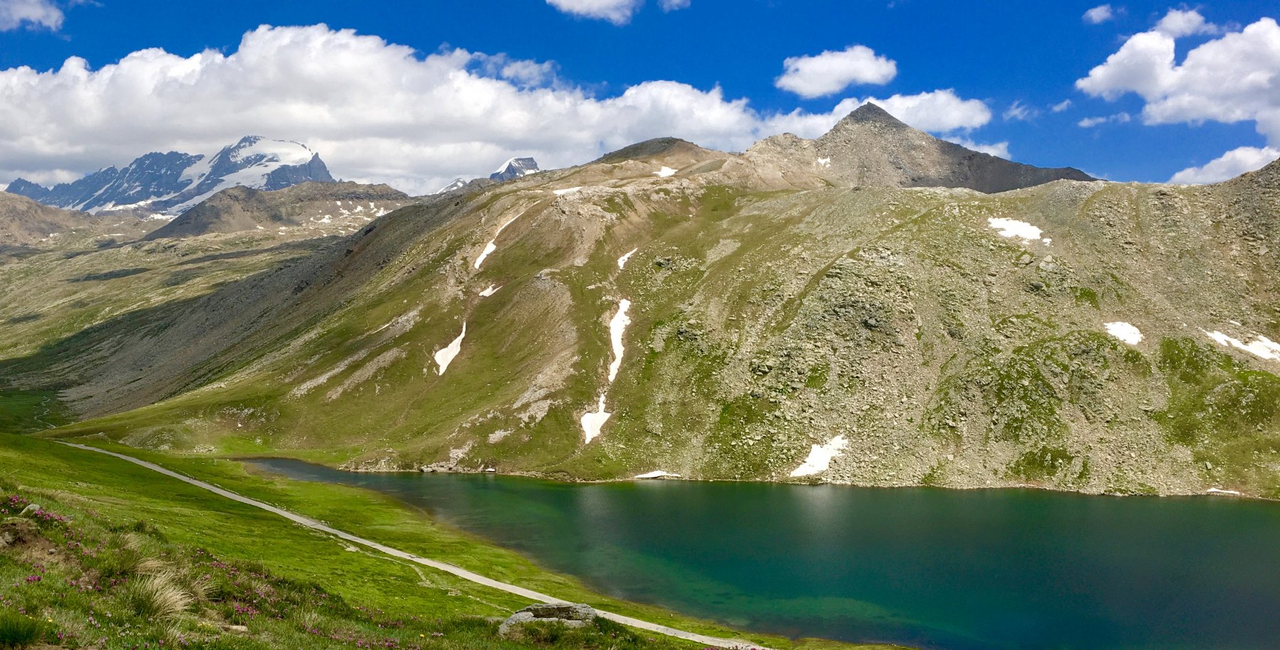 Si arriva poi nei pressi del lago Rosset con ampia vista a 360 gradi e siamo a 2700 m circa, si continua a seguire il sentiero principale fin sotto ad una bastionata detritica.