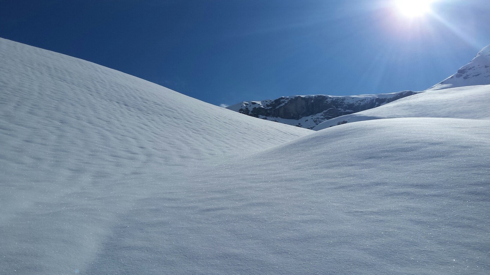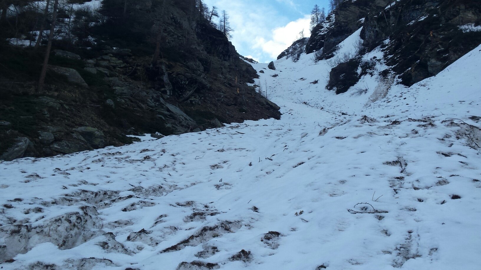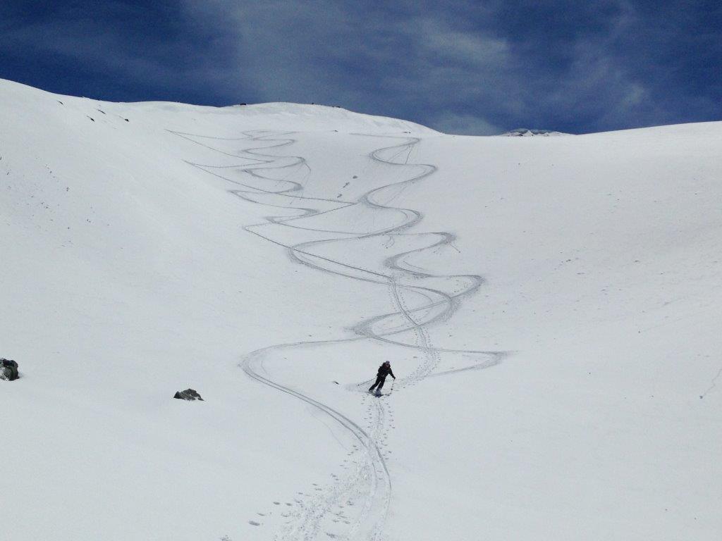 I primi 300 m del vallone Leynir devono essere percorsi con neve assolutamente assestata e con la dovuta cautela.
