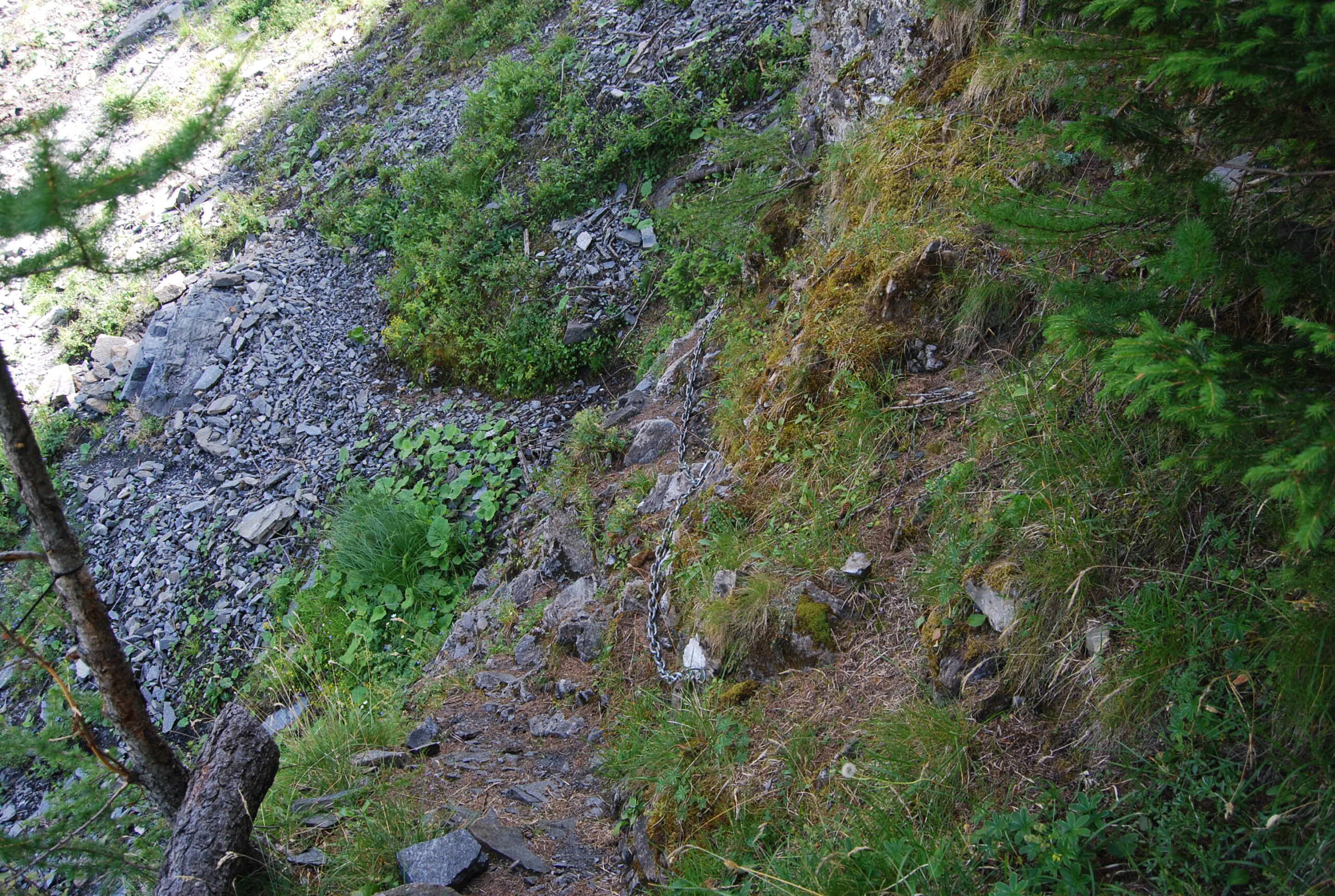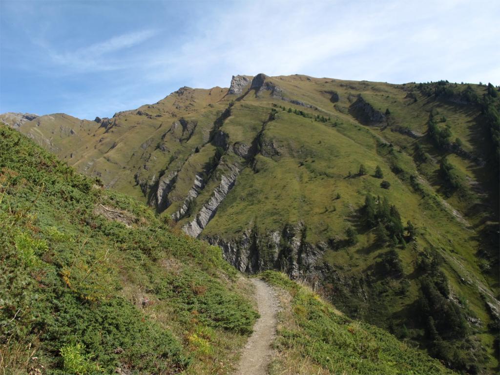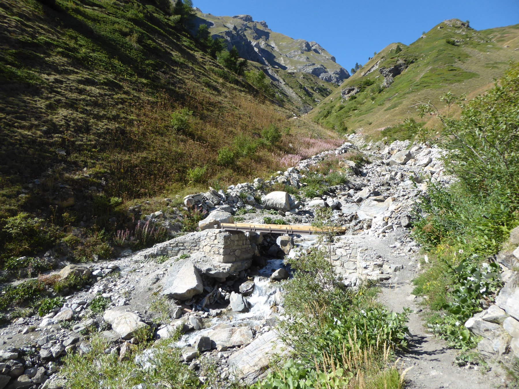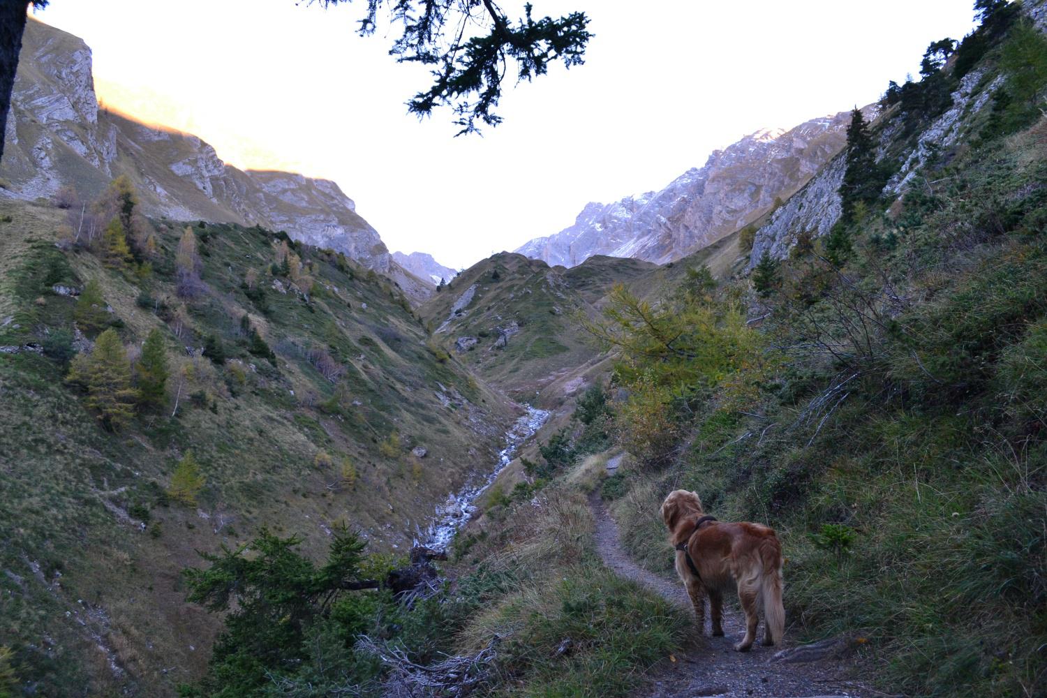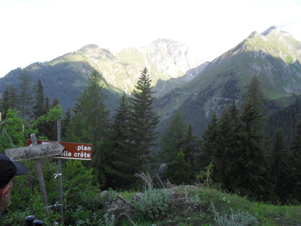 Da Morge 1625 m, si continua sulla strada per Planaval ma poco dopo la prima svolta sopra il paese la si abbandona per seguire la mulattiera che si diparte a sinistra. Oltre una cappellina, m. 1694, si valica un dosso e si scende a destra per una bella stradicciola ad attraversare su un ponte il torrente Planaval. Per un tratto su buona mulattiera pianeggiante si tagliano a mezza costa boschi di conifere.