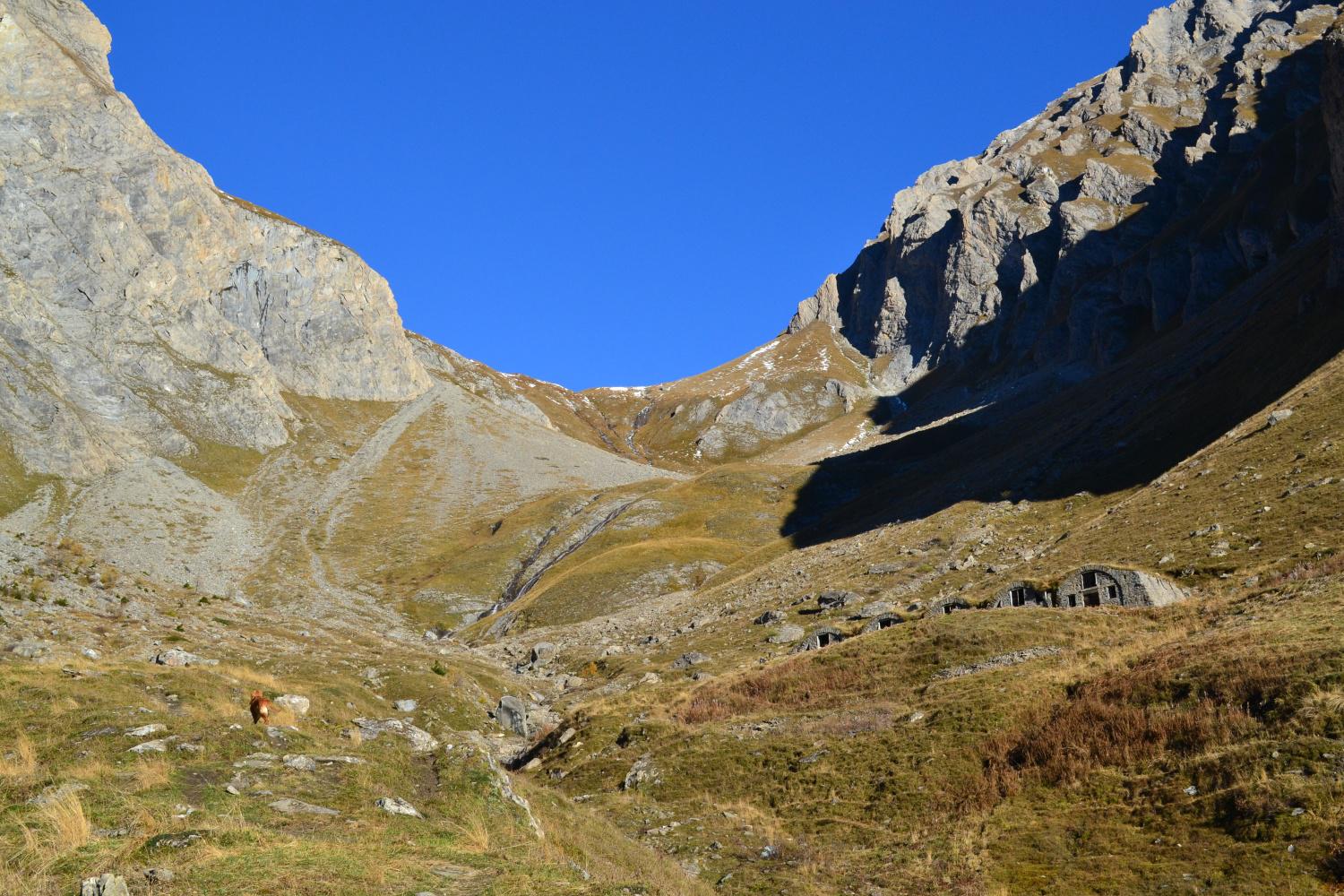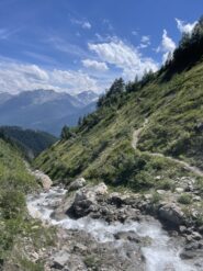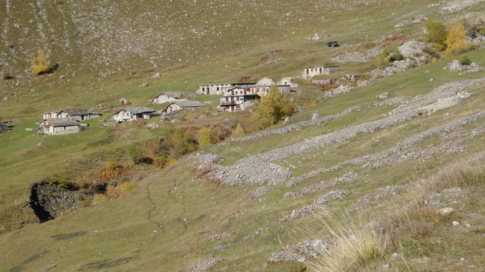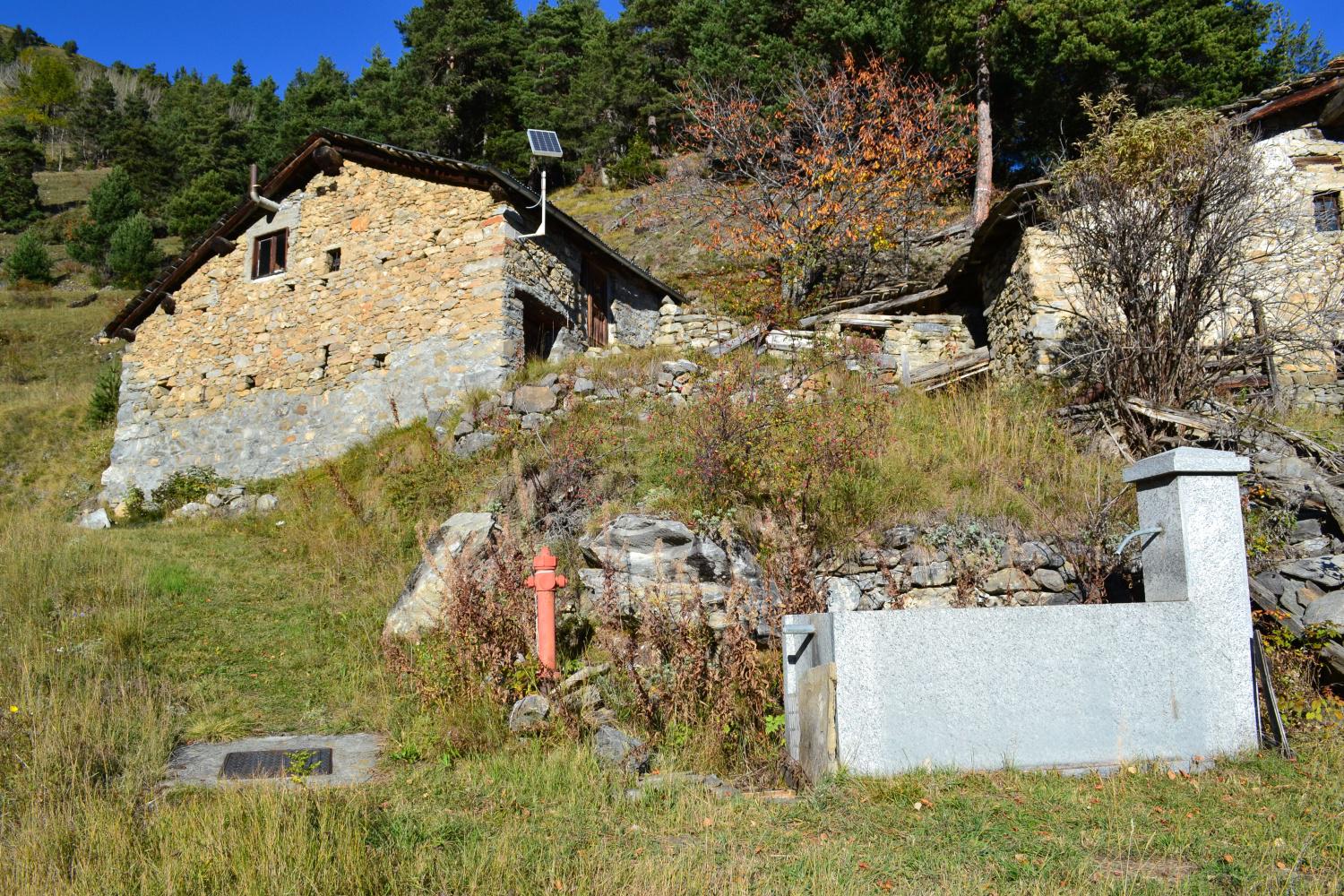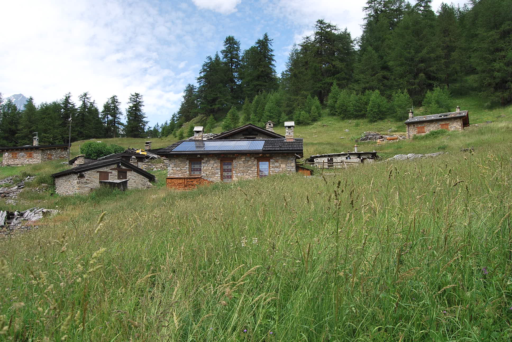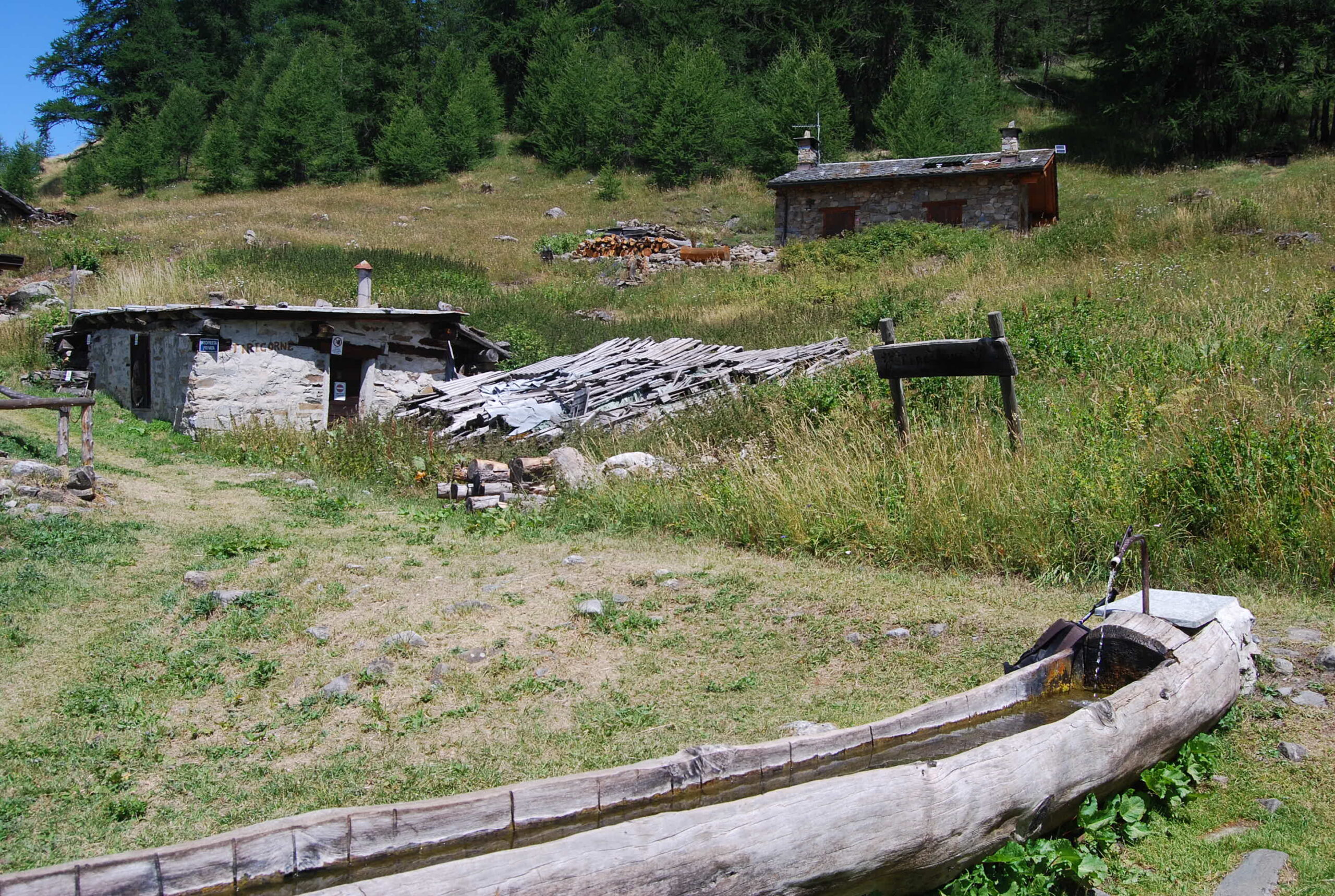 La mulattiera si trasforma in sentiero che sale addentrandosi nella Comba di Chambave fino all’alpeggio Capanna Chambave, 1880 m sulla riva destra (idr) del torrente.
