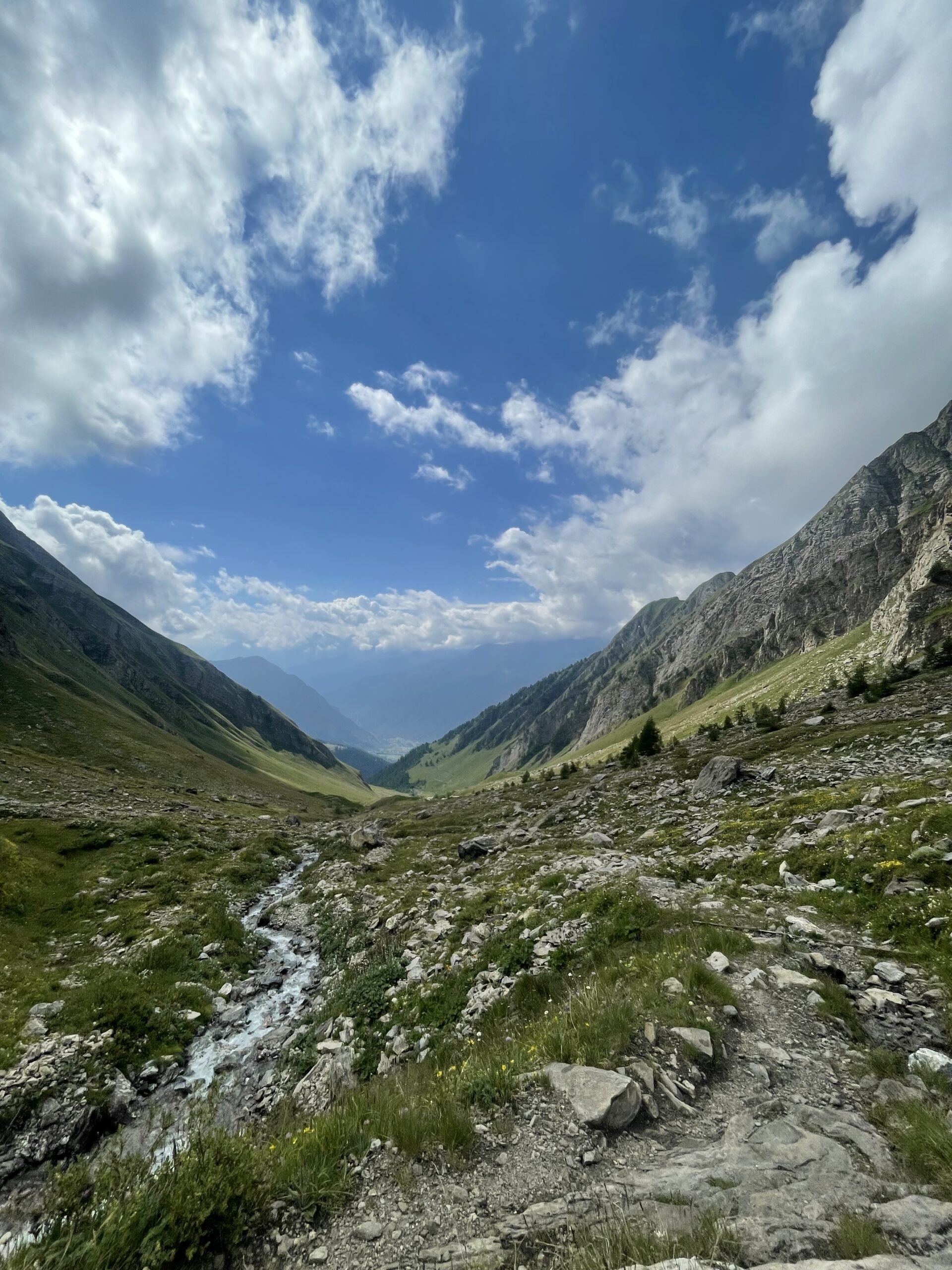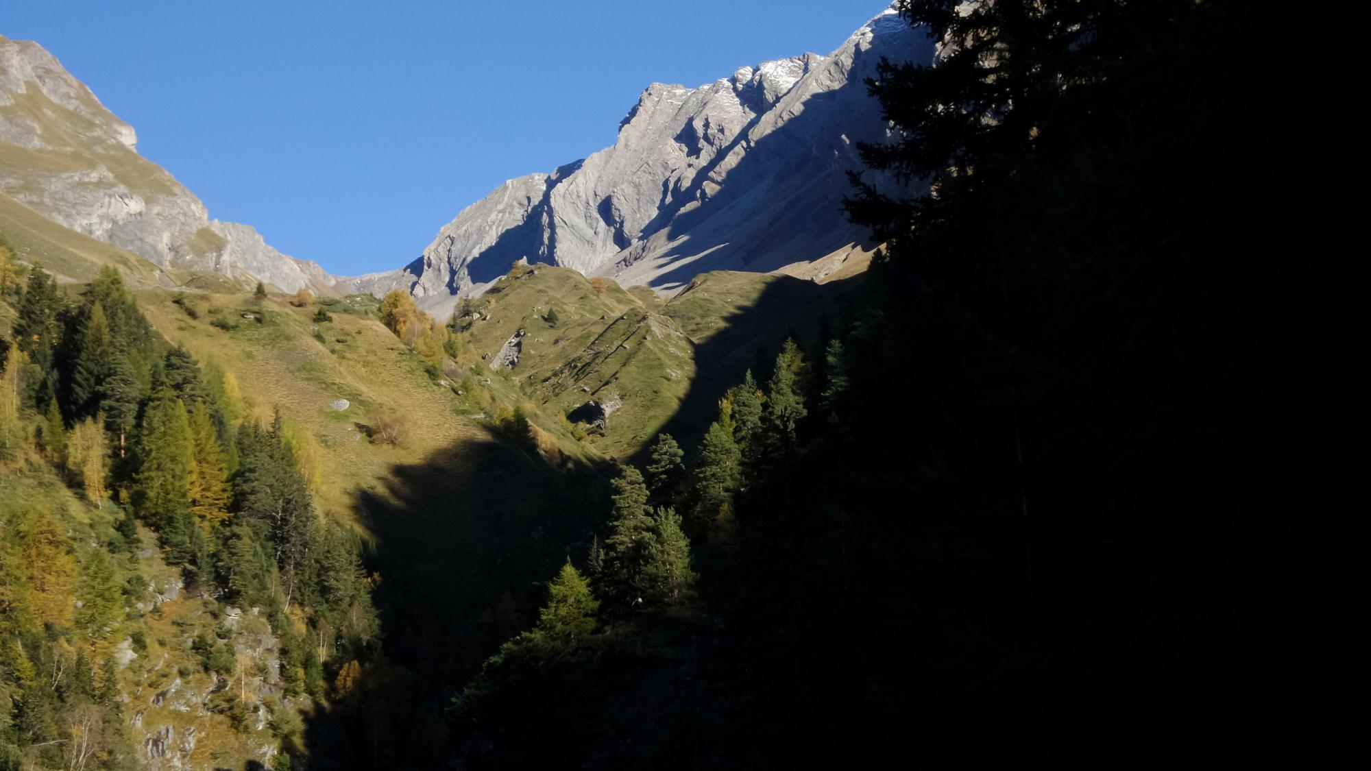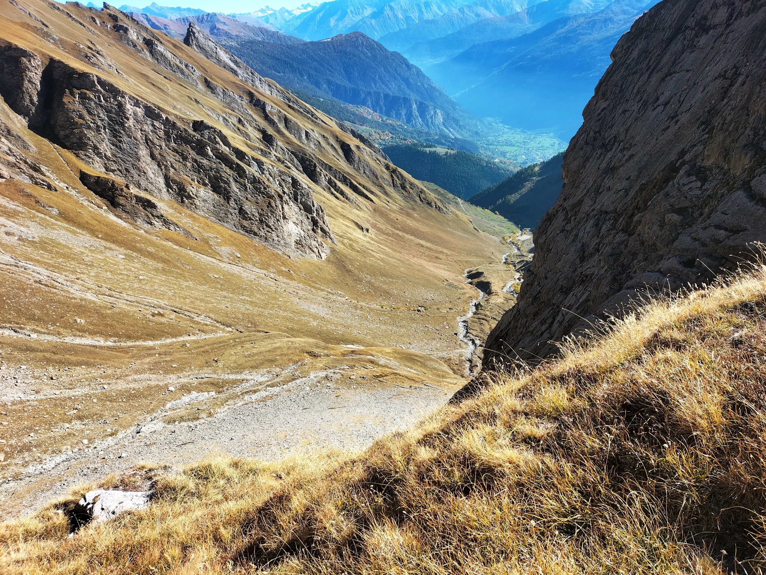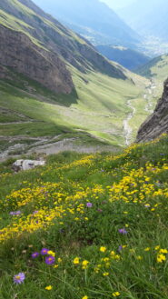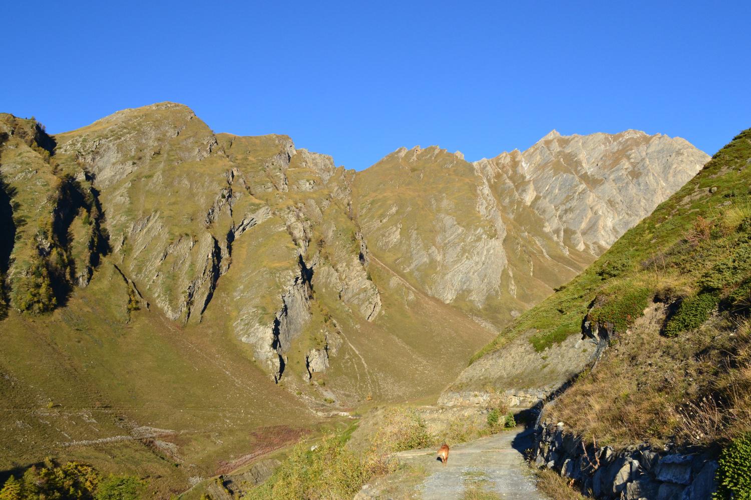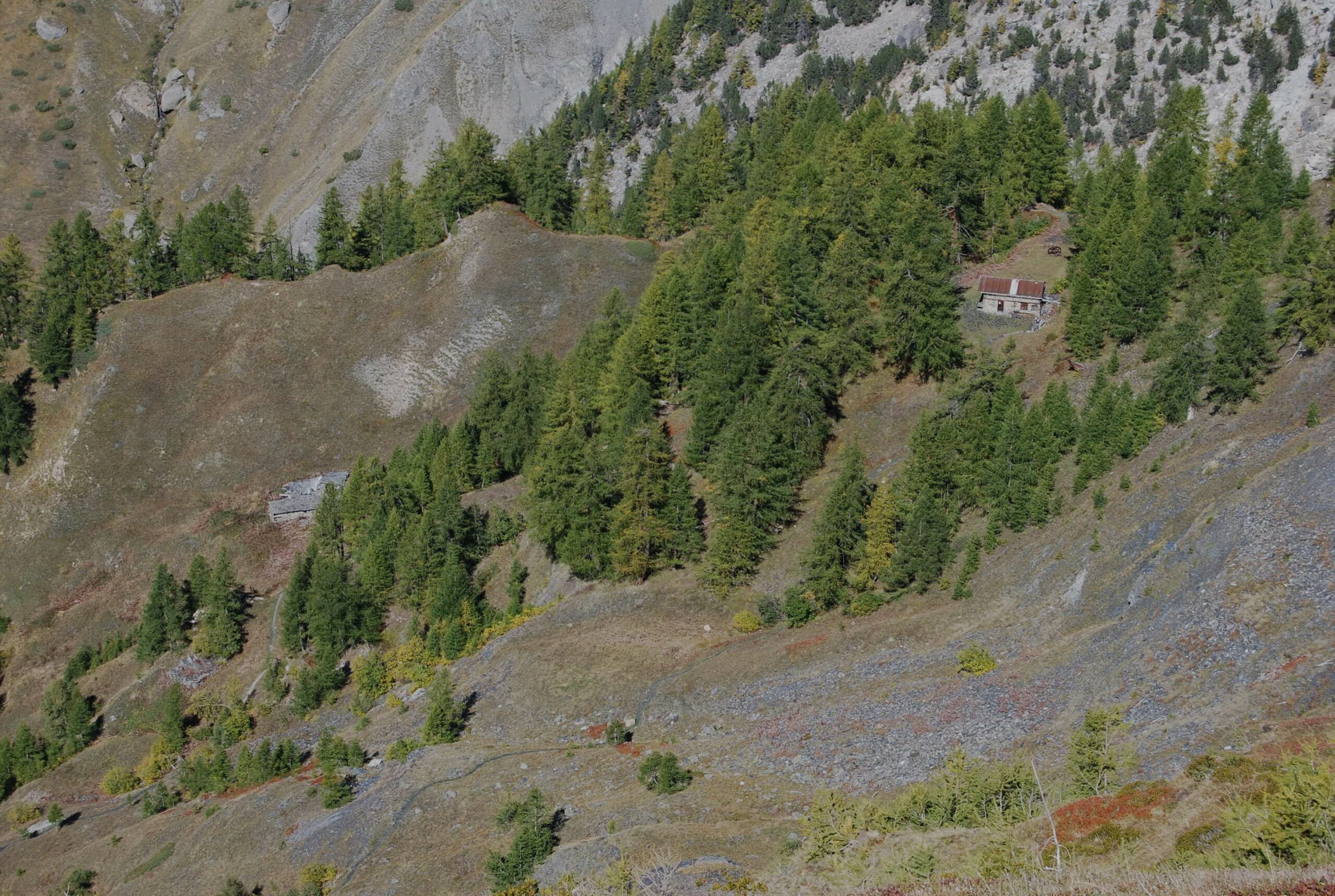 La mulattiera si trasforma in sentiero che sale addentrandosi nella Comba di Chambave fino all’alpeggio Capanna Chambave, 1880 m sulla riva destra (idr) del torrente.