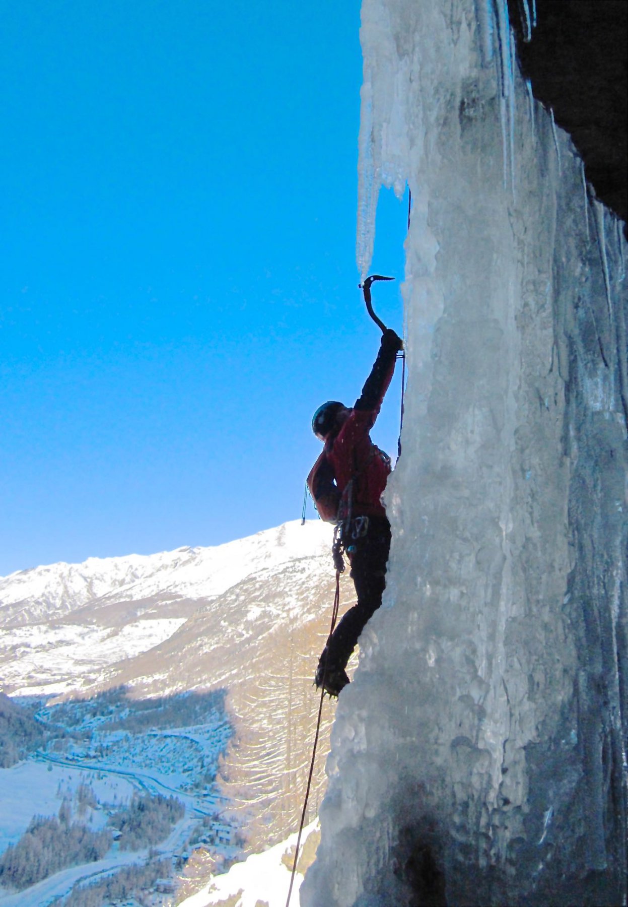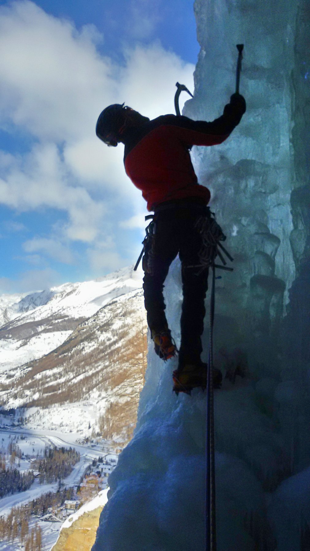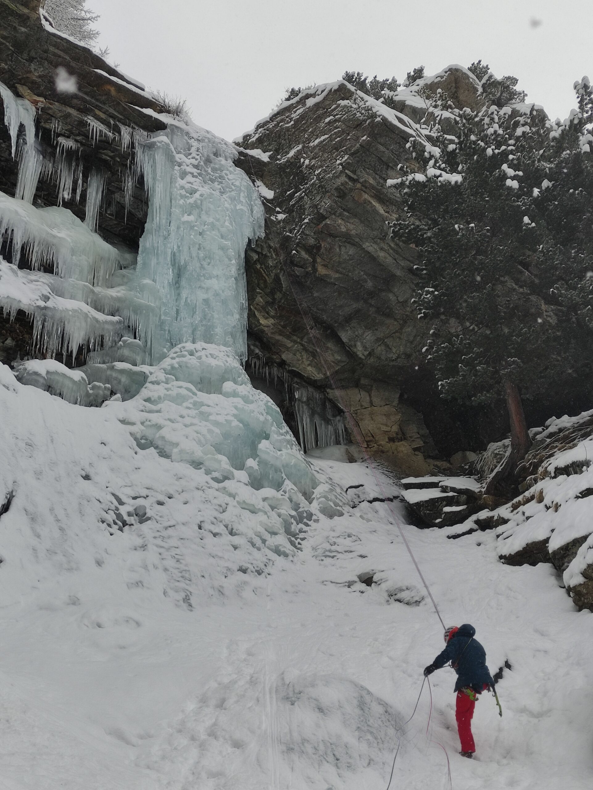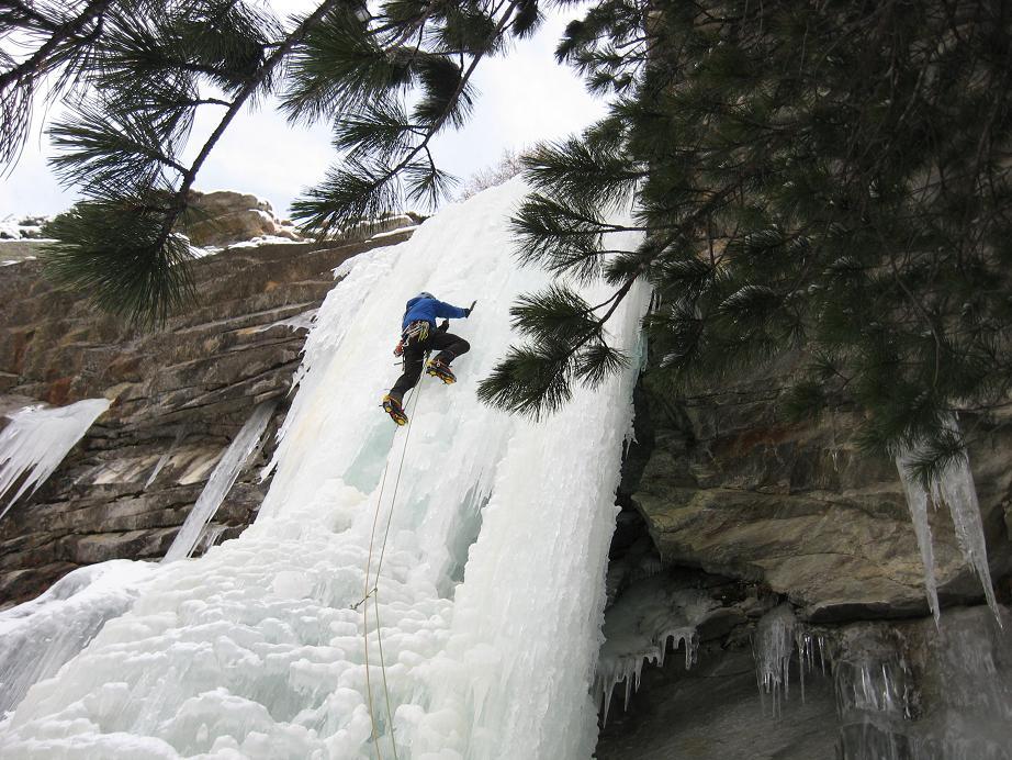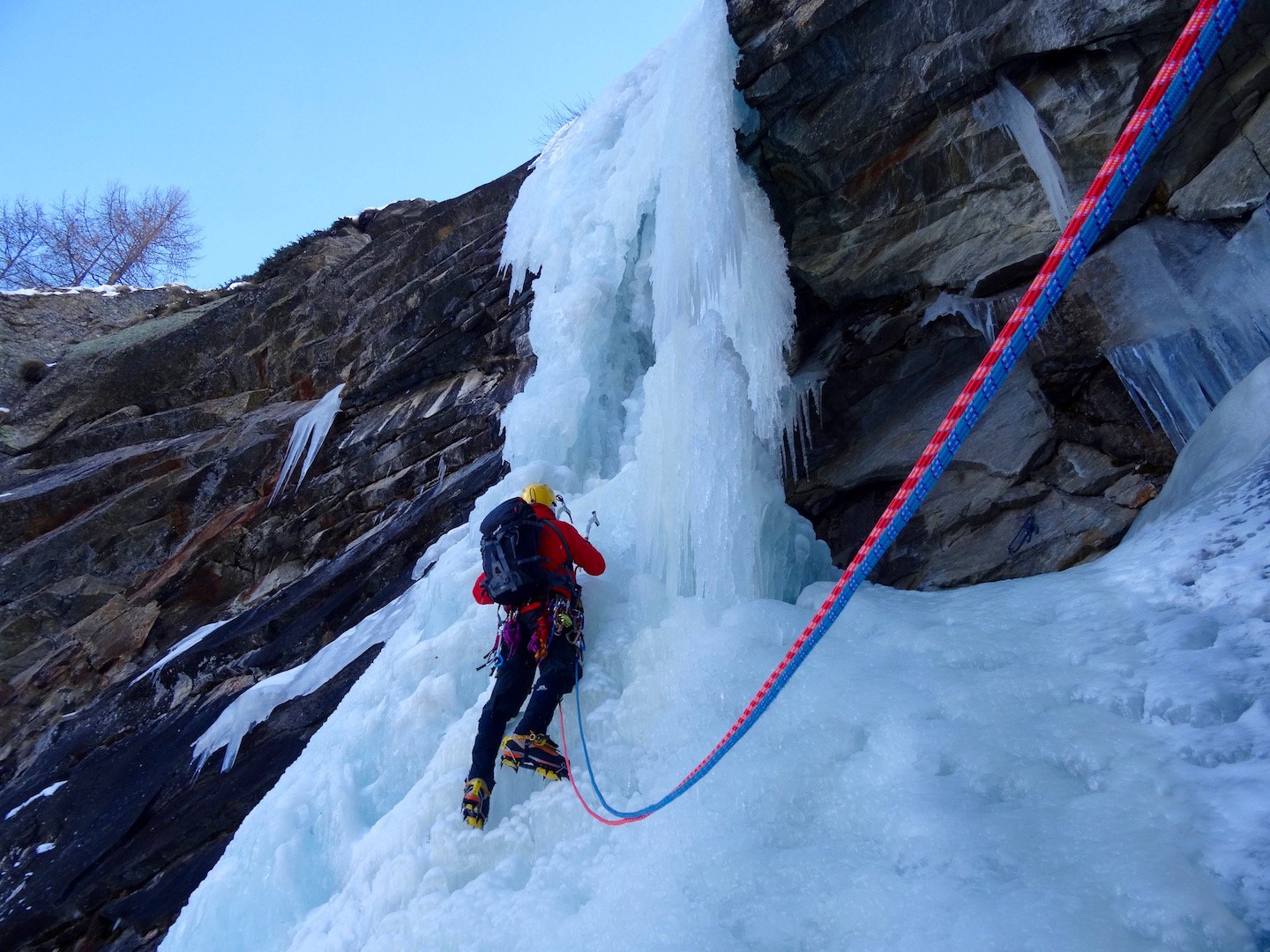 uscire dalla nicchia e attaccare il muro-candela nel centro per circa 10m e andare a sostare a sn su fix appena entrati nel canale finale (85° con brevissimo tratto a 90°)
