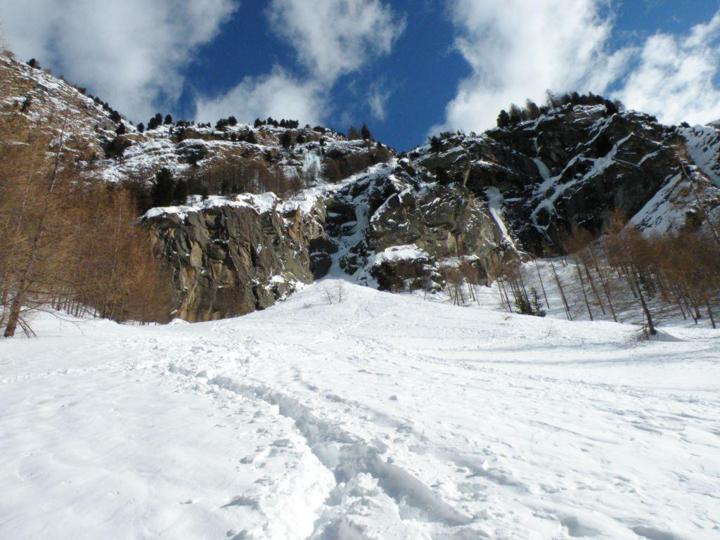 discesa:tagliare a sn (faccia a monte) e poi scendere facilmente nel canale nevoso fino alla base