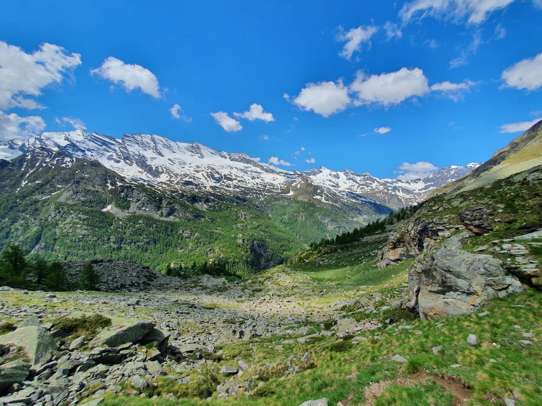 Il sentiero è ben segnalato, bisogna solo fare un po’ di attenzione alle due deviazioni nei tornanti dopo il primo pianoro fuori dal bosco (dopo aver superato Alpe Pisson, quota 2000-2200m circa) che proseguono verso Est in direzione Ceresole.