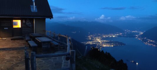Dal parcheggio si sale per comodo e ben tracciato sentiero. Primo punto acqua una fontana 50m sotto la capanna al legn, poi alla capanna stessa. Dal parcheggio alla capanna 1h45′. Proseguito poi fino al Gridone per sentiero sempre ben segnalato fino alla bocchetta. Qualche saliscendi passando dal pluviometro, poi 70 metri circa di ripido fino alla croce (3h10′ dal parcheggio). Scendendo ci siamo fermati a dormire alla capanna: panorama stupendo sul lago maggiore e sul golfo di Locarno