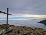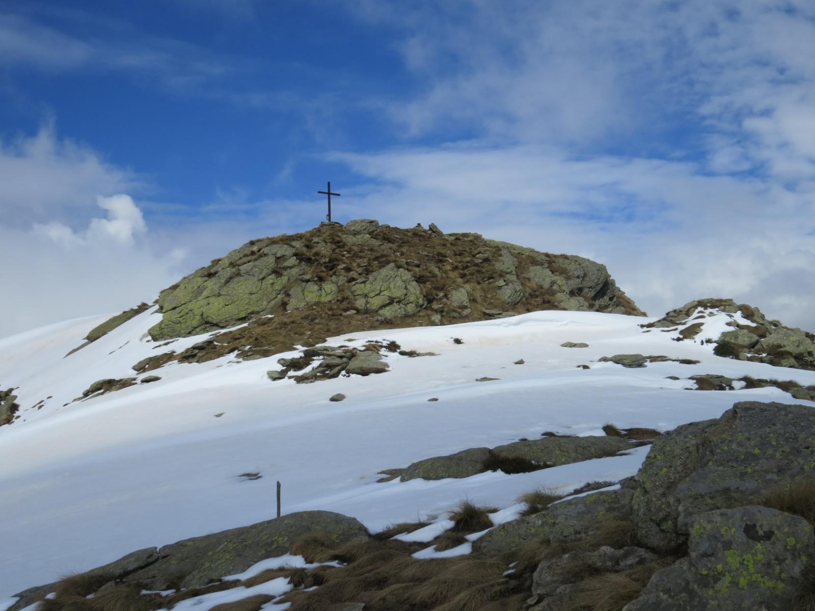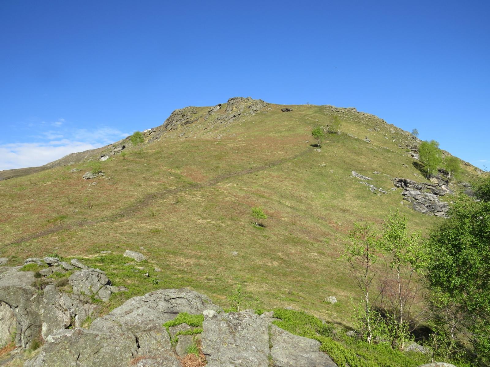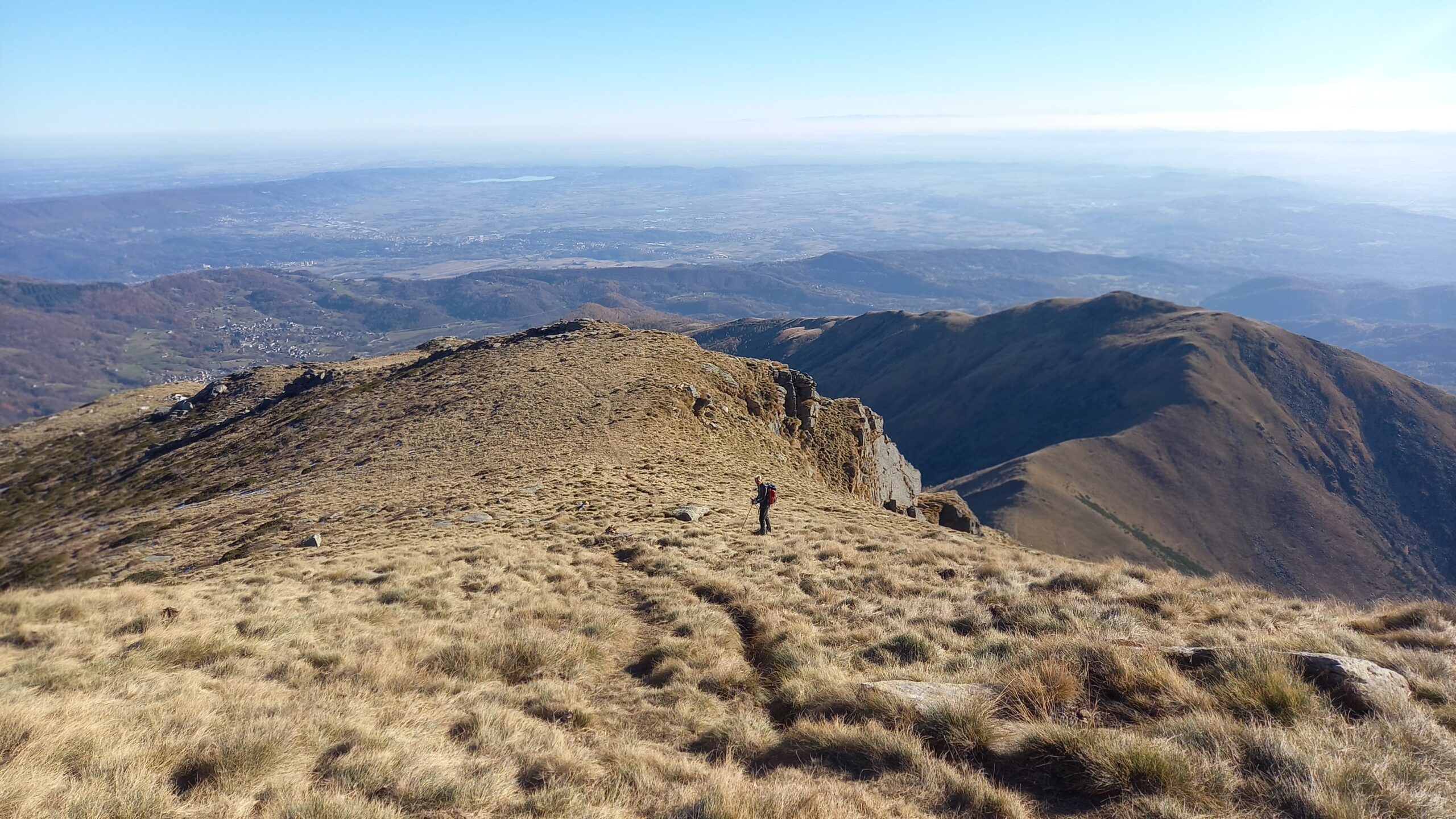 Svoltare ora a destra ed iniziare a salire sempre più ripidamente su buona traccia, segnata con bolli di vernice gialla e paline in legno con traversina a freccia di colore rosso, fino a raggiungere la dorsale del crestone est del Monte Lion. Seguire sempre il sentiero che con percorso sempre su dorsale, aggirando qualche asperità, giunge in vetta al Monte Lion.