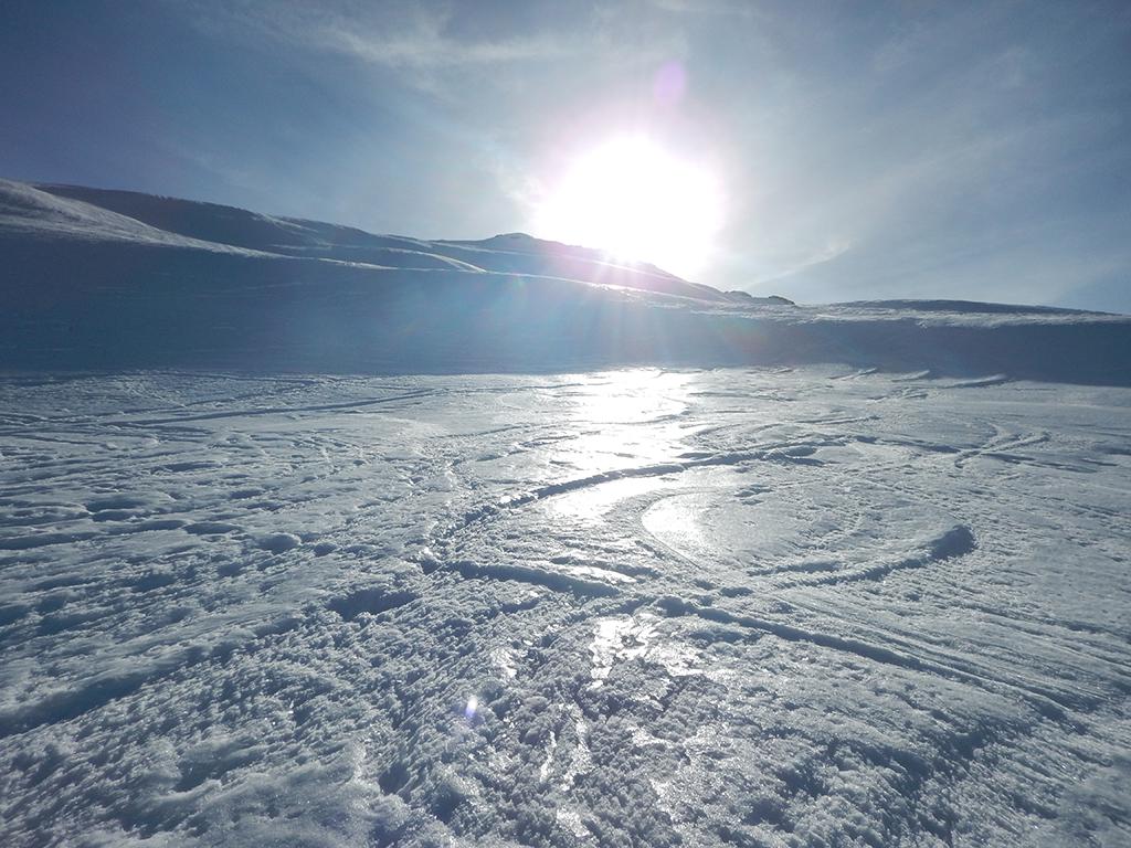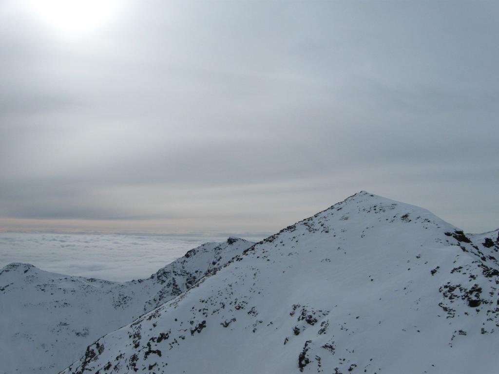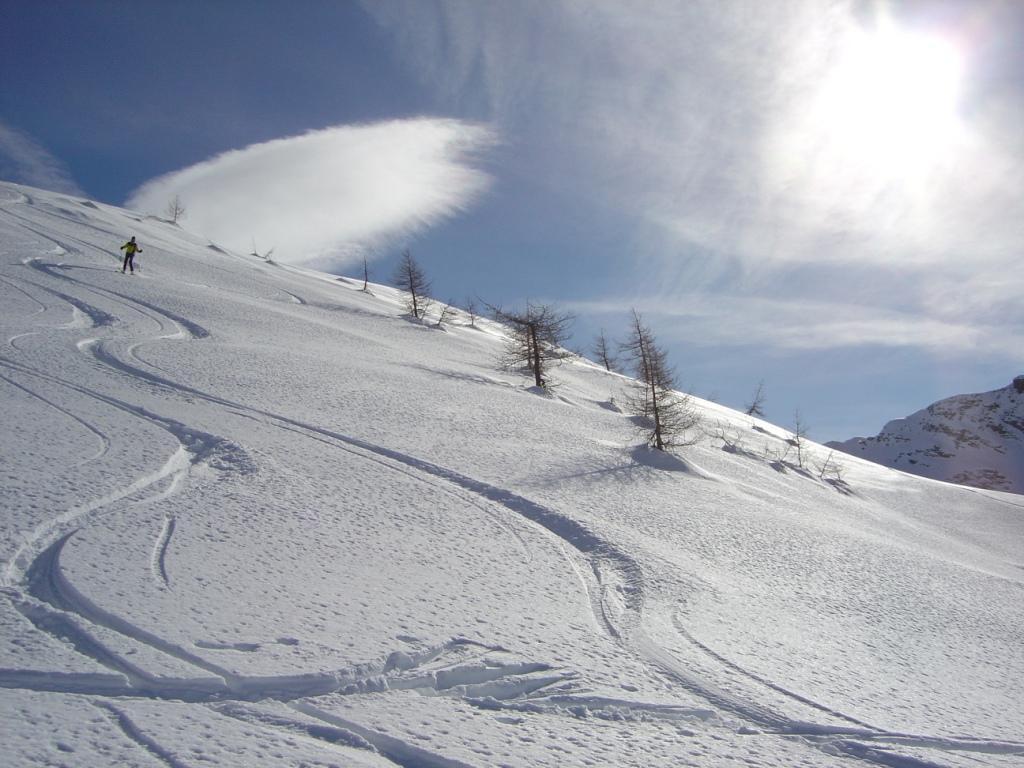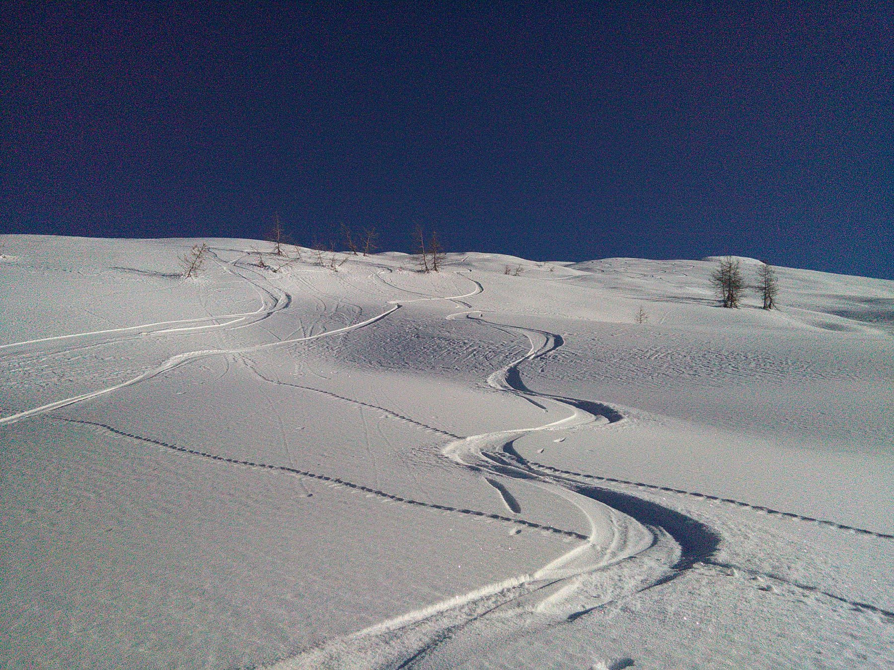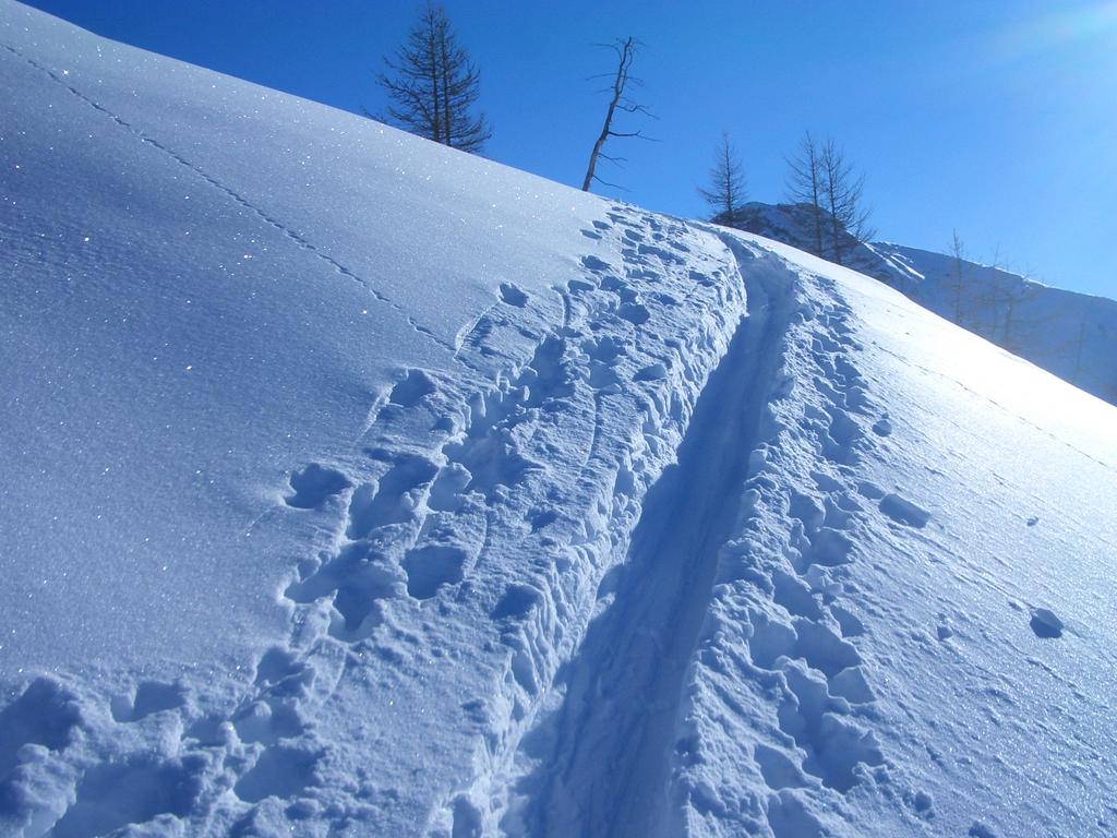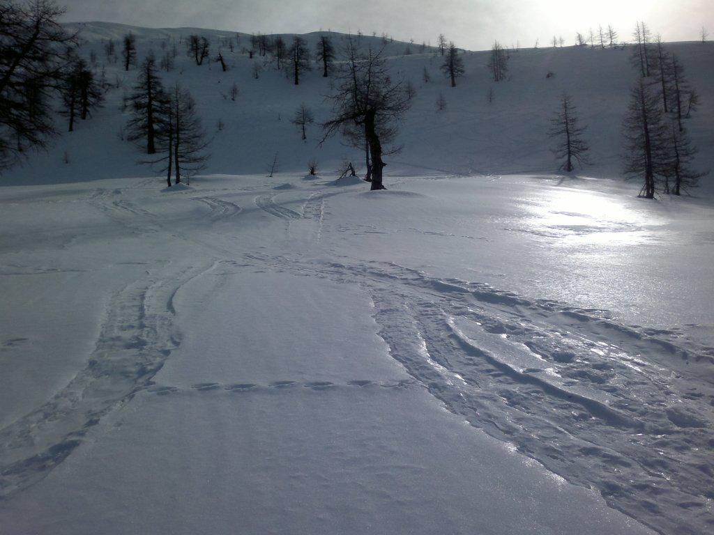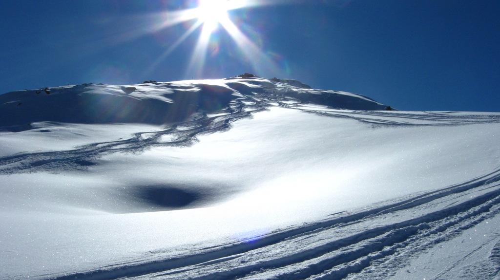 Qui svoltare a dx e continuare a salire per bei terreni verso SE, fino sotto la verticale della vetta. Per più ripidi pendii e qualche roccetta in breve alla sommità.