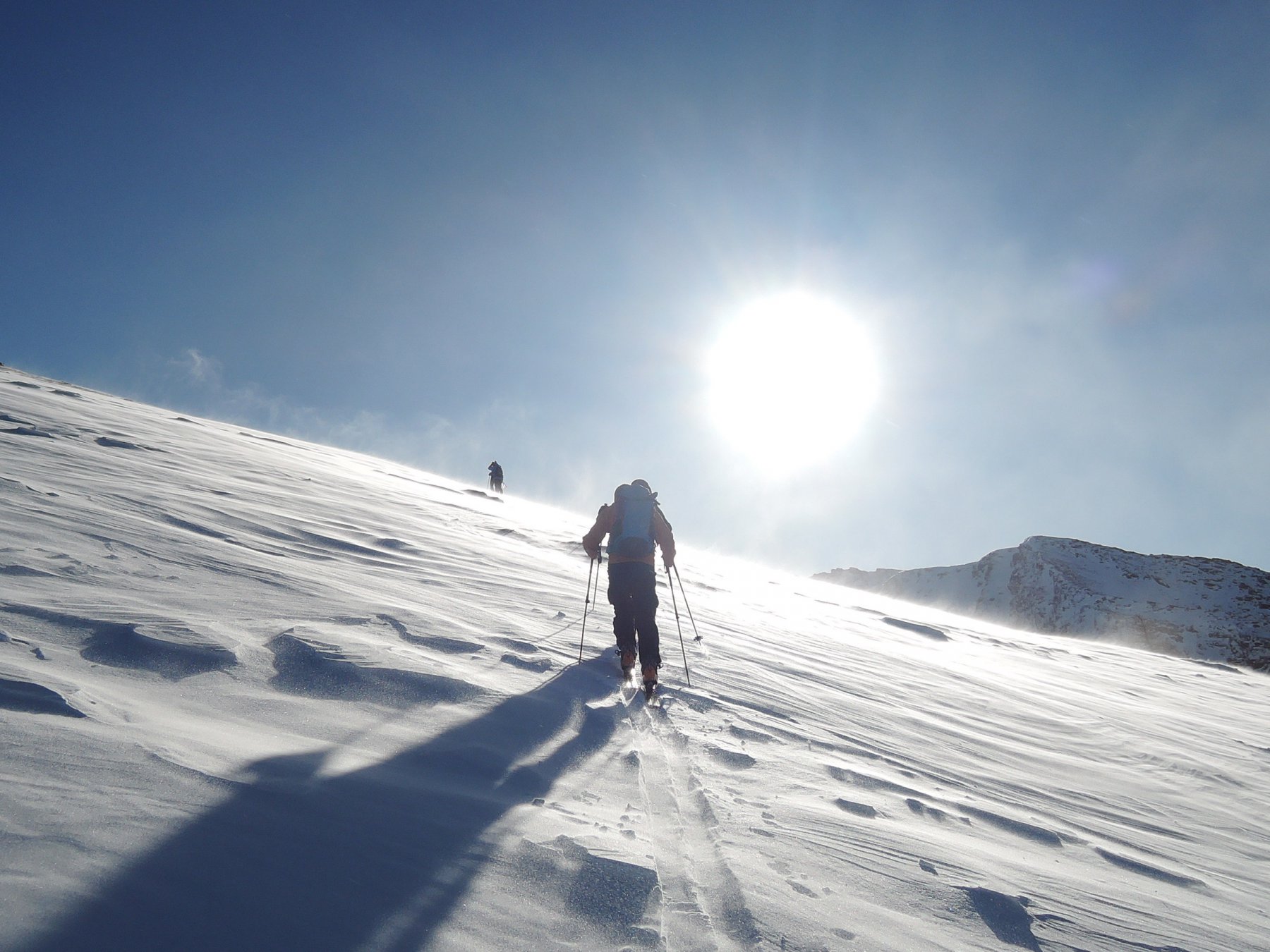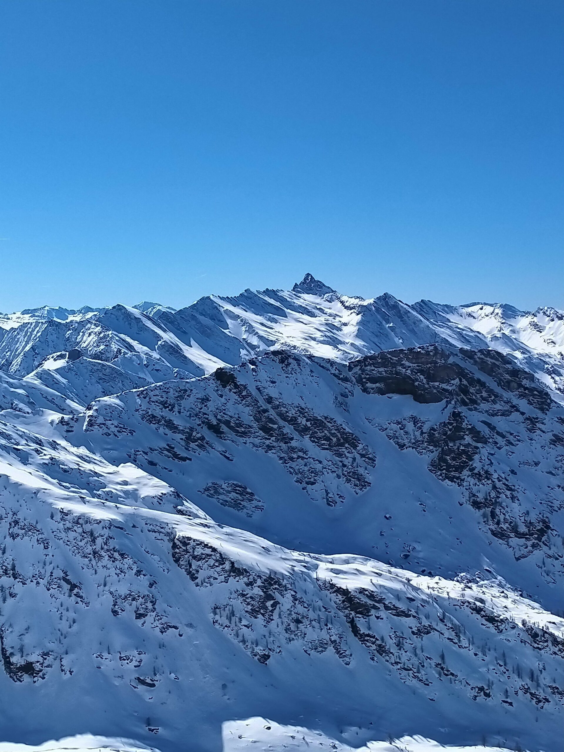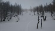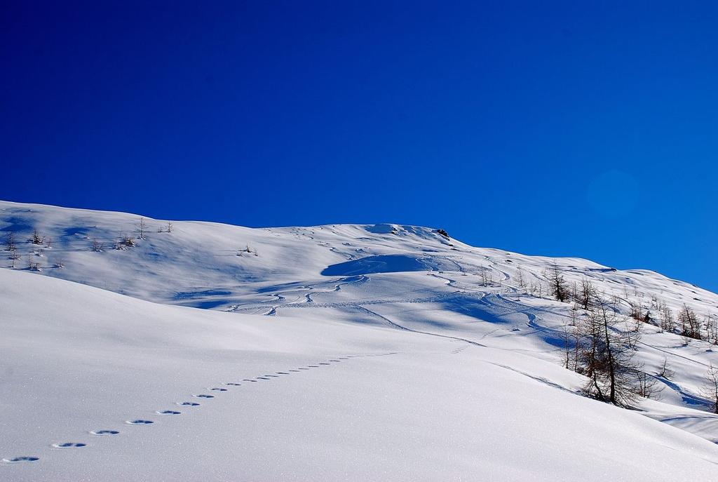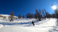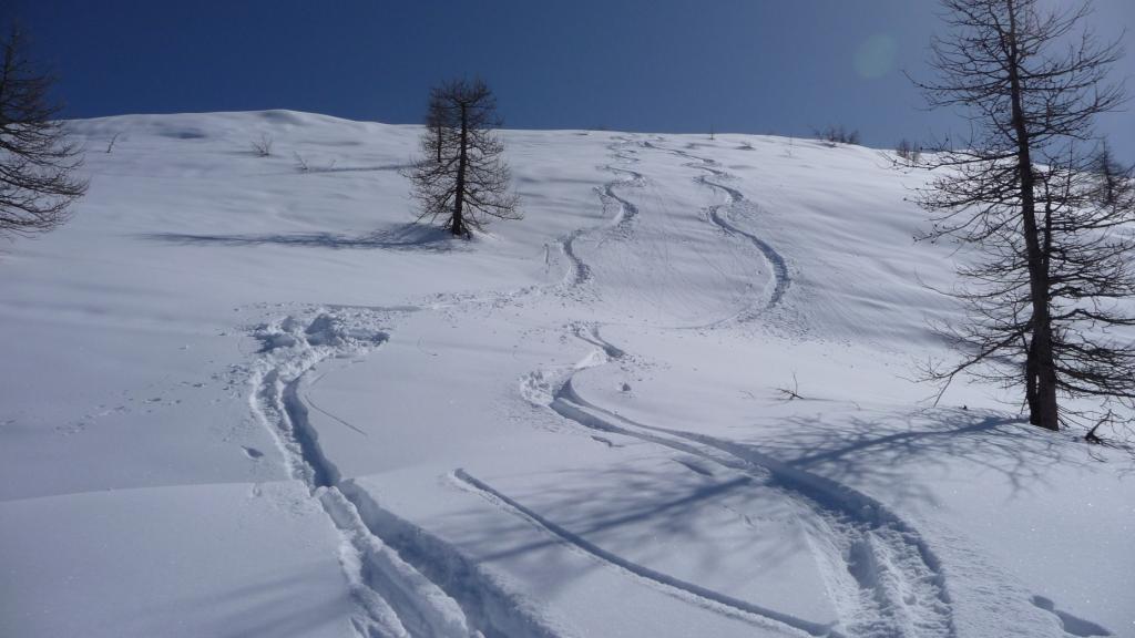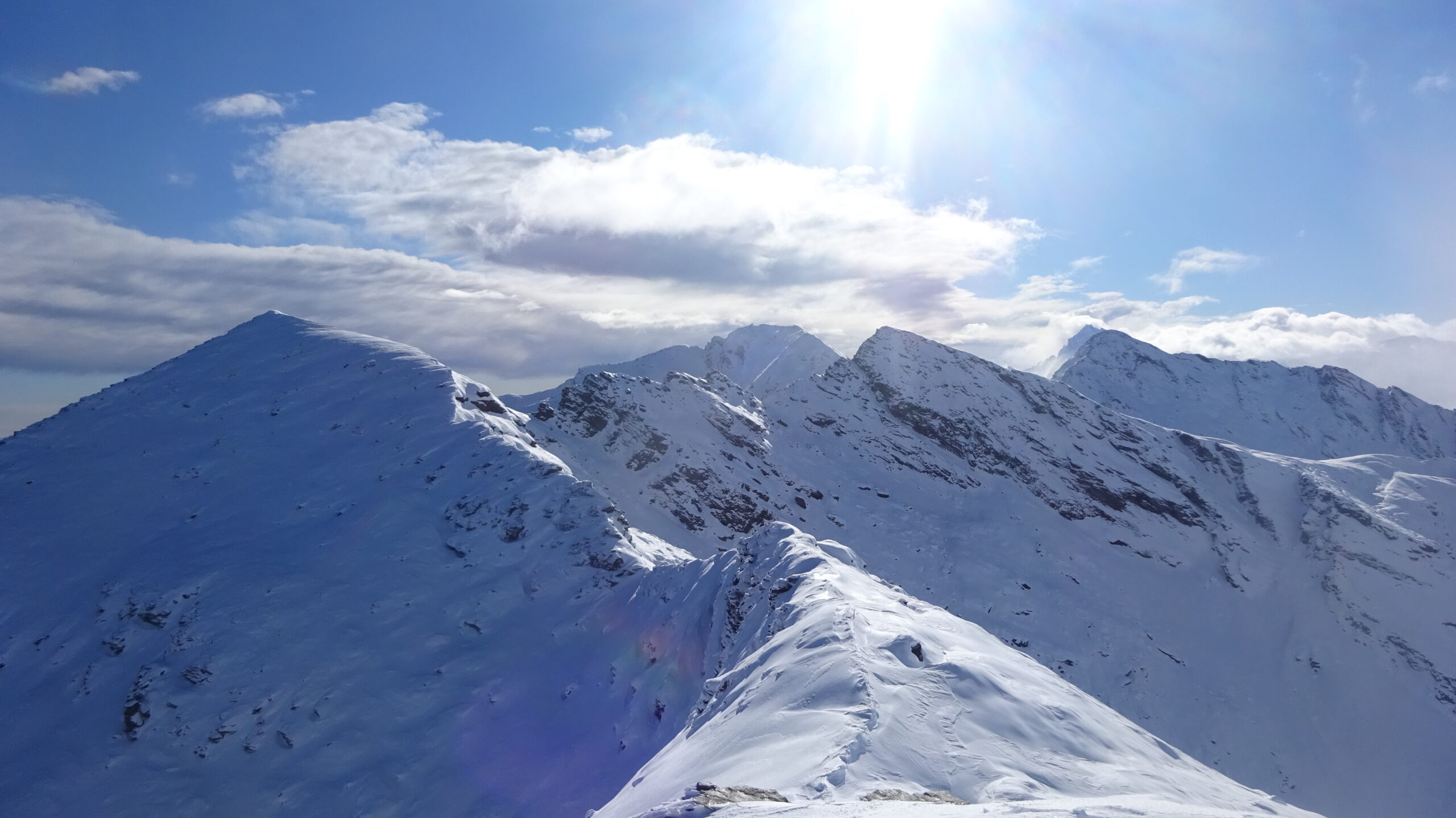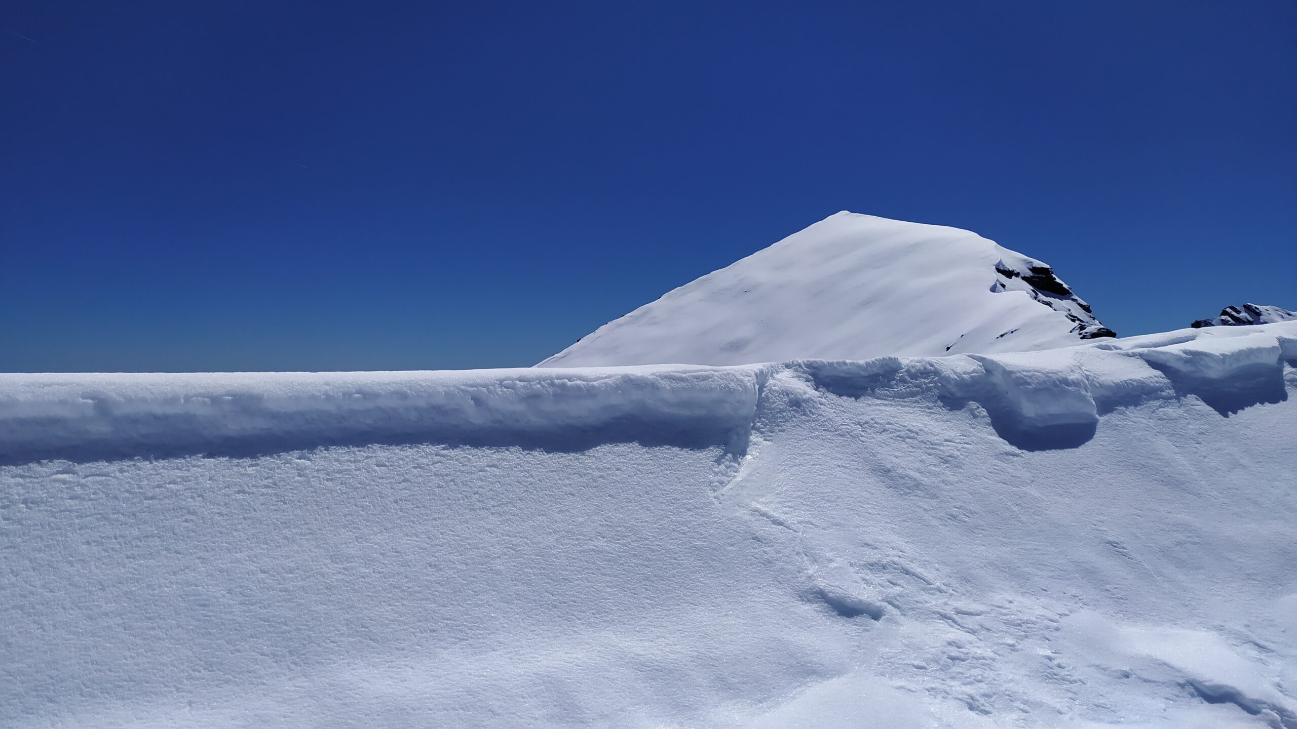 Qui svoltare a dx e continuare a salire per bei terreni verso SE, fino sotto la verticale della vetta. Per più ripidi pendii e qualche roccetta in breve alla sommità.