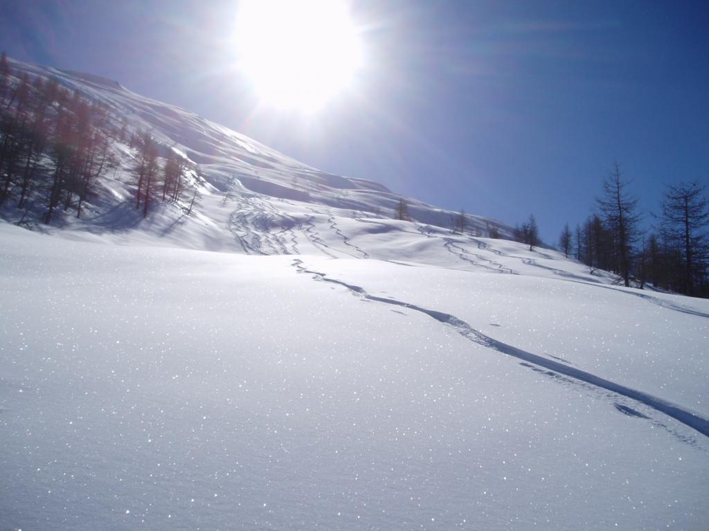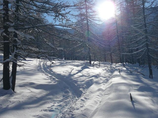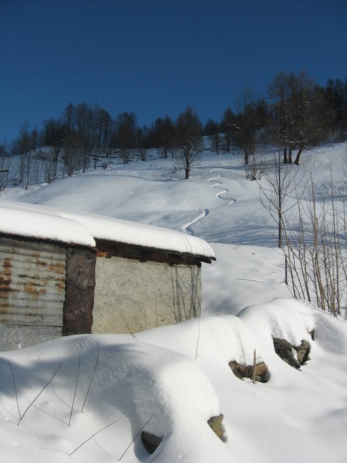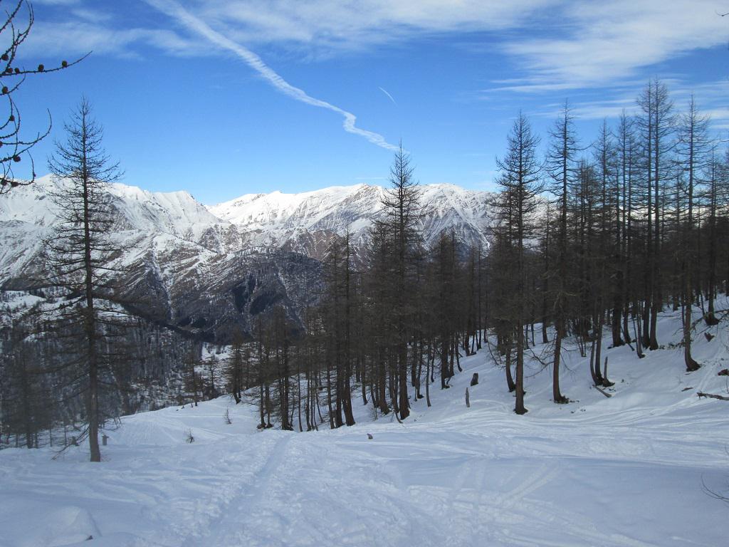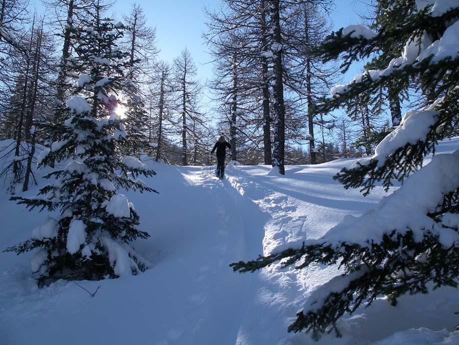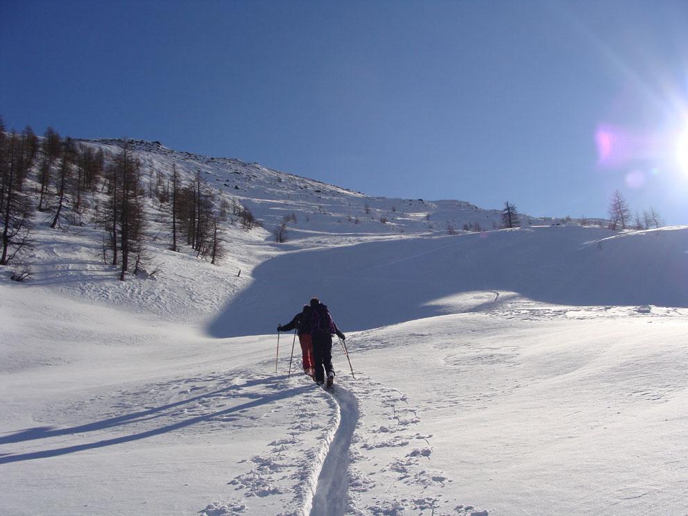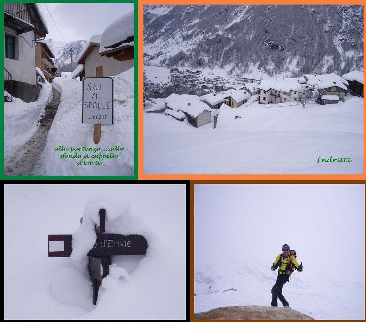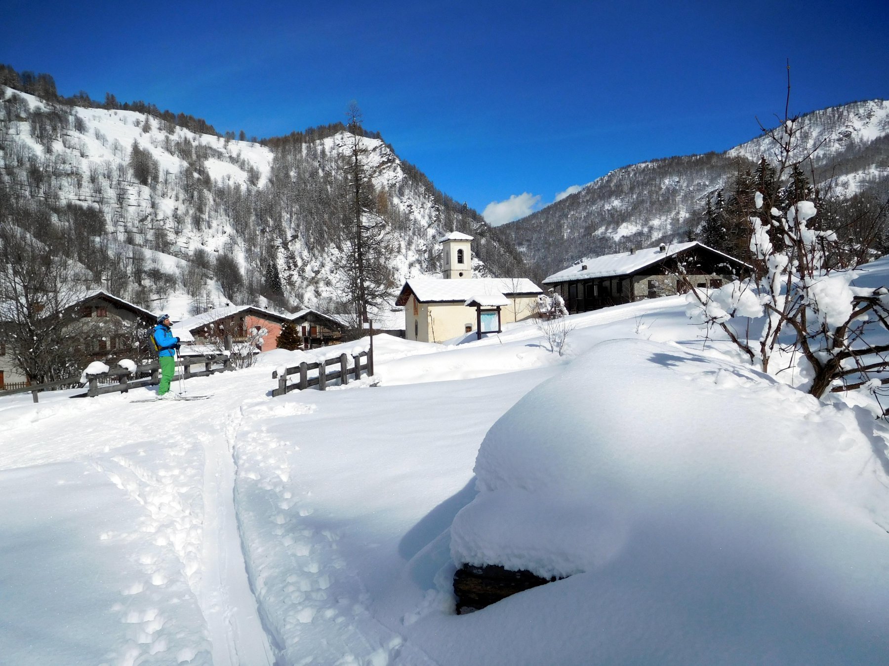 con buon innevamento è possibile partire da Ghigo, poco dopo l'ultimo ponte partire nel prato e salire verso sx dove si arriva sotto la frazione Indritti.