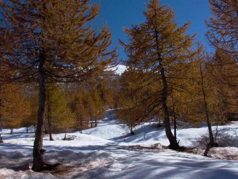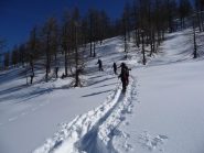 Da Indiritti, per radi boschi verso E portarsi al piccolo pianoro 1806 m.
