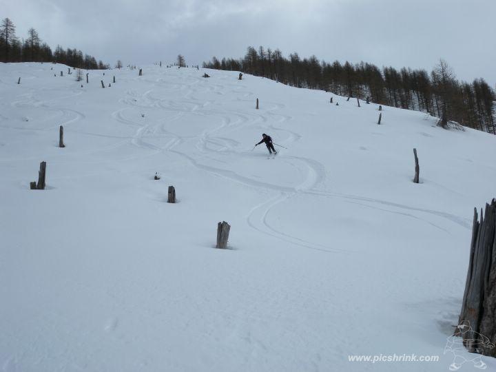 A quota 2400 mark si è ricordato del Gps lasciato sul cofano dell’auto…no comment..Bufera in alto ma ottima visibilità, neve bella poi crosta e dura da Indiritti al centro paese