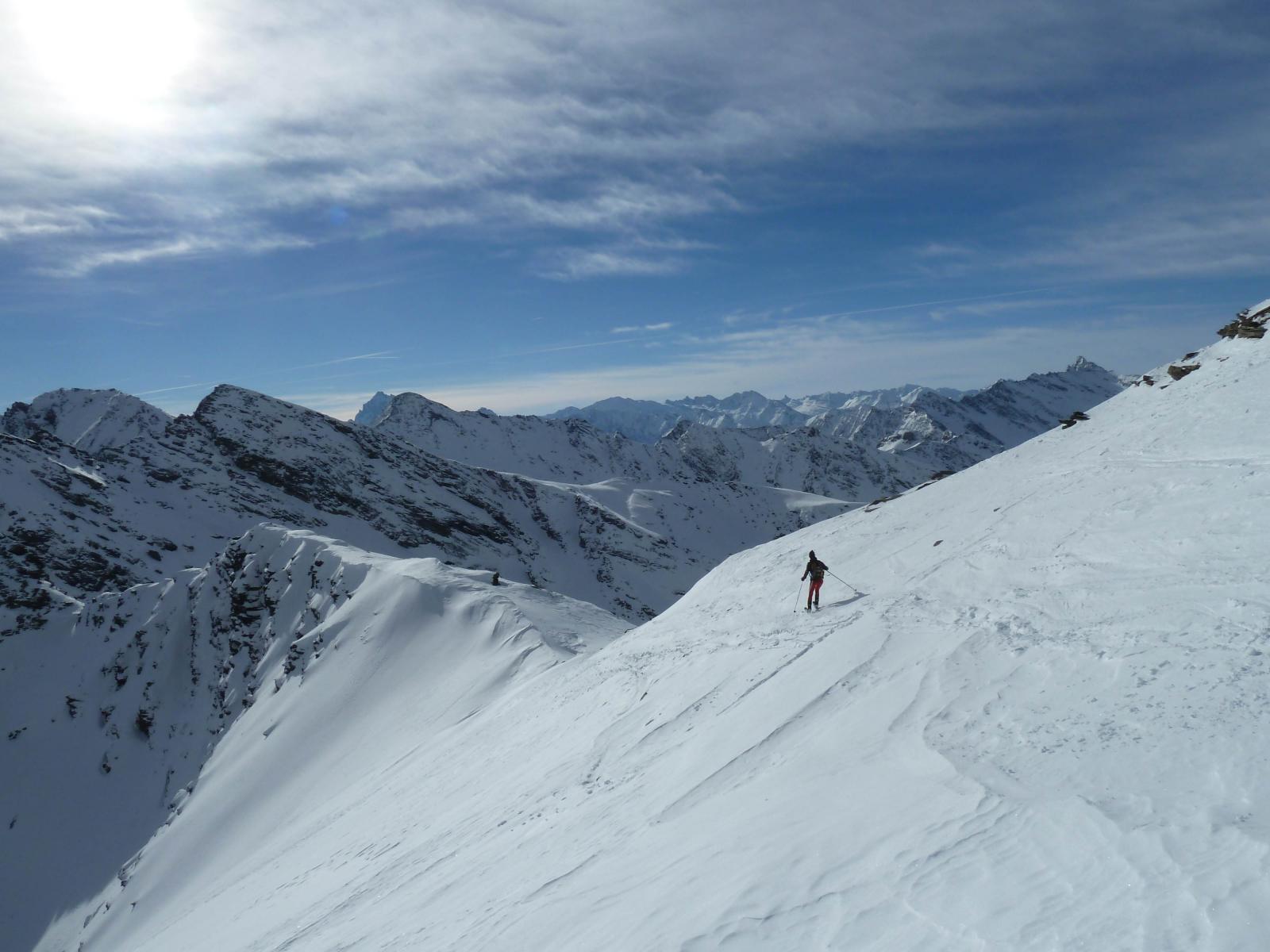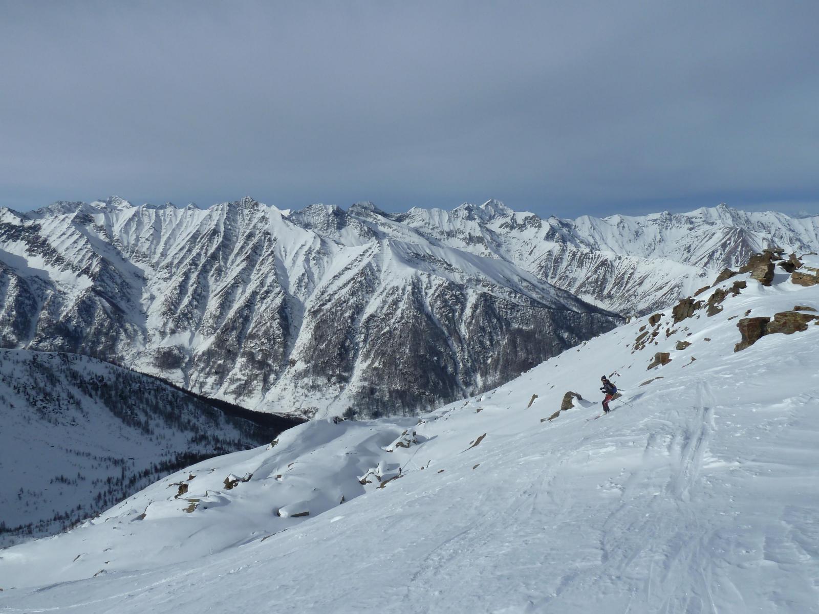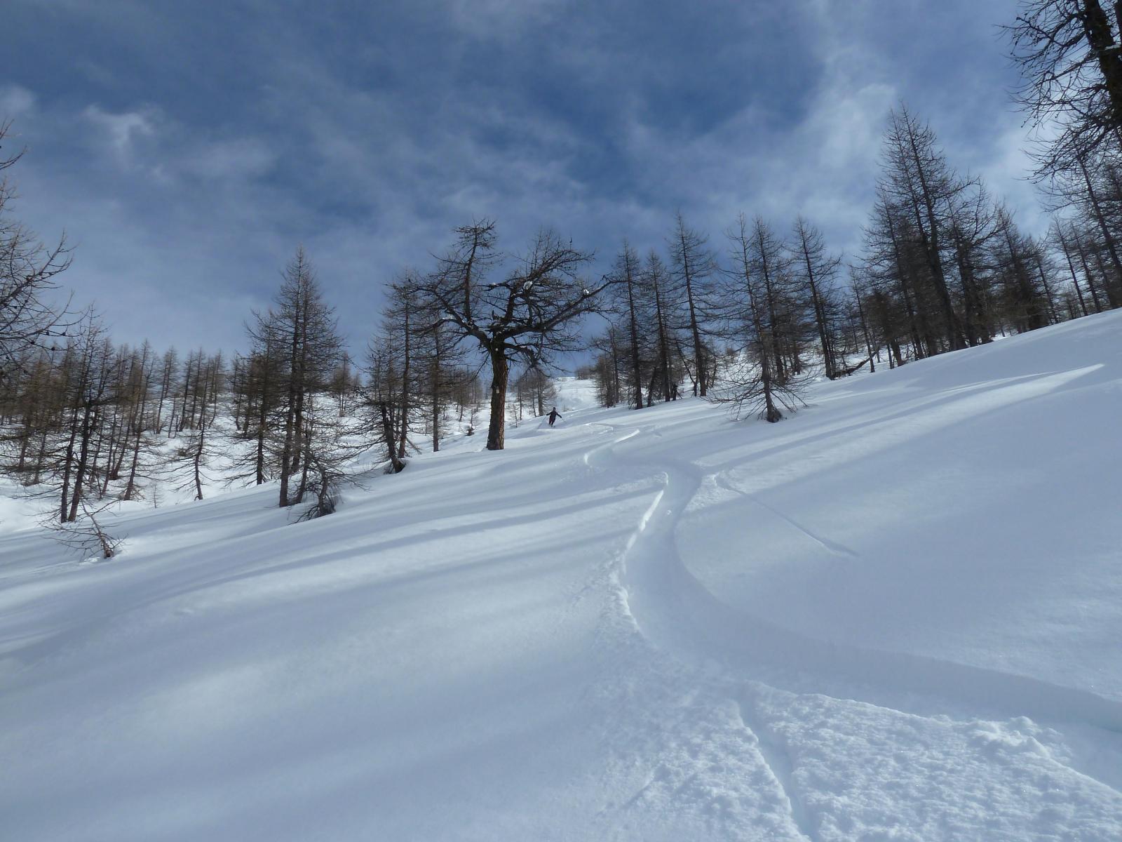 Partiti da Prali Villa (m.1390) seguendo un bel traccione fino in cima. In discesa sui pendii sommitali neve ventata morbida alternati a corridoi di farinella poi da quota 2300m. in giù super polvere fino all’auto. Noi per non farci mancare nulla abbiamo risalito la parte intermedia per una 2° discesa su questa neve da favola.