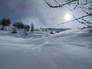 La stella è solo per i 200 mt tra i 2300 ed i 2100. Sopra i 2300 crosta da vento e sastrugi. Sotto crosta bagnata tendente a colla