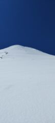 Pala a ovest bella inclinata, siamo stati fortunati che il giorno prima è nevicato e ha creato un manto di 5cm appiccicato al ghiaccio in modo definitivo, probabilmente la vicinanza del mare e dei laghi crea questa neve che si assesta immediatamente, una figata.